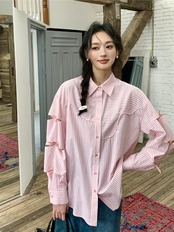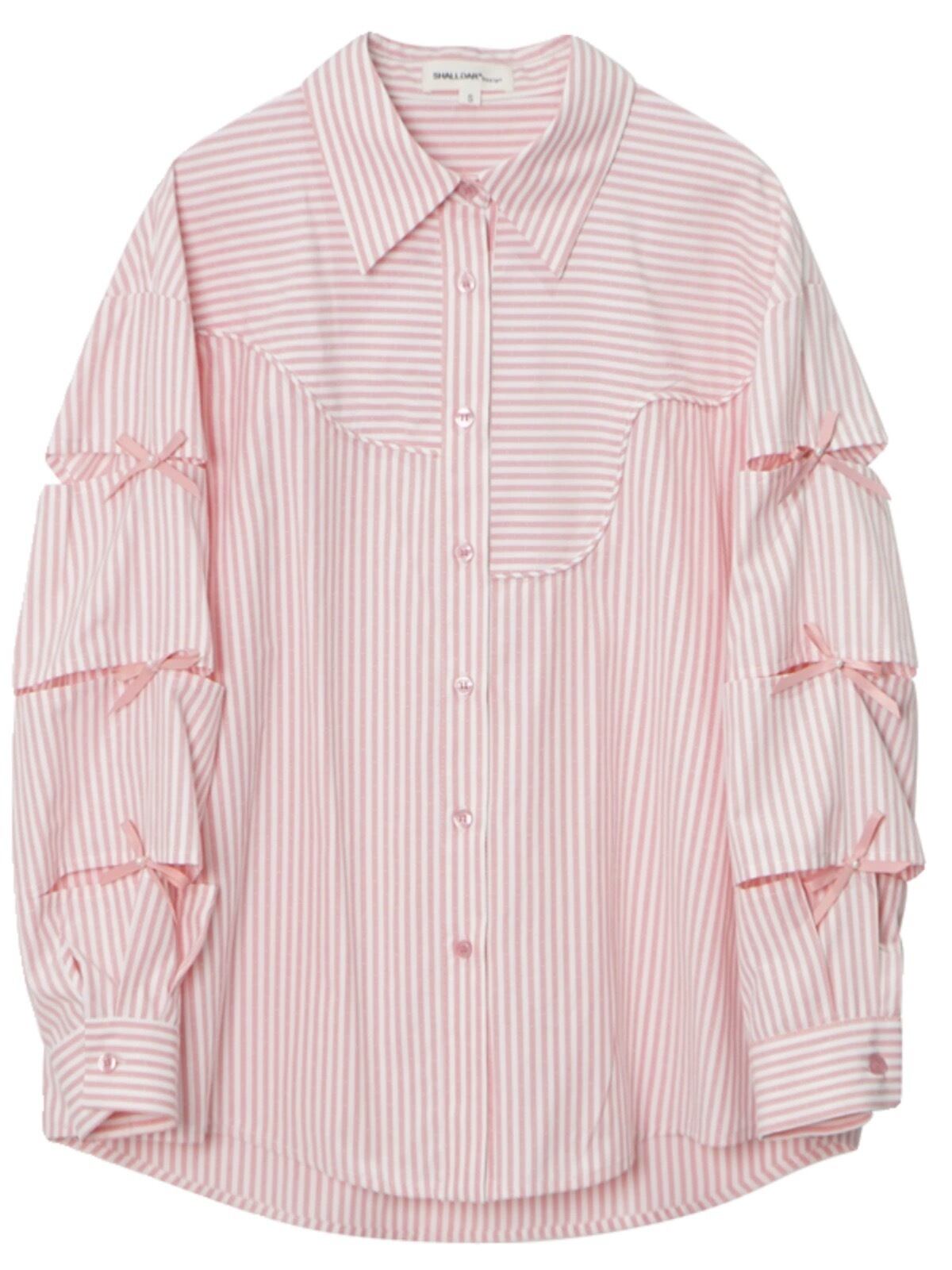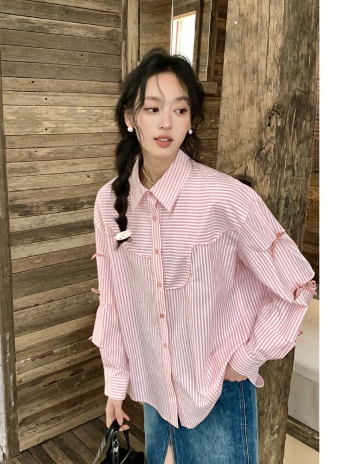 ブラウス リボン チェック ボーダー ストライプ 可愛い シンプル カジュアル