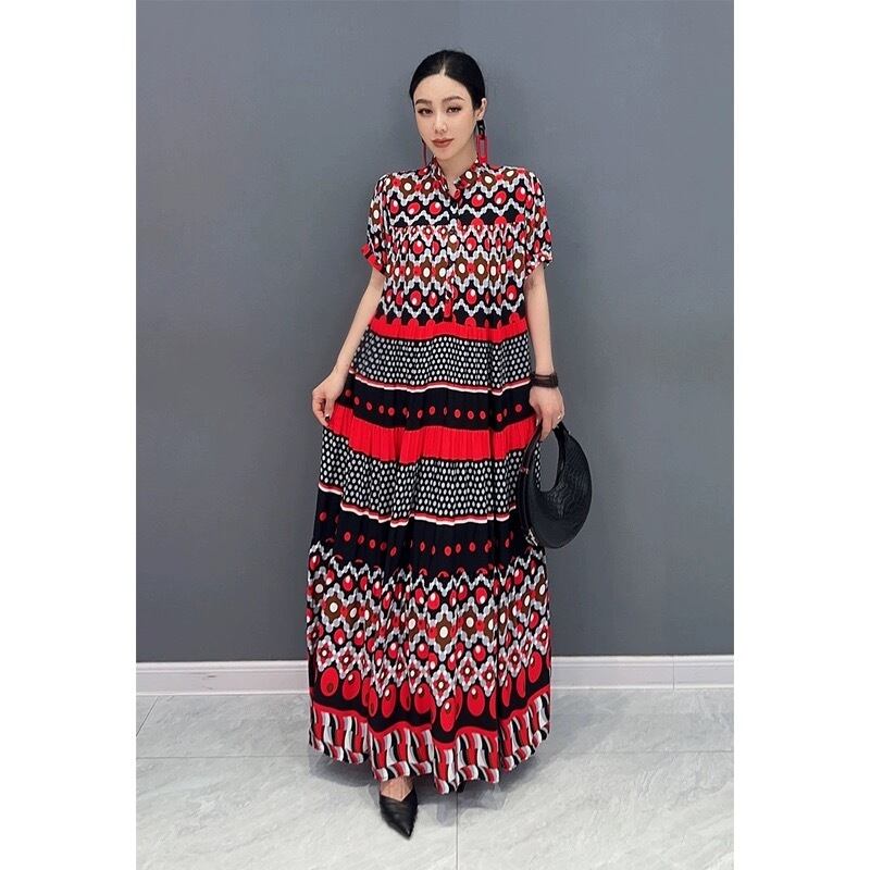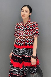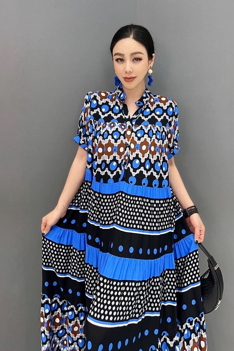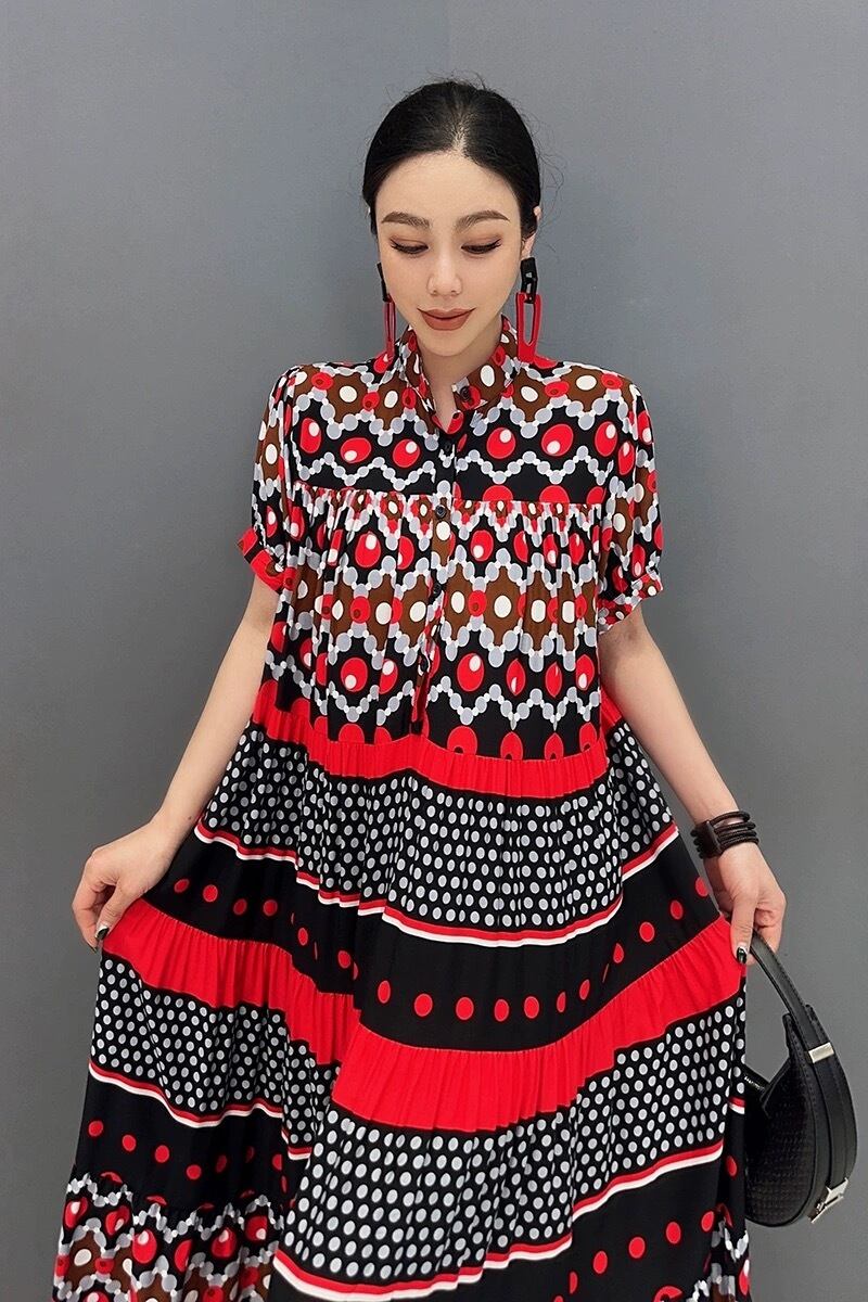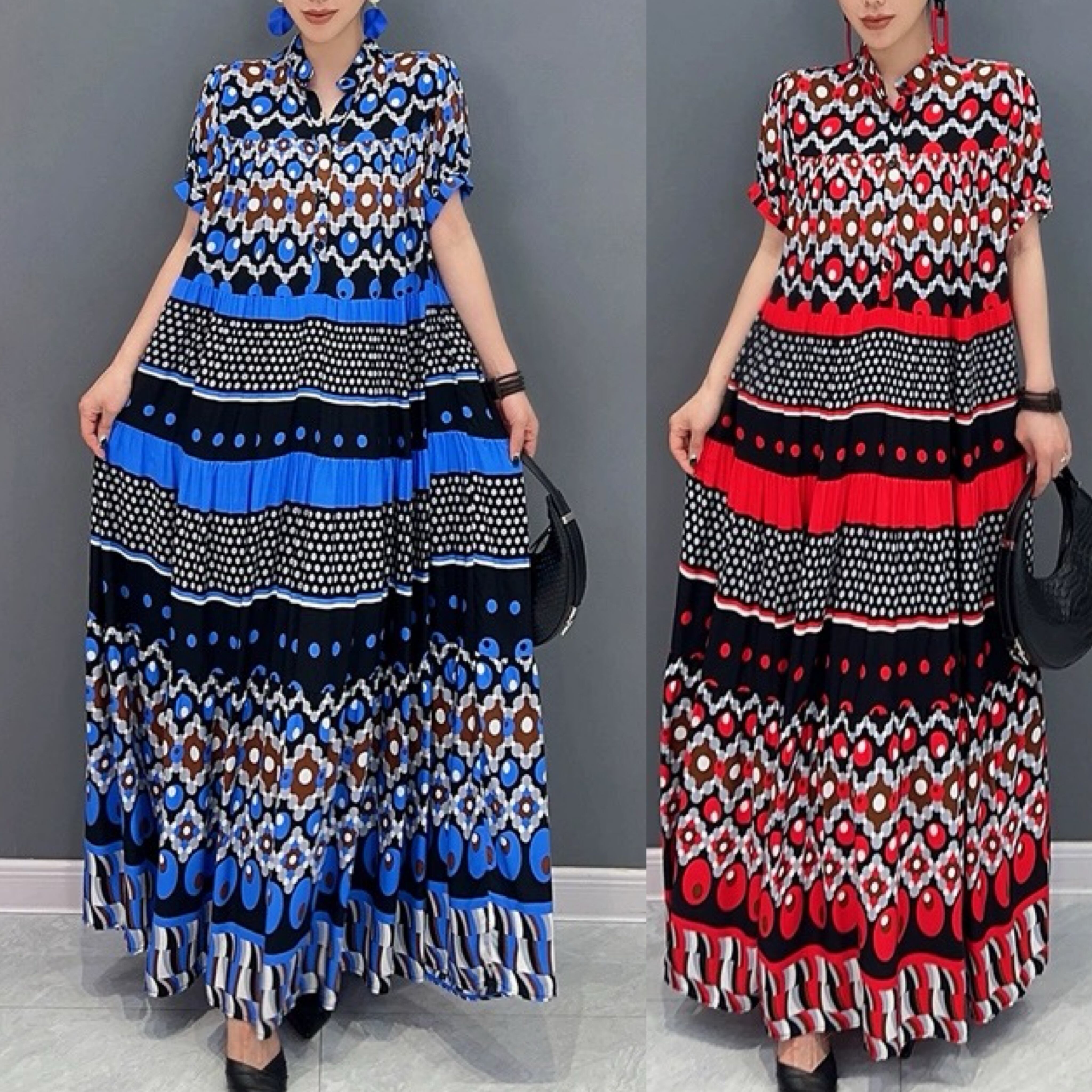 ブルー 赤 青 ボーダー エスニック XL チェック ゆったり ワンピース ブラウス