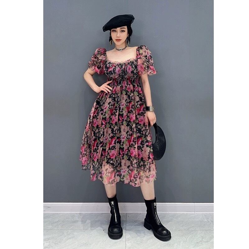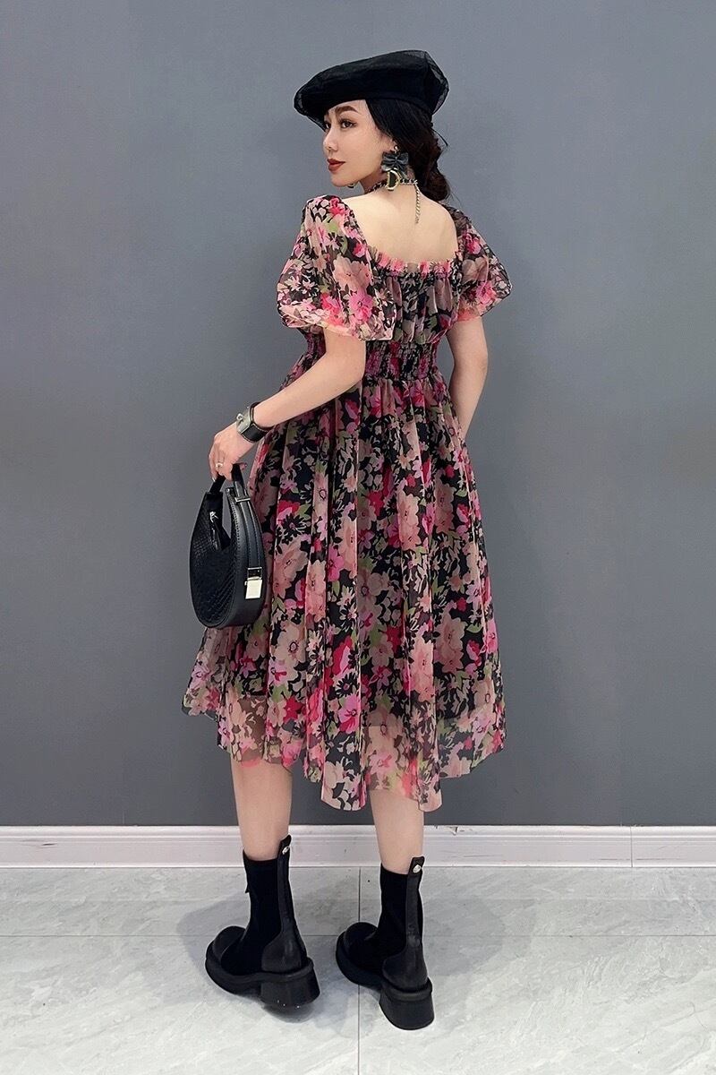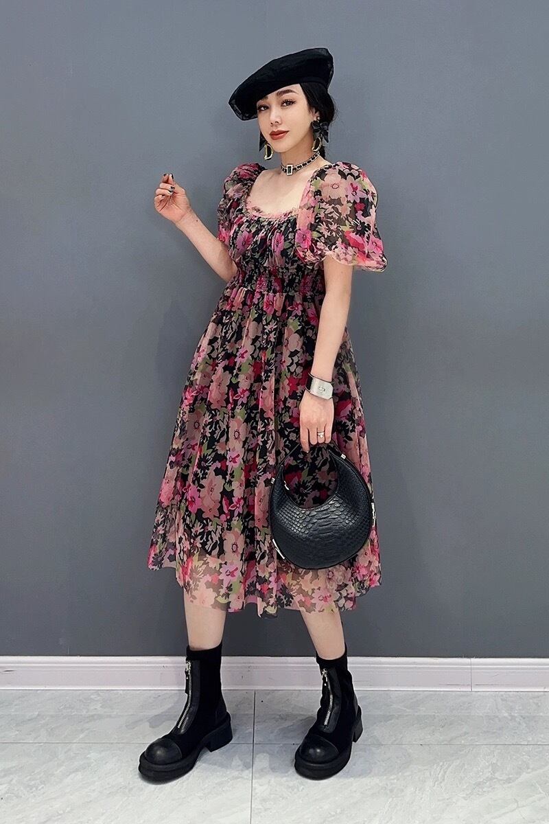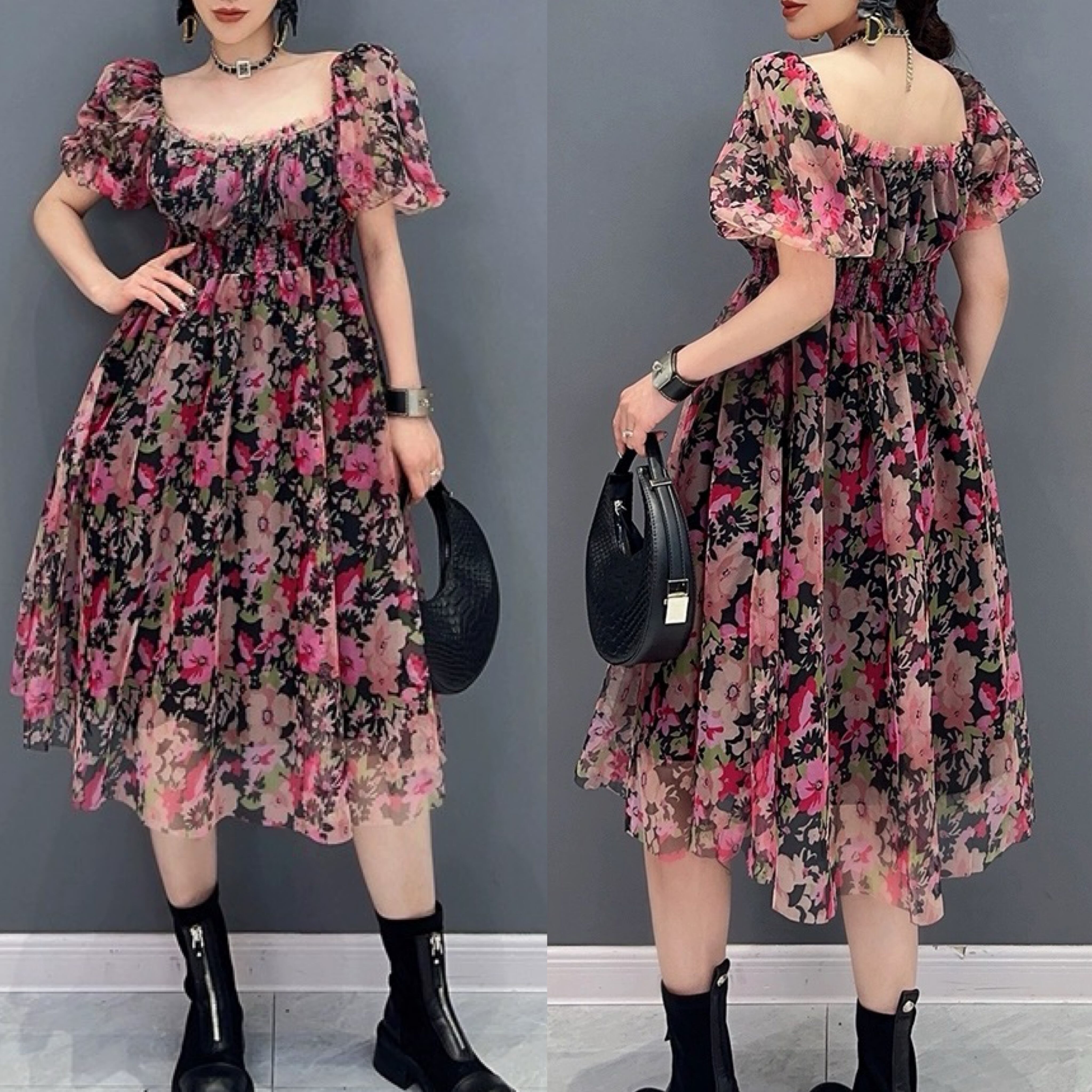 フラワー 花柄 エレガント 黒 ピンク ボーダー エスニック XL チェック ゆったり ワンピース ブラウス