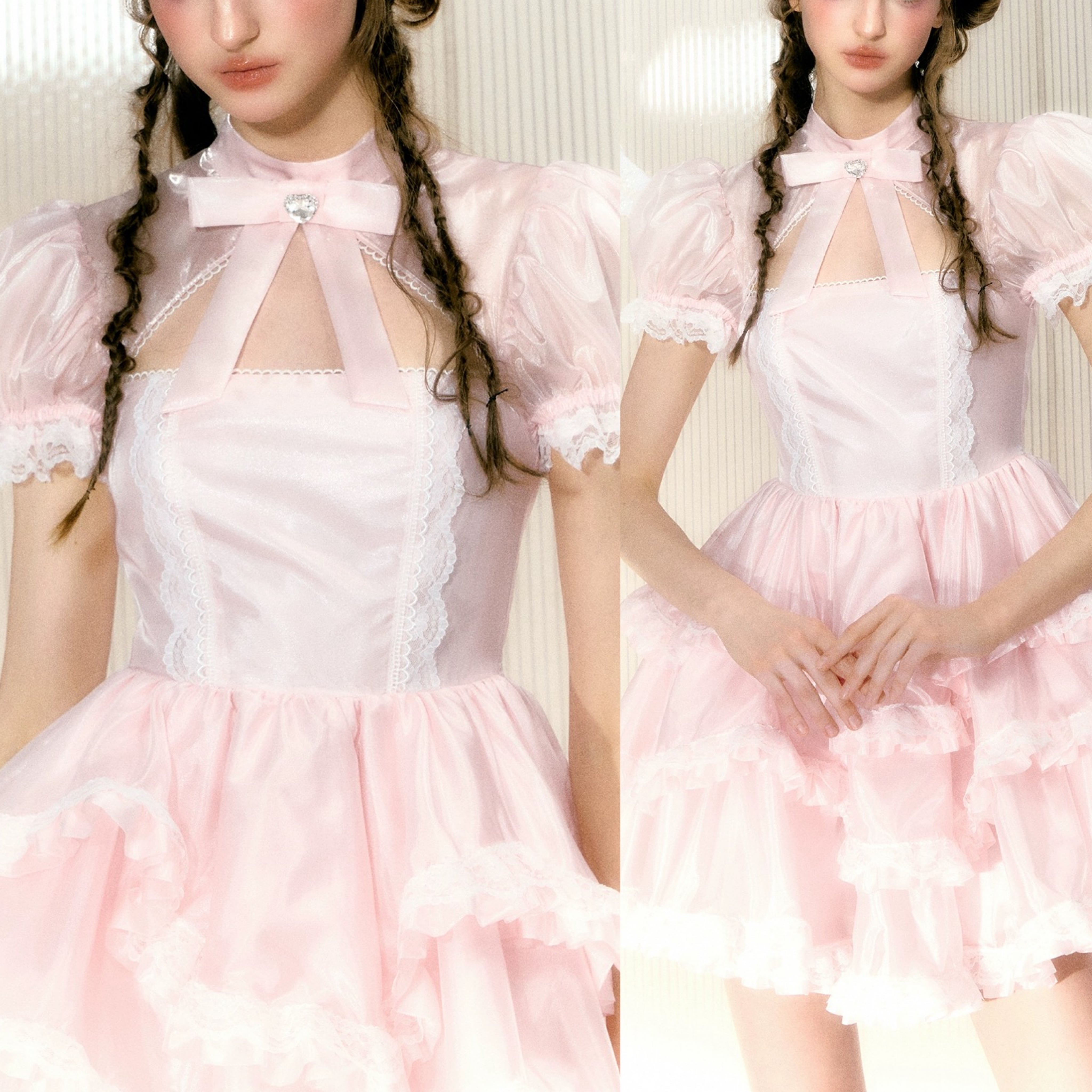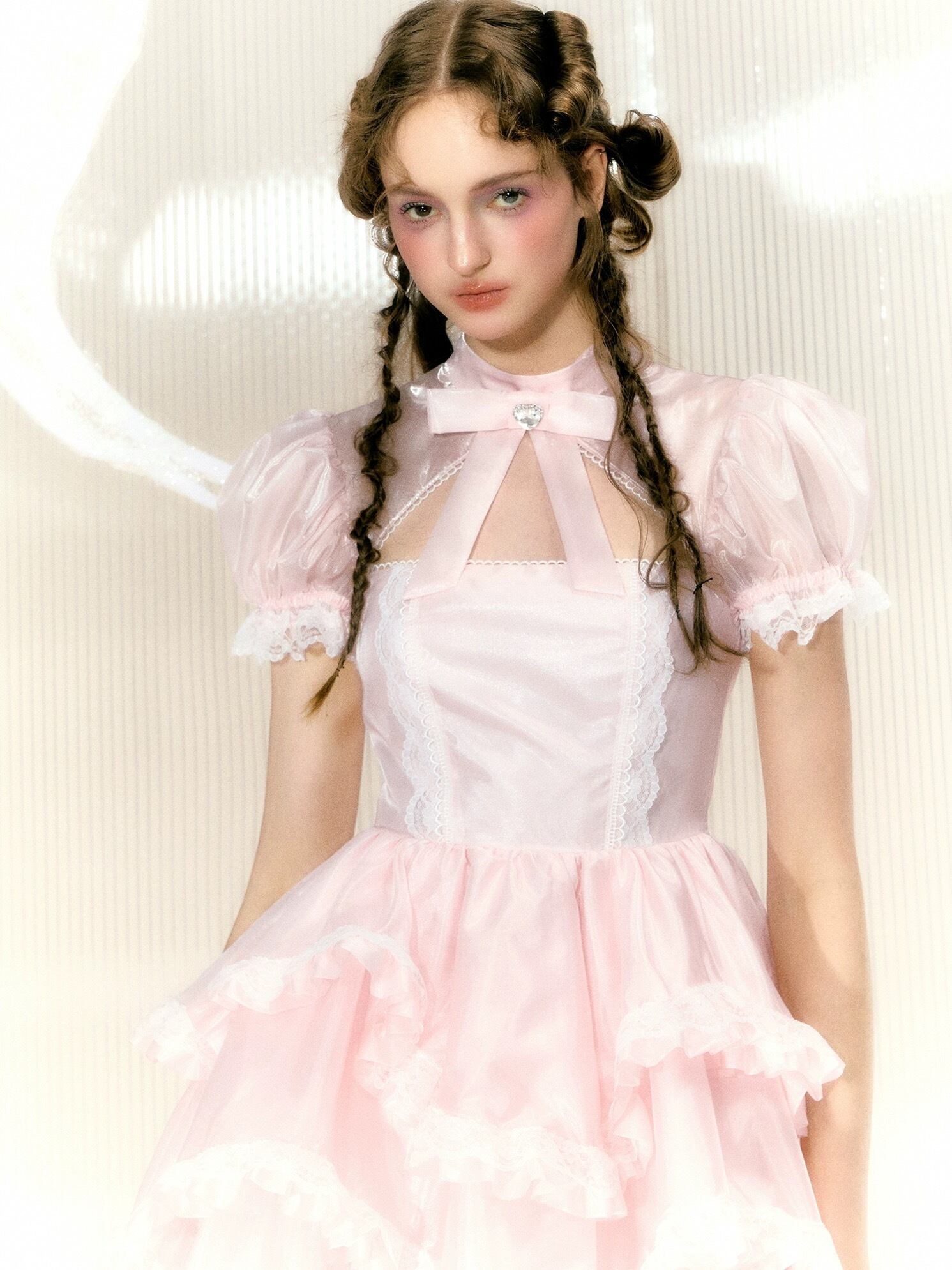 ピンク ガーリー リボン 可愛い パーティー ドレス ブラウス 発表会 衣装 バレリーナ コスプレ お嬢様 姫 プリンセス かわいい 原宿 パーティー ドレス ブラウス ミニスカート エレガント 衣装
