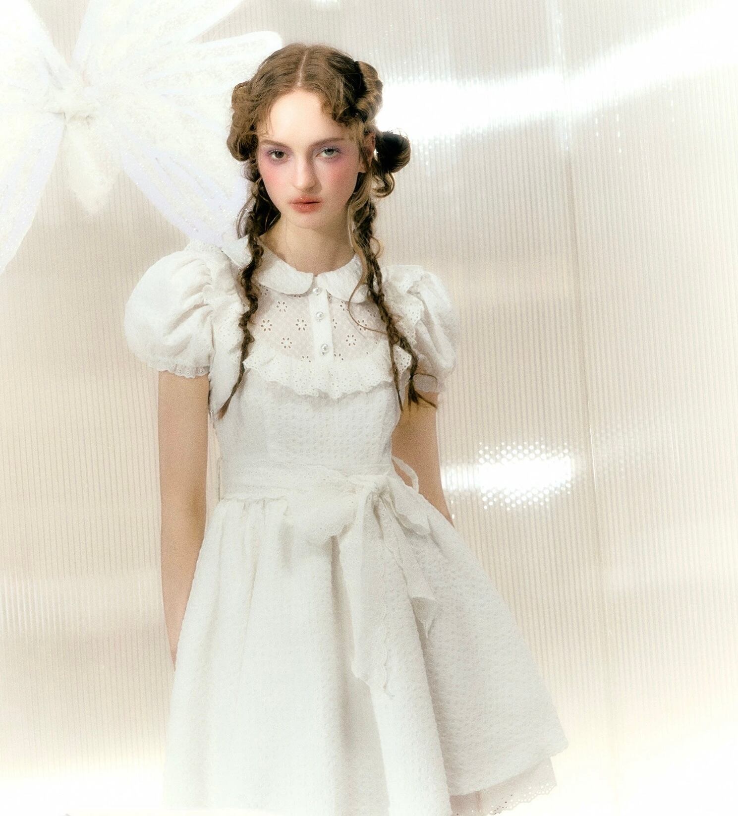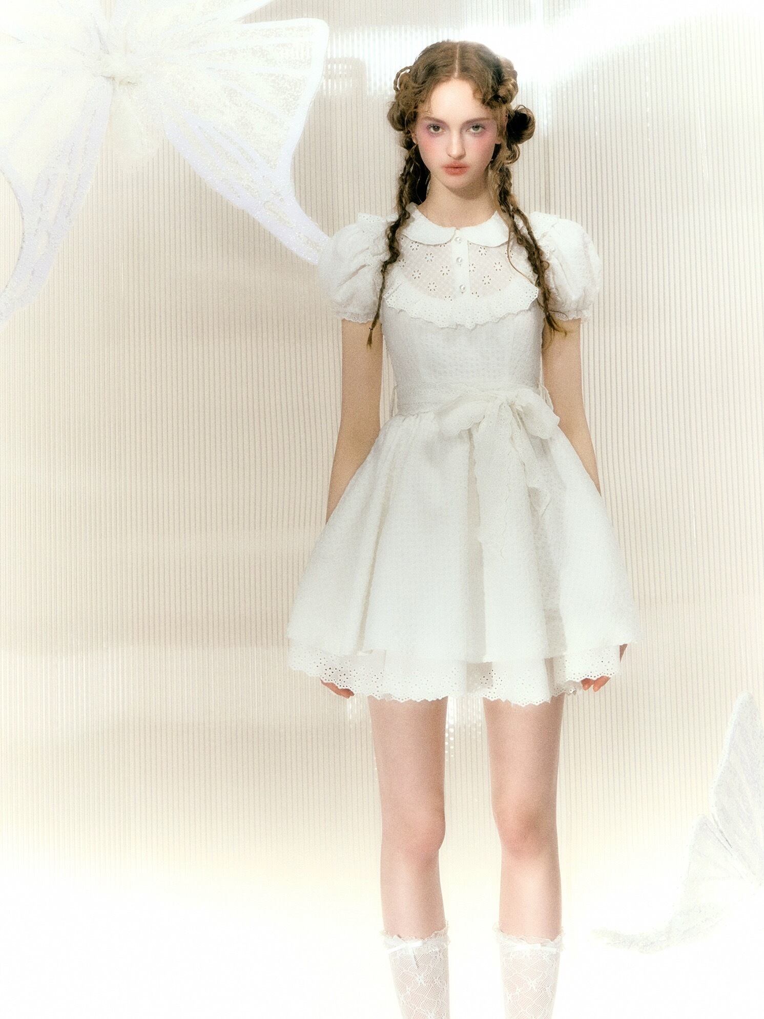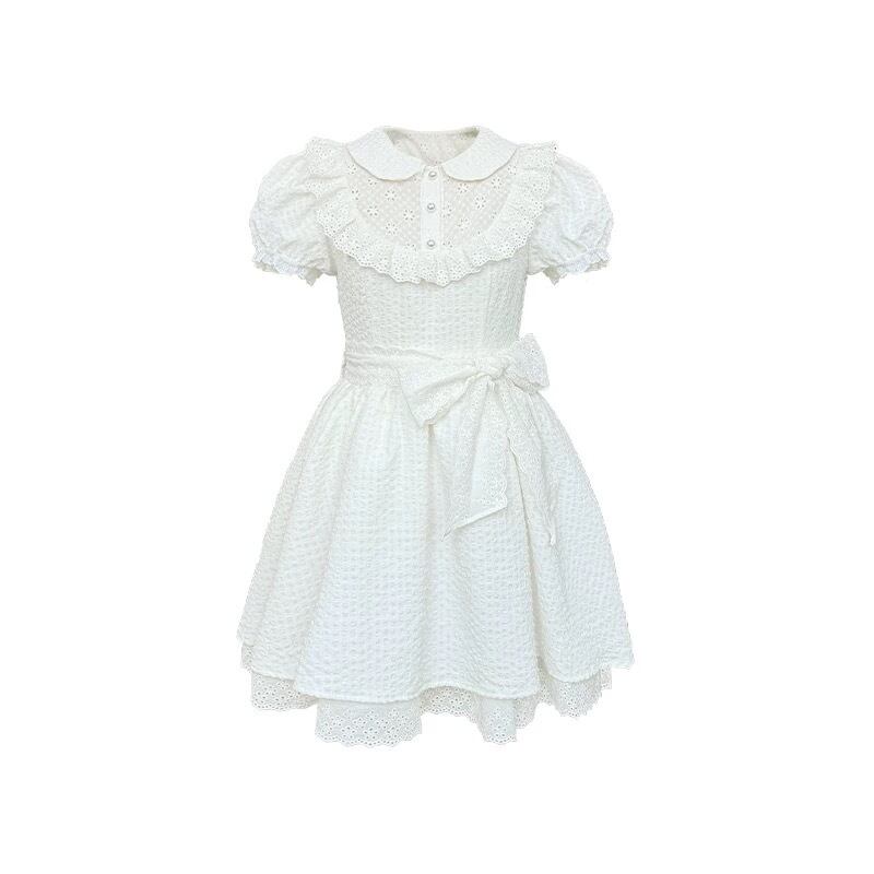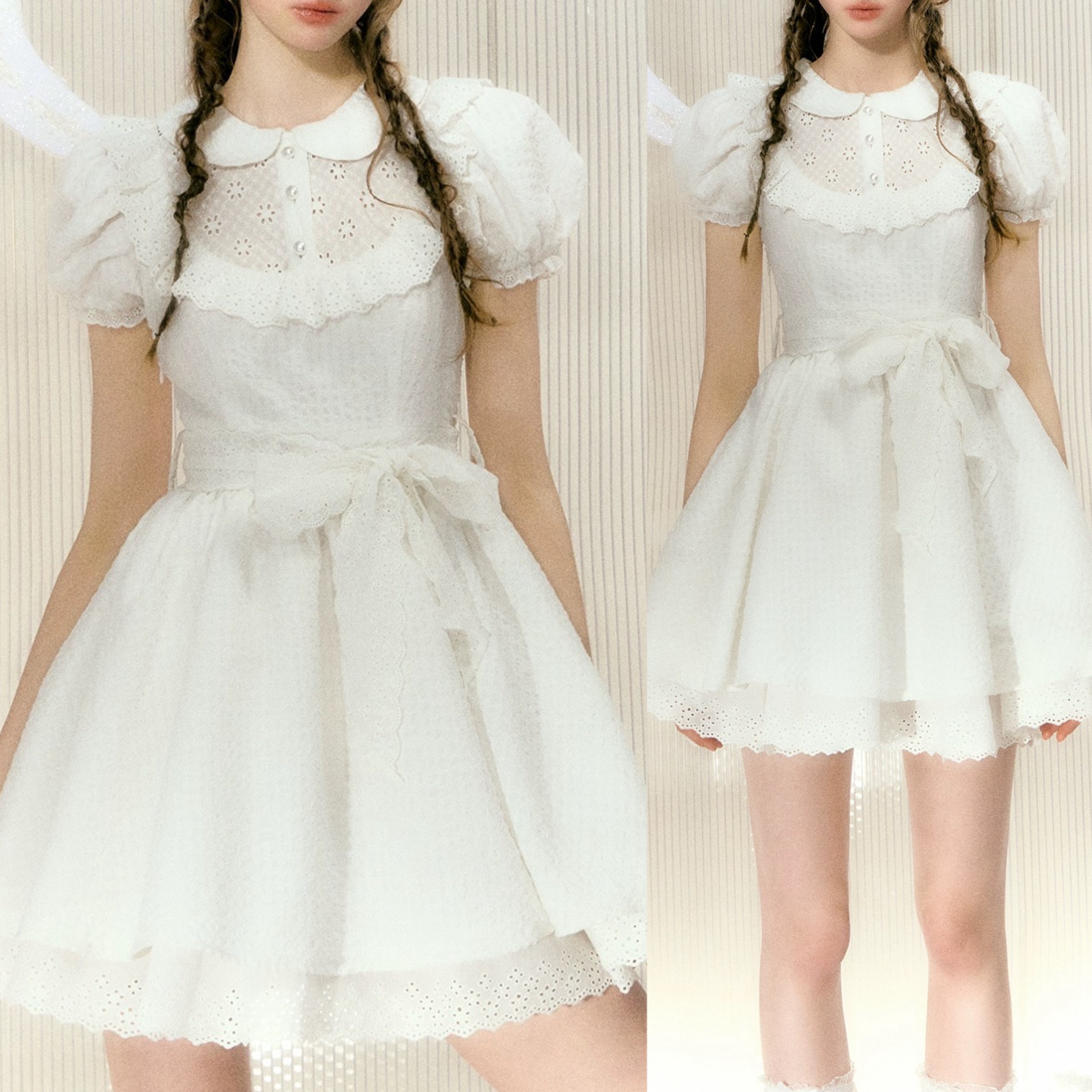 白 丸襟 爽やか ガーリー ブラウス ワンピース ピンク ガーリー リボン 可愛い パーティー ドレス ブラウス 発表会 衣装 バレリーナ コスプレ お嬢様 姫 プリンセス かわいい 原宿 パーティー ドレス ブラウス ミニスカート エレガント 衣装