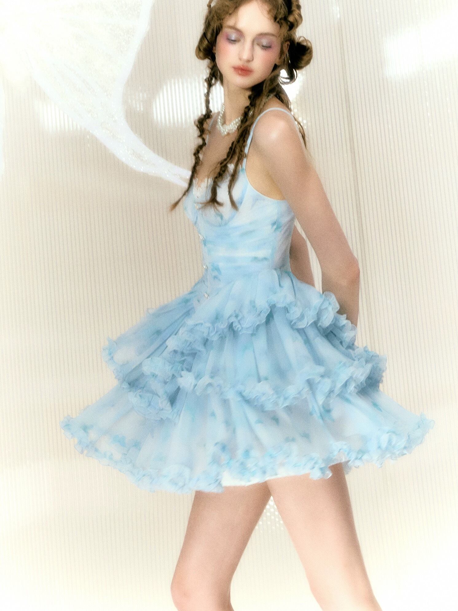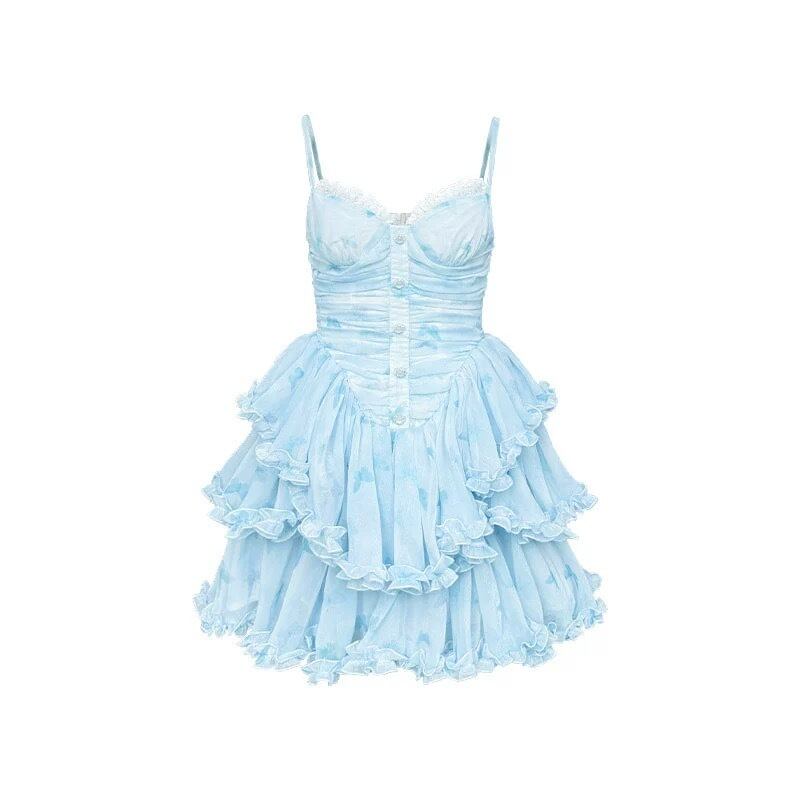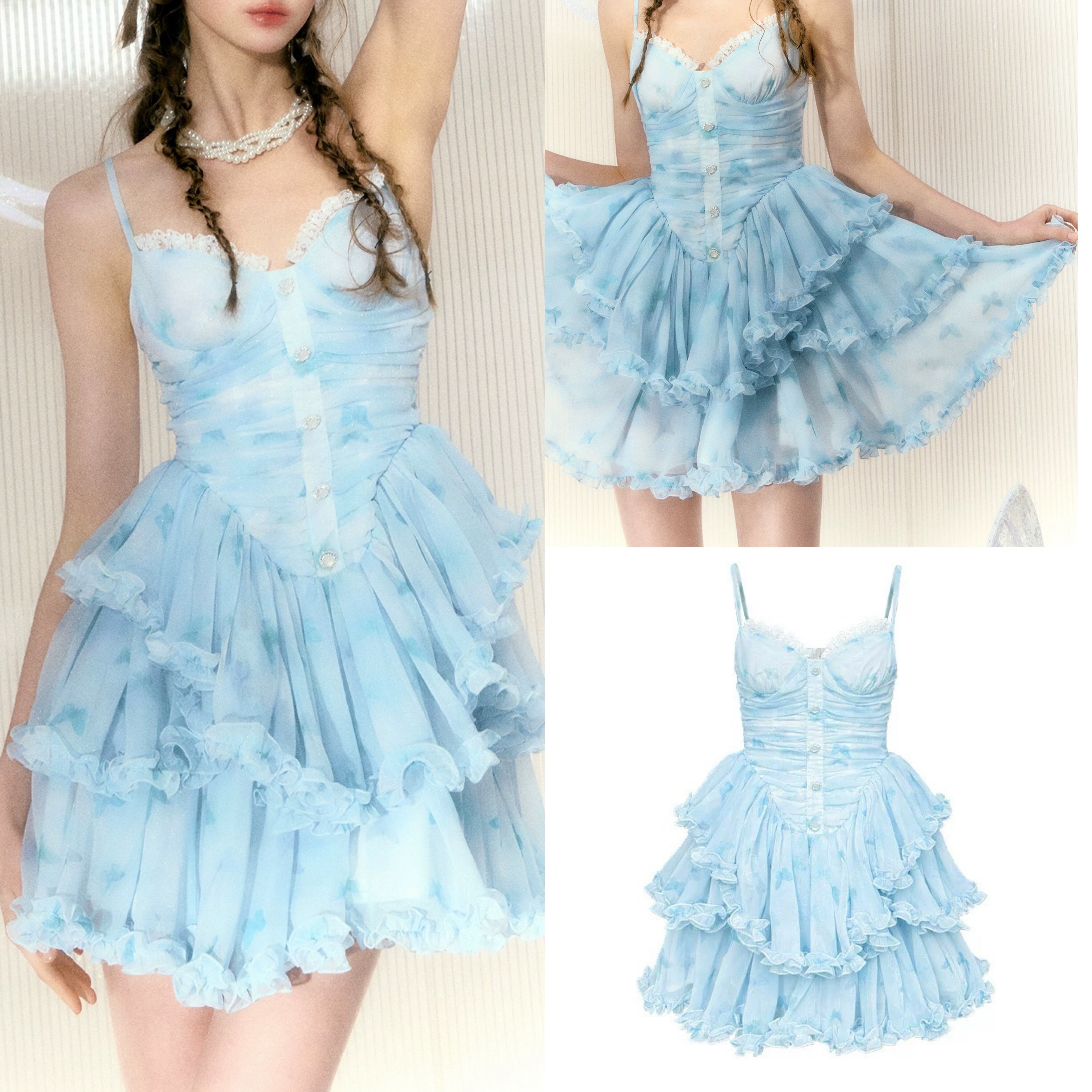 水色 ワンピース ドレス ガーリー ピンク ガーリー リボン 可愛い パーティー ドレス ブラウス 発表会 衣装 バレリーナ コスプレ お嬢様 姫 プリンセス かわいい 原宿 パーティー ドレス ブラウス ミニスカート エレガント 衣装 キャミソール