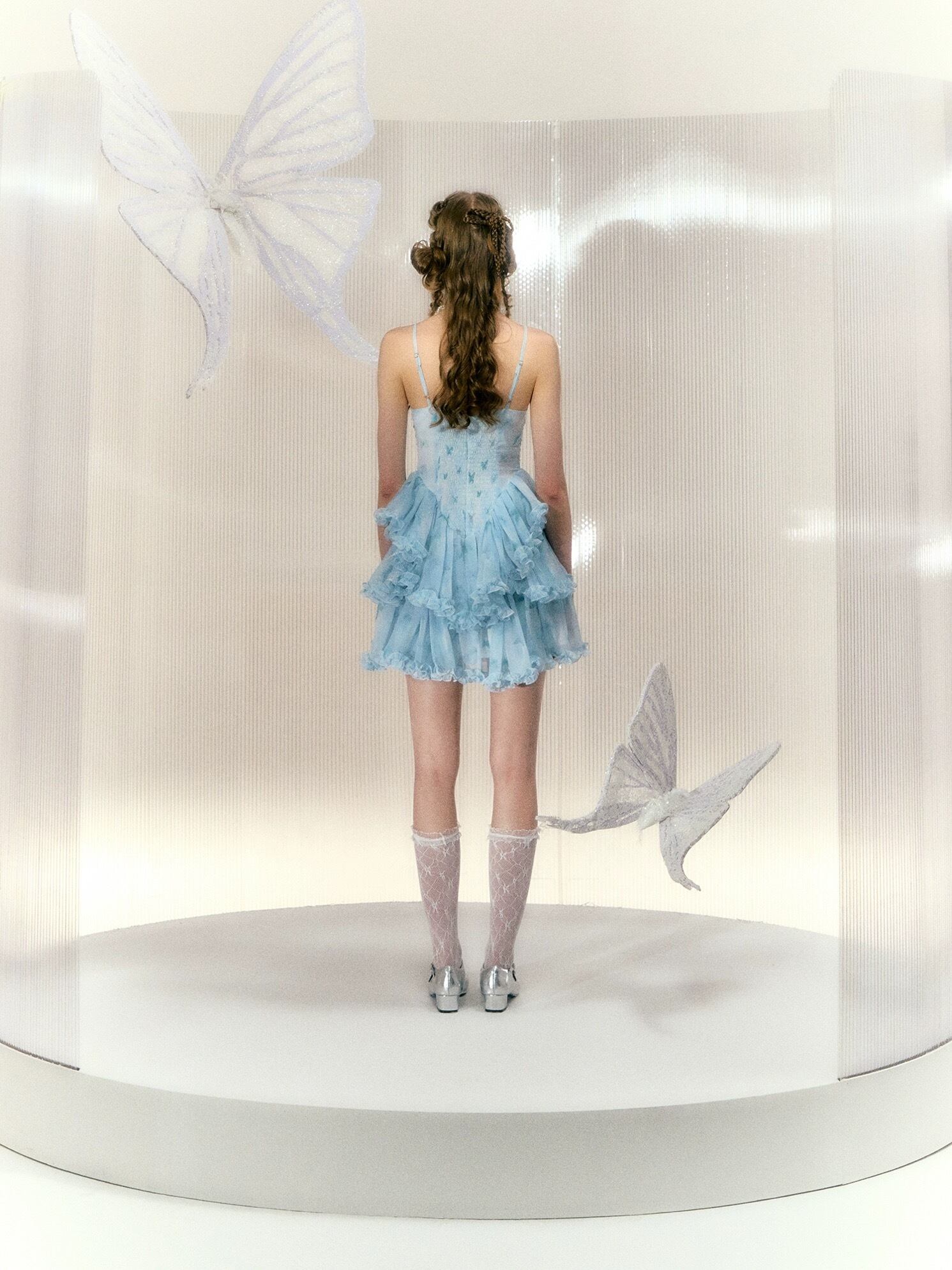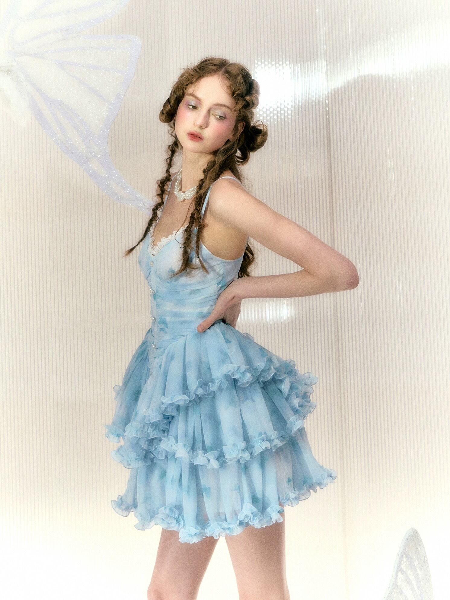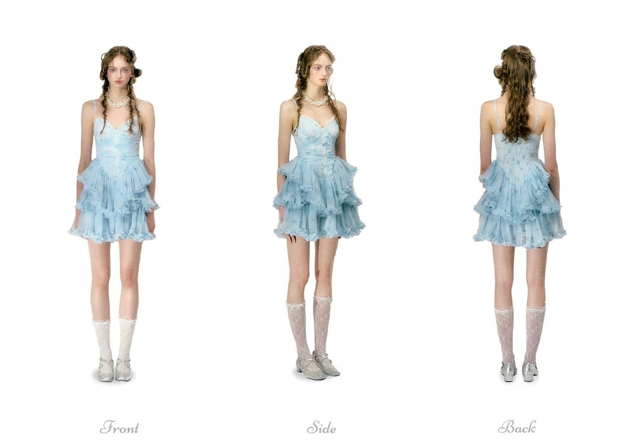 水色 ワンピース ドレス ガーリー ピンク ガーリー リボン 可愛い パーティー ドレス ブラウス 発表会 衣装 バレリーナ コスプレ お嬢様 姫 プリンセス かわいい 原宿 パーティー ドレス ブラウス ミニスカート エレガント 衣装 キャミソール