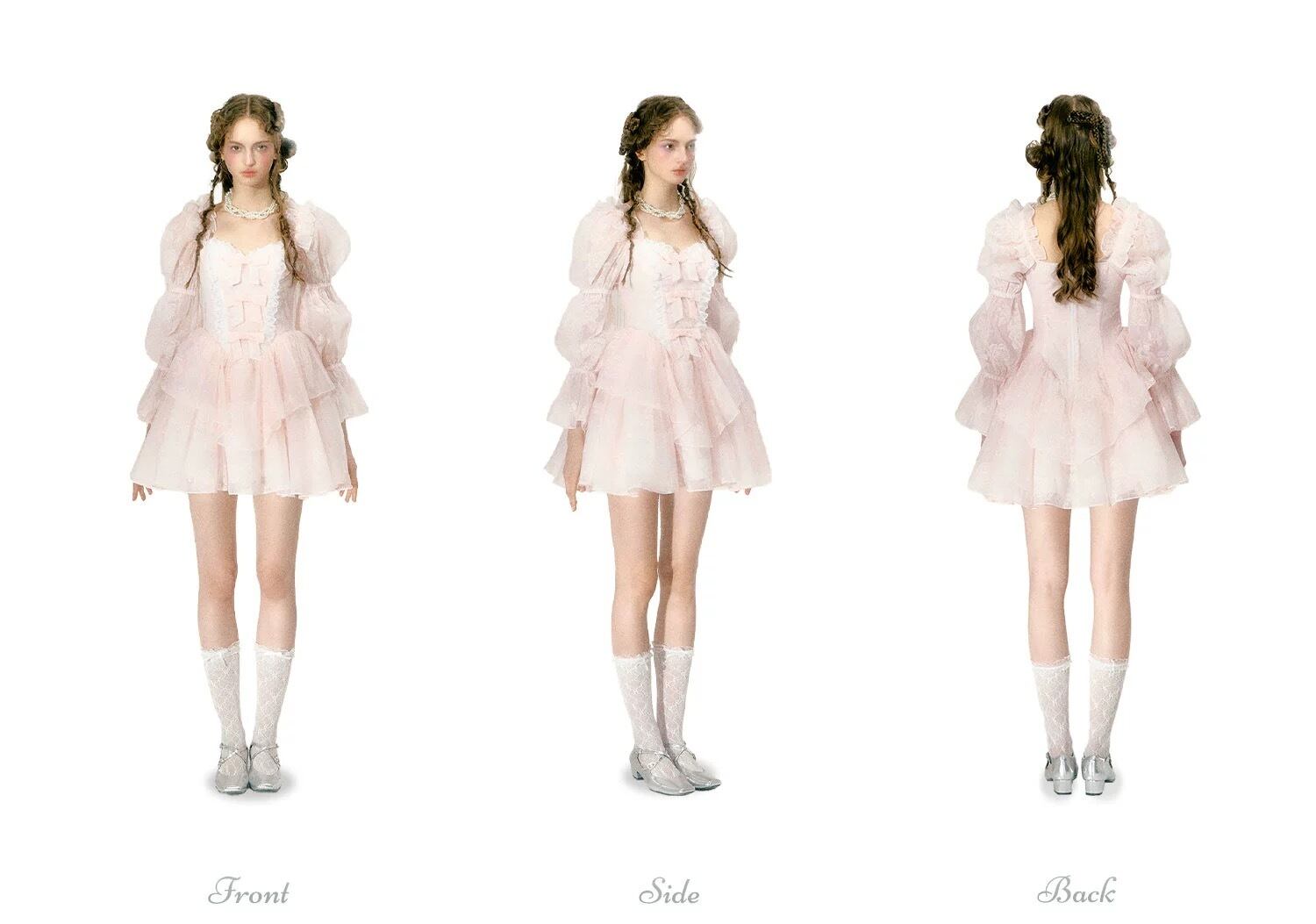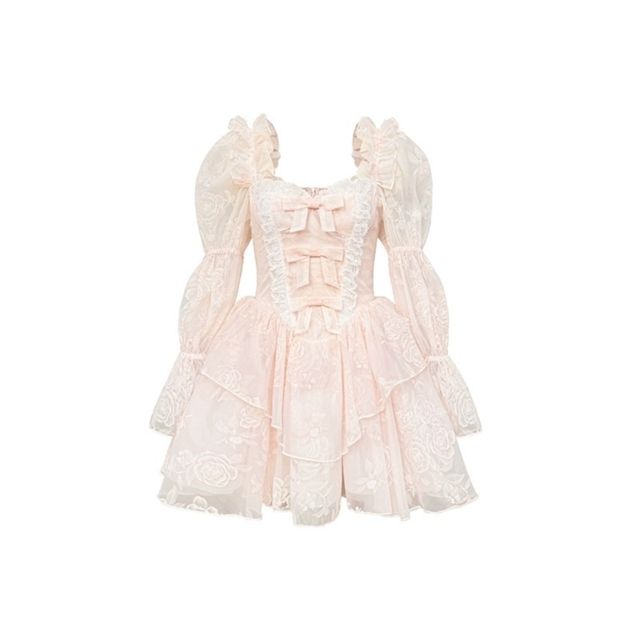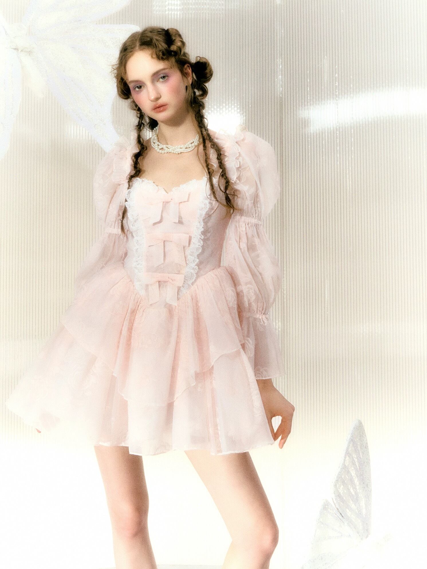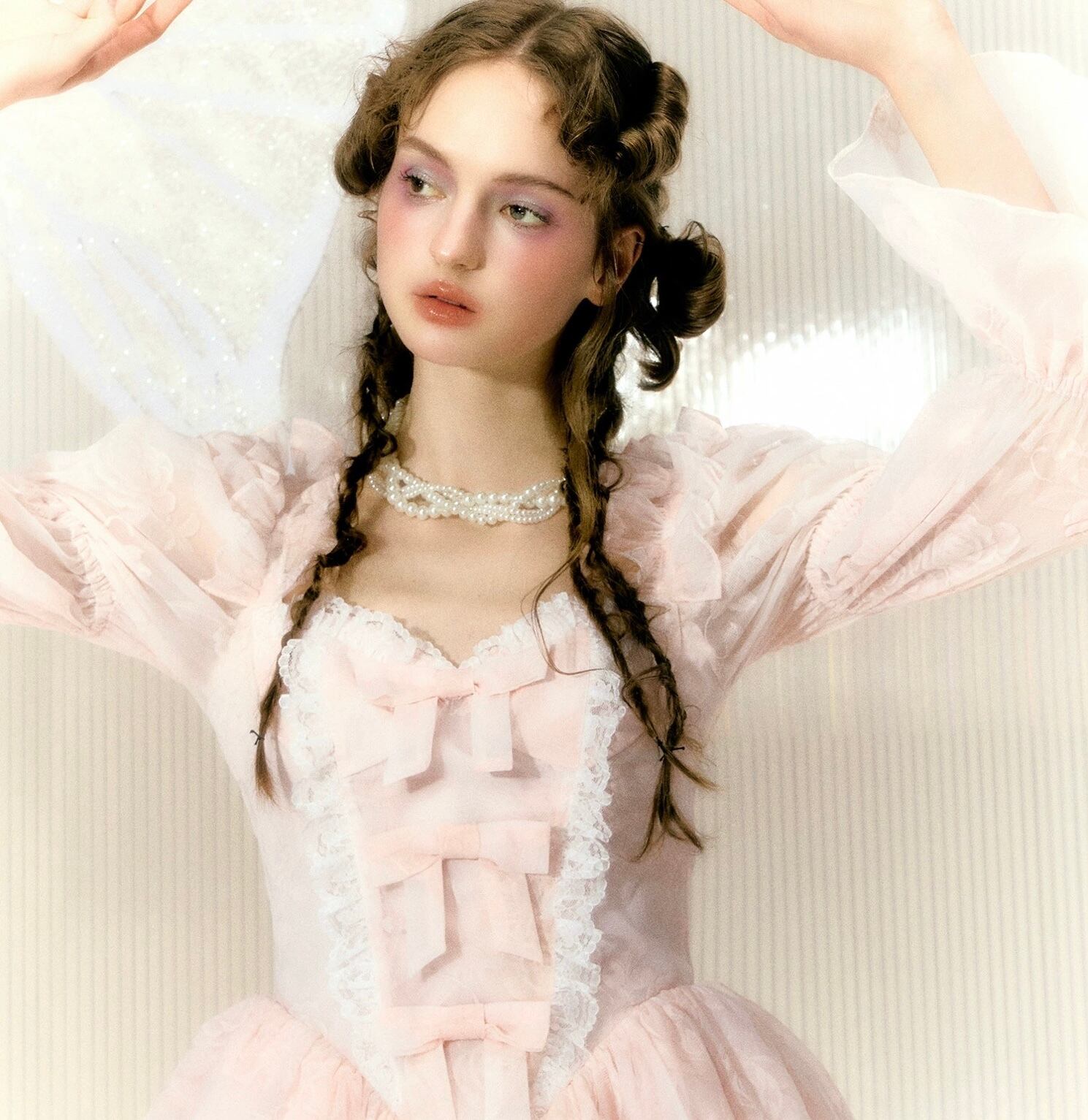 ピンク リボン ピンク ガーリー リボン 可愛い パーティー ドレス ブラウス 発表会 衣装 バレリーナ コスプレ お嬢様 姫 プリンセス かわいい 原宿 パーティー ドレス ブラウス ミニスカート エレガント 衣装 ベージュピンク