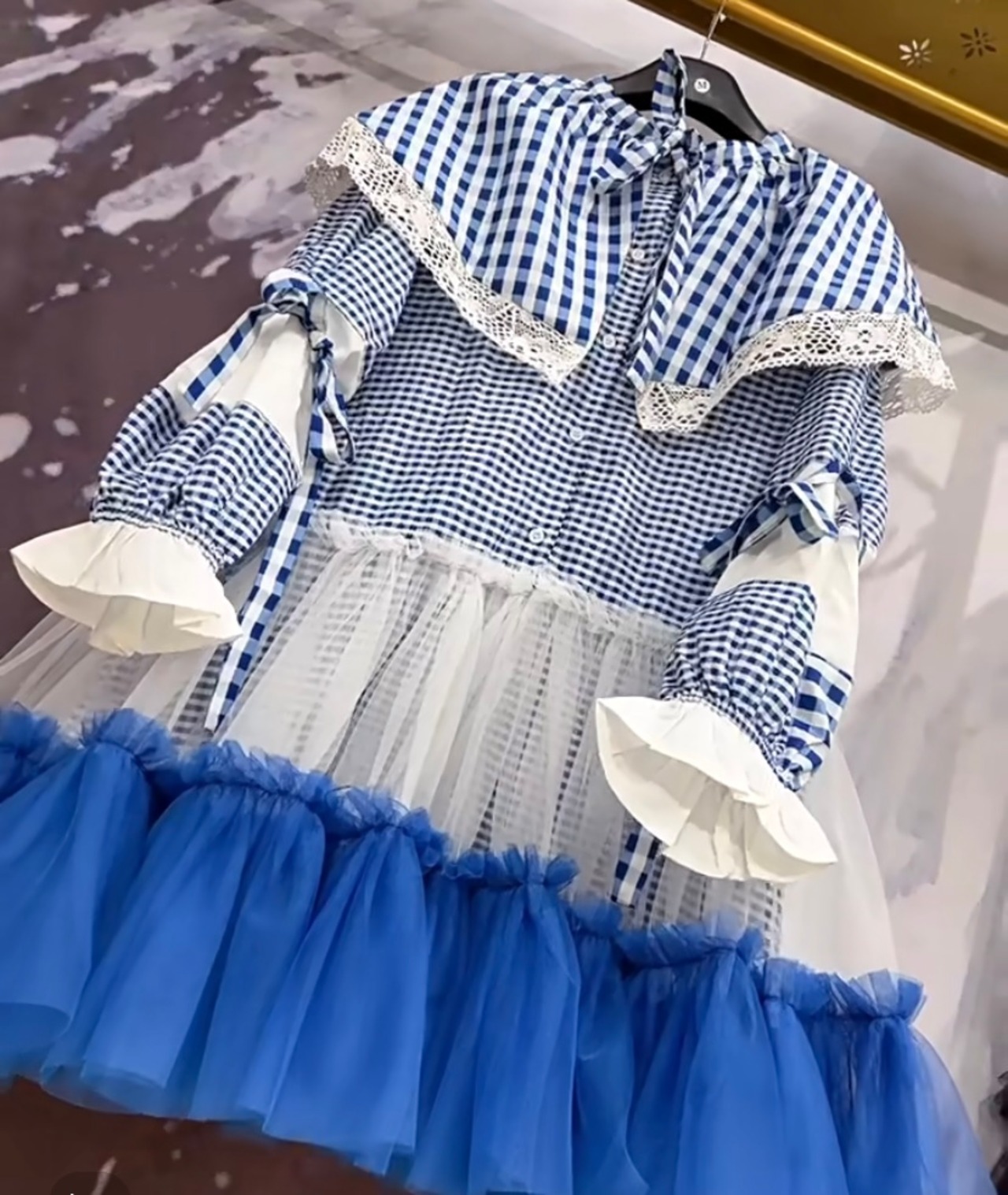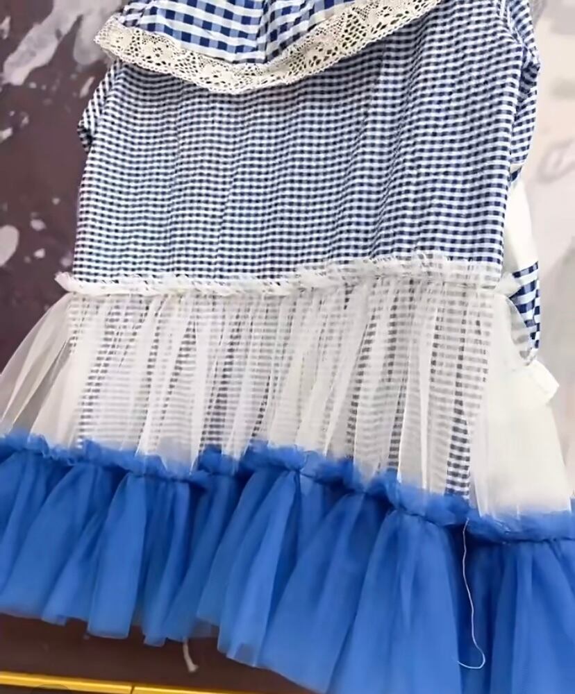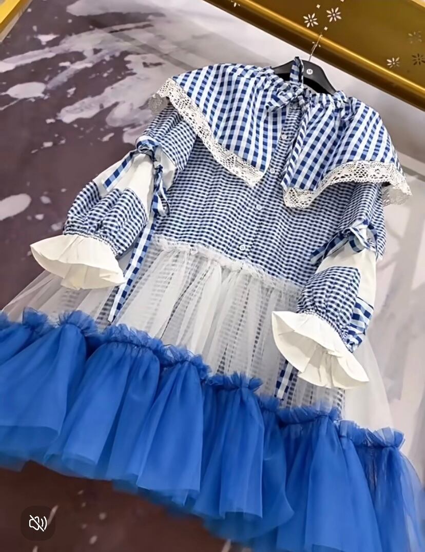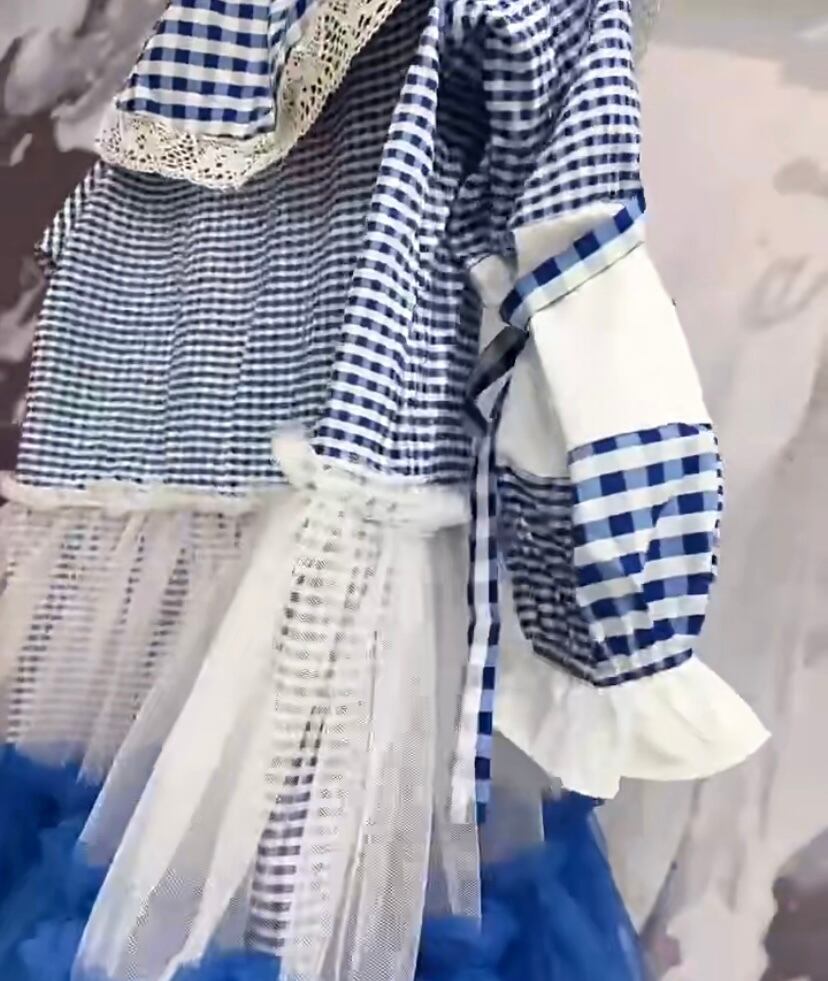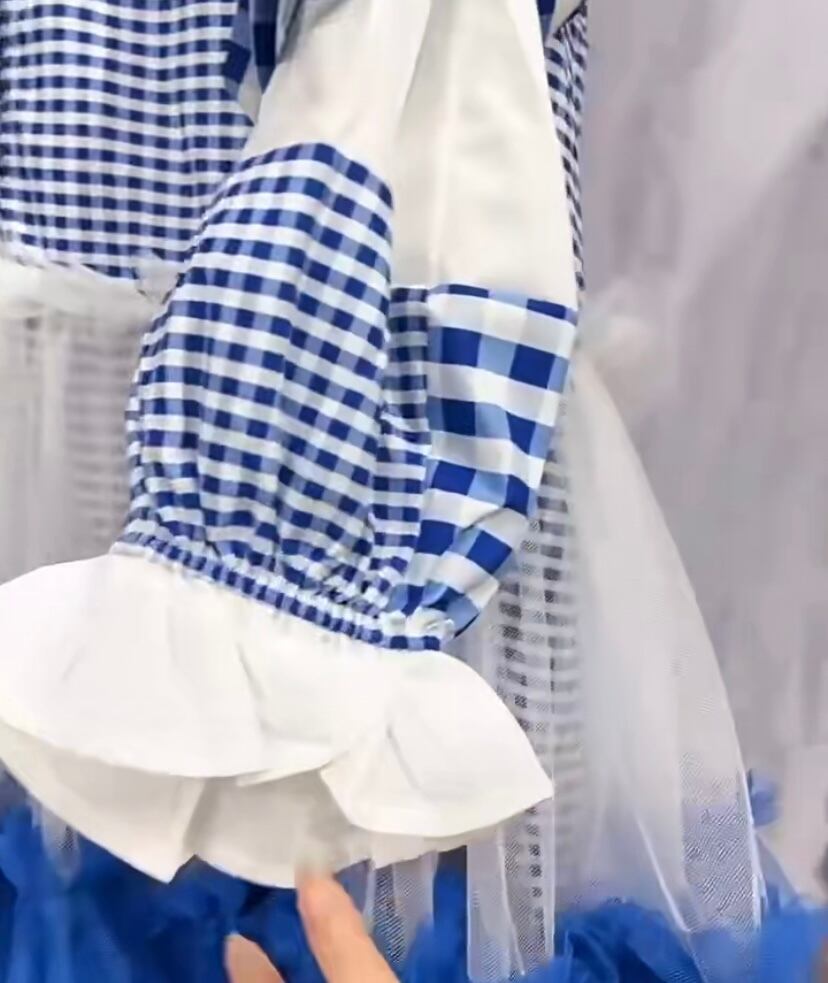 水色 チェック 白 海 爽やか 空 セーラー 襟 白 黒 ワンピース ゆったり XL オーバーサイズ スウェット ブラウス 原宿 渋谷 デコレーション カジュアル オーバーサイズ 個性的 デコレーション 可愛い ブラウス