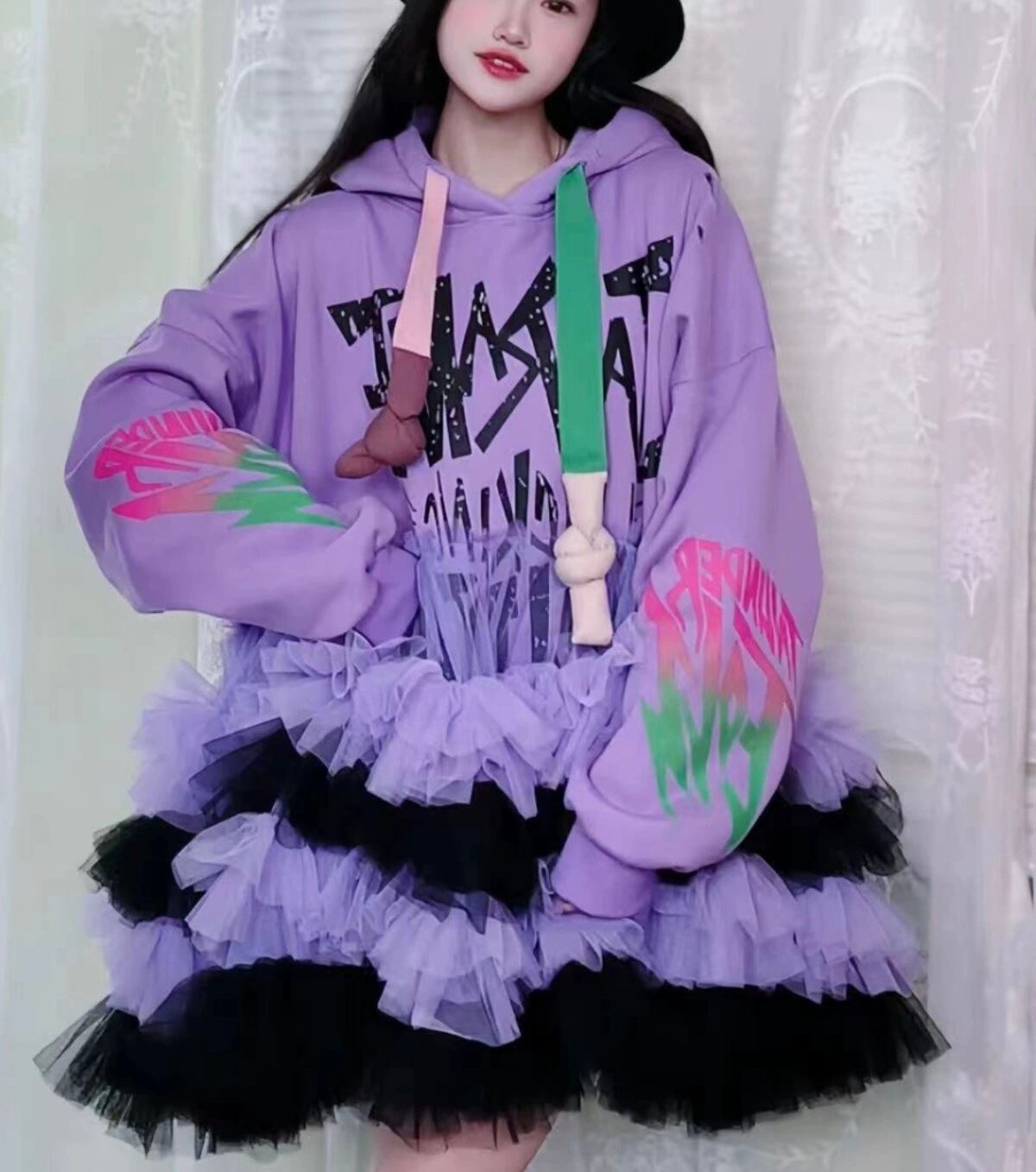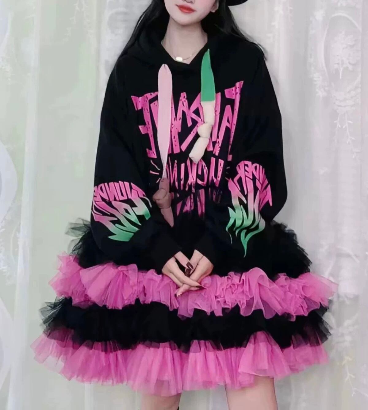 黒 ストリート パーカー トレーナー スウェット セーラー 襟 白 黒 ワンピース ゆったり XL オーバーサイズ スウェット ブラウス 原宿 渋谷 デコレーション カジュアル オーバーサイズ 個性的 デコレーション 可愛い ブラウス ロック 原宿