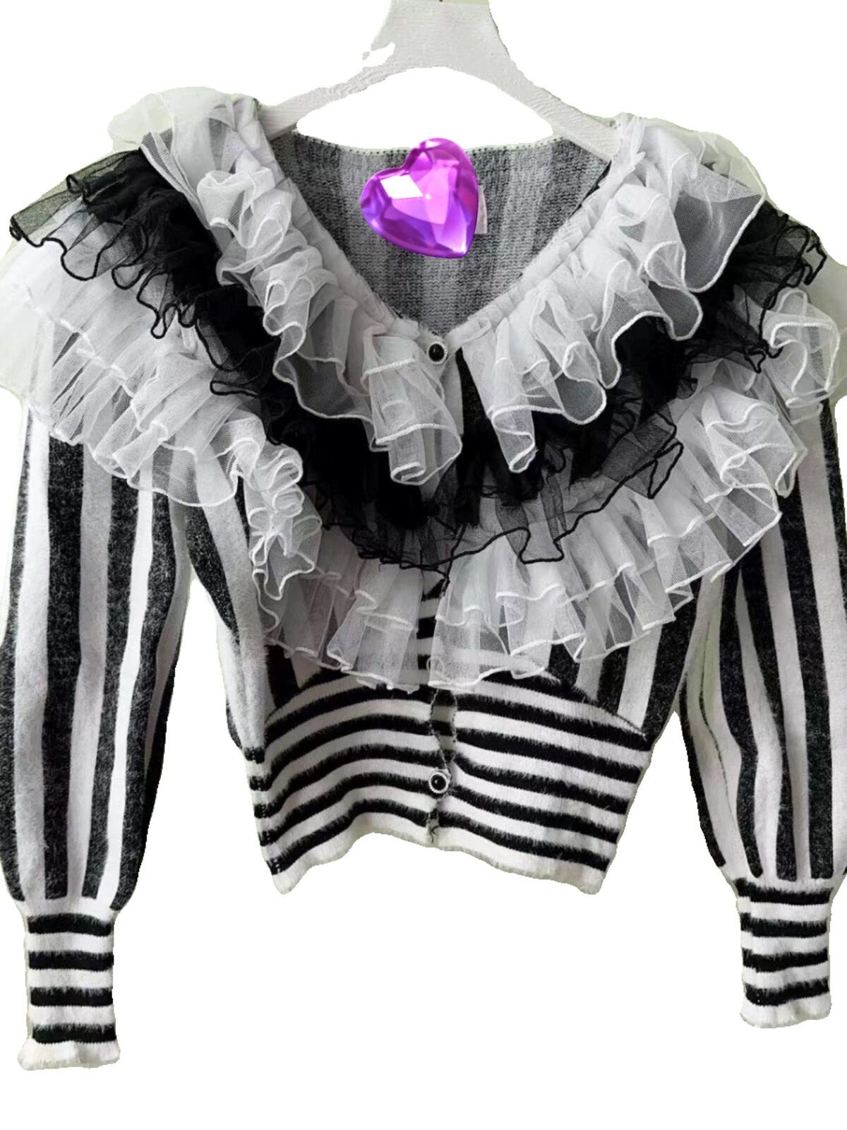 カーディガン 白黒 ボーダー ピンク ベージュ セーラー 襟 白 黒 ワンピース ゆったり XL オーバーサイズ スウェット ブラウス 原宿 渋谷 デコレーション カジュアル オーバーサイズ 個性的 デコレーション 可愛い ブラウス 花柄 フラワー
