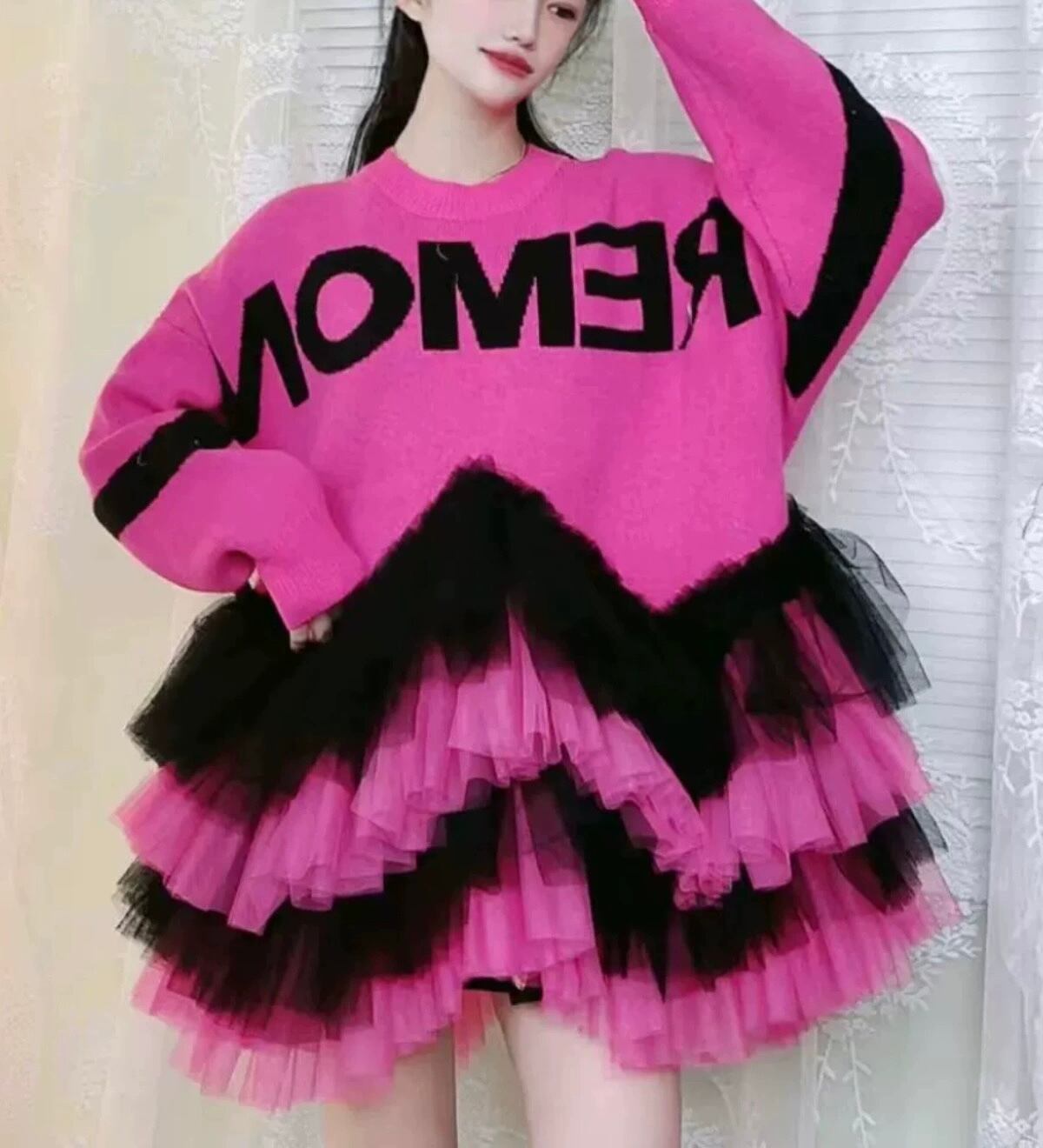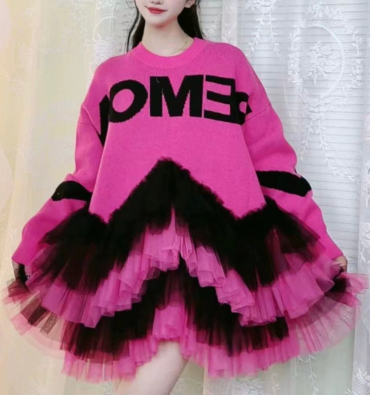 ピンク リボン 黒 スウェット トレーナー セーラー 襟 白 黒 ワンピース ゆったり XL オーバーサイズ スウェット ブラウス 原宿 渋谷 デコレーション カジュアル オーバーサイズ 個性的 デコレーション 可愛い ブラウス