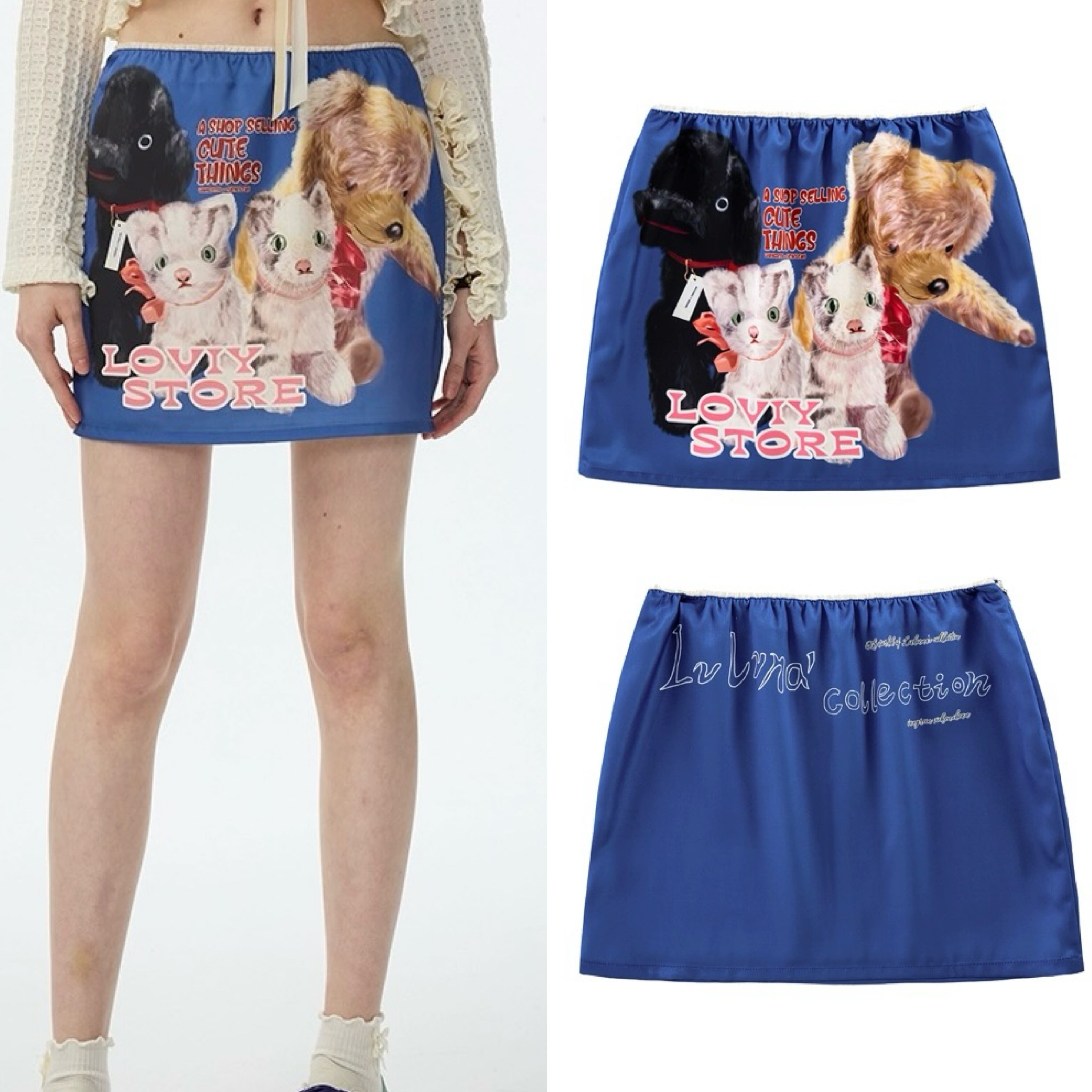 ブルー 犬 アニマル ペット 青 ボトムス くま ねこ ぬいぐるみ スカート ミニスカート ストリート 原宿 ペット