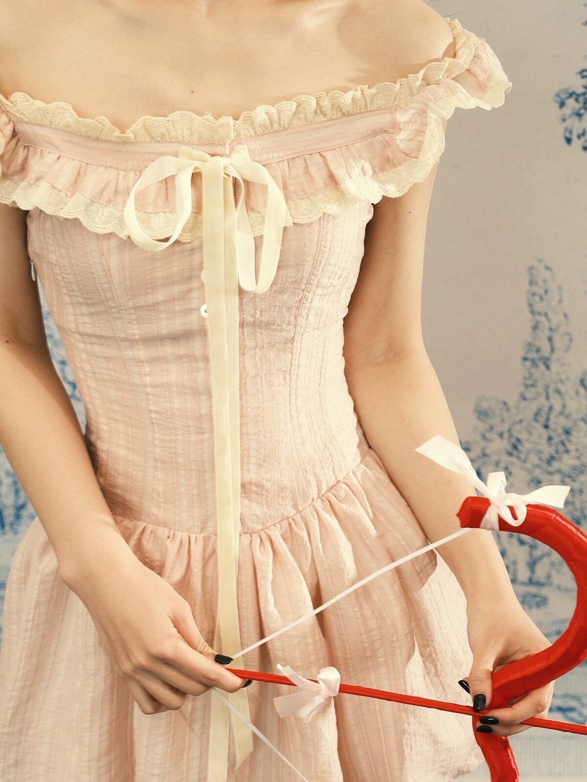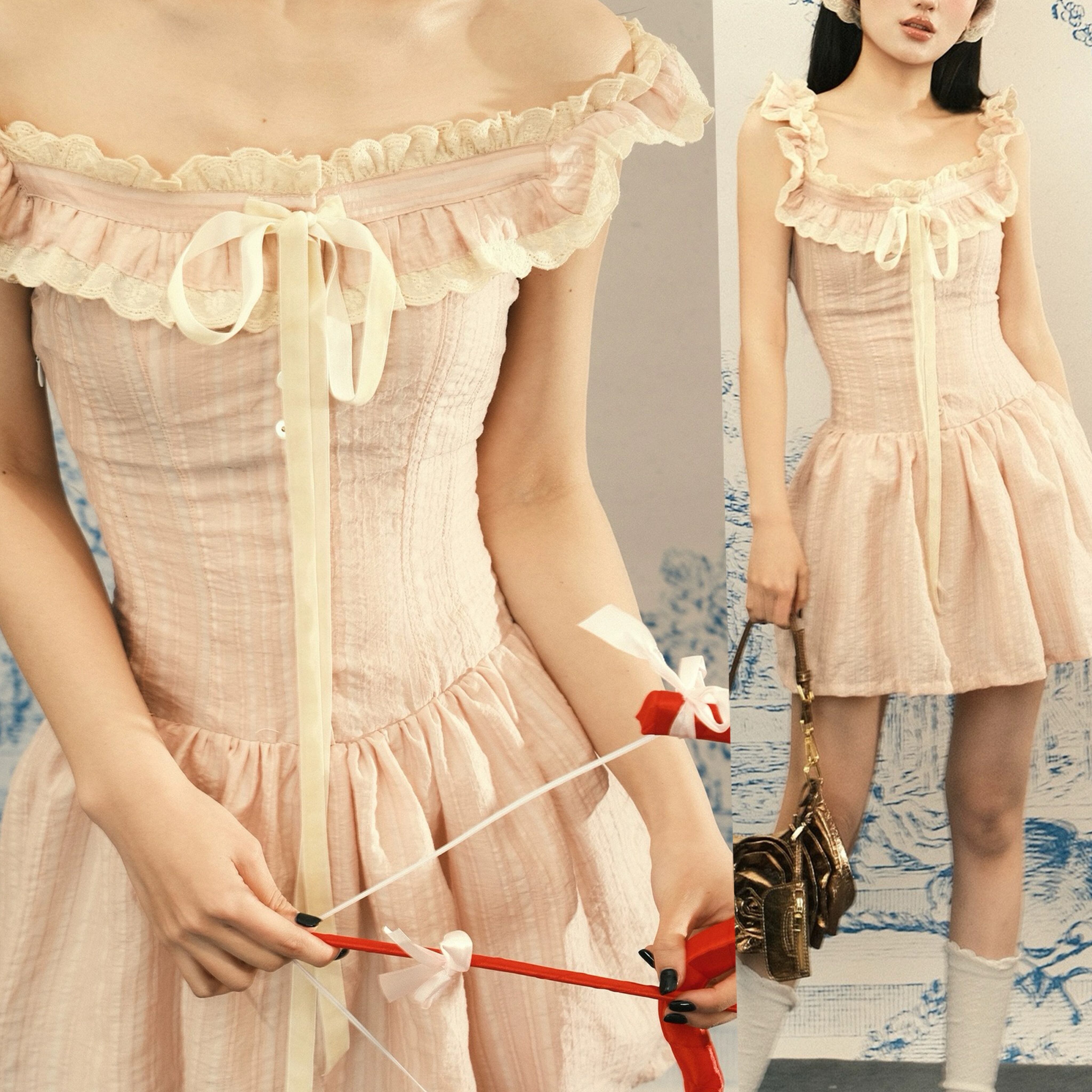 ピンク ブラウス リボン フリル ワンピース ガーリー