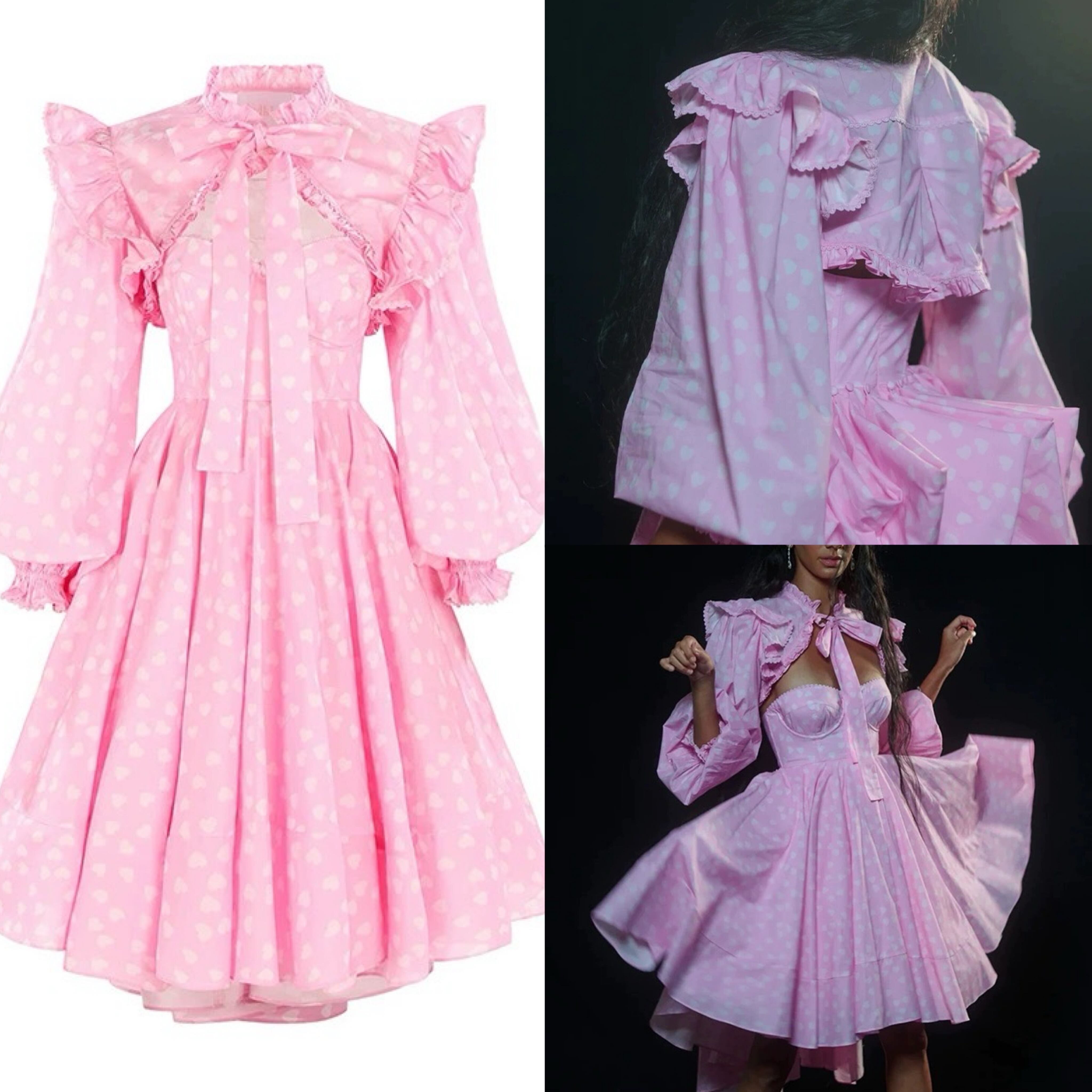 【XLまで❣️】ピンク ワンピース ゴージャス エレガント ドレス 可愛い かわいい ガーリー 銀座 パーティー リボン ゴージャス お嬢様 ブラウス スカート ブラウス リボン ガーリー 可愛い ドレス 水玉 ドット