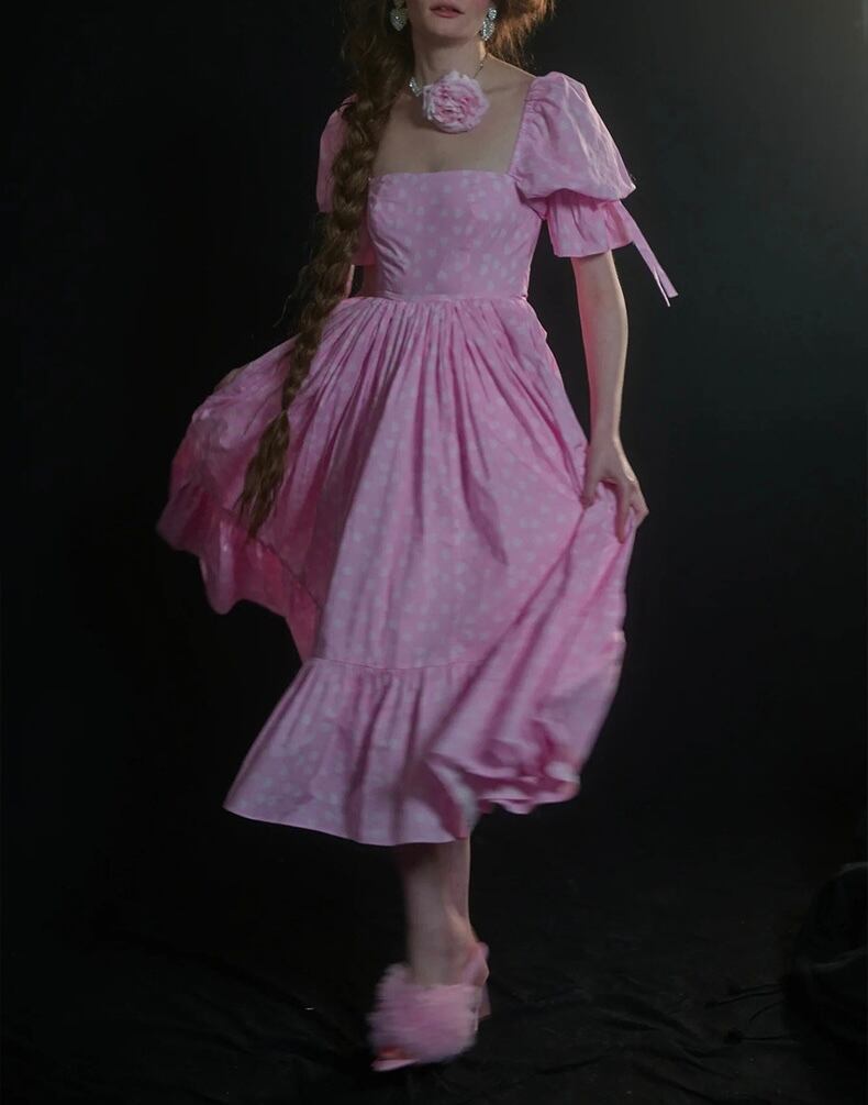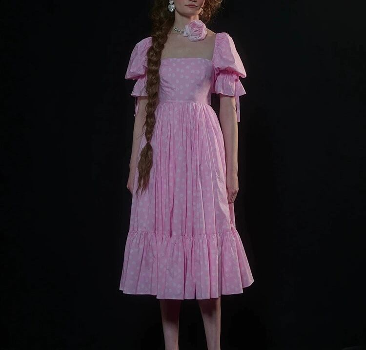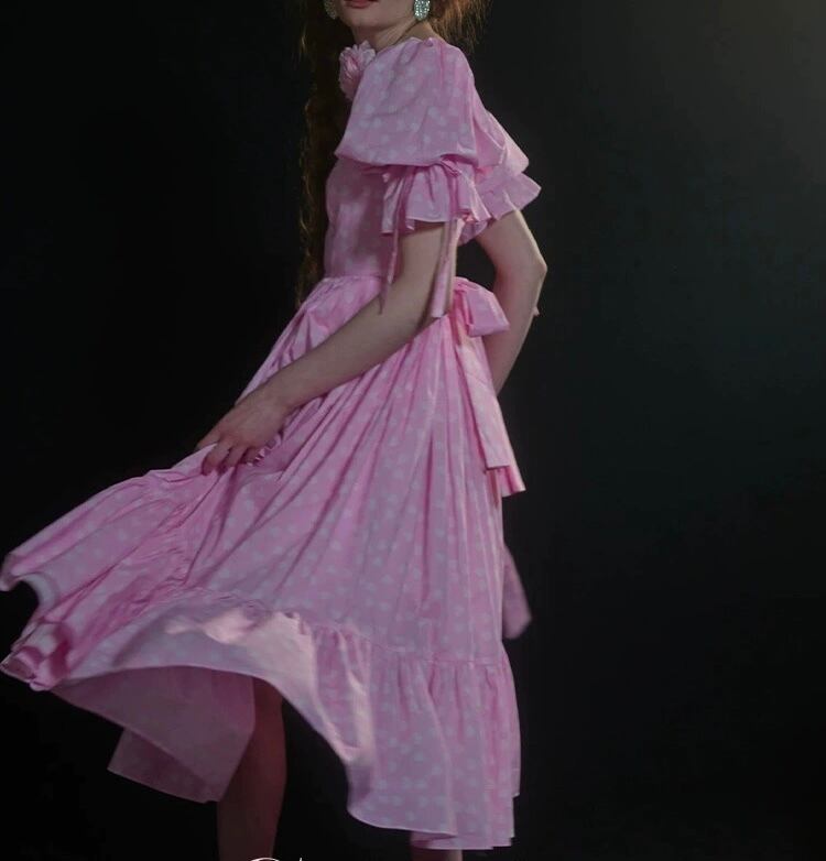 【XLまで❣️】ピンク ワンピース ゴージャス エレガント ドレス 可愛い かわいい ガーリー 銀座 パーティー リボン ゴージャス お嬢様 ブラウス スカート ブラウス リボン ガーリー 可愛い ドレス 水玉 ドット ピンク 水玉 リボン
