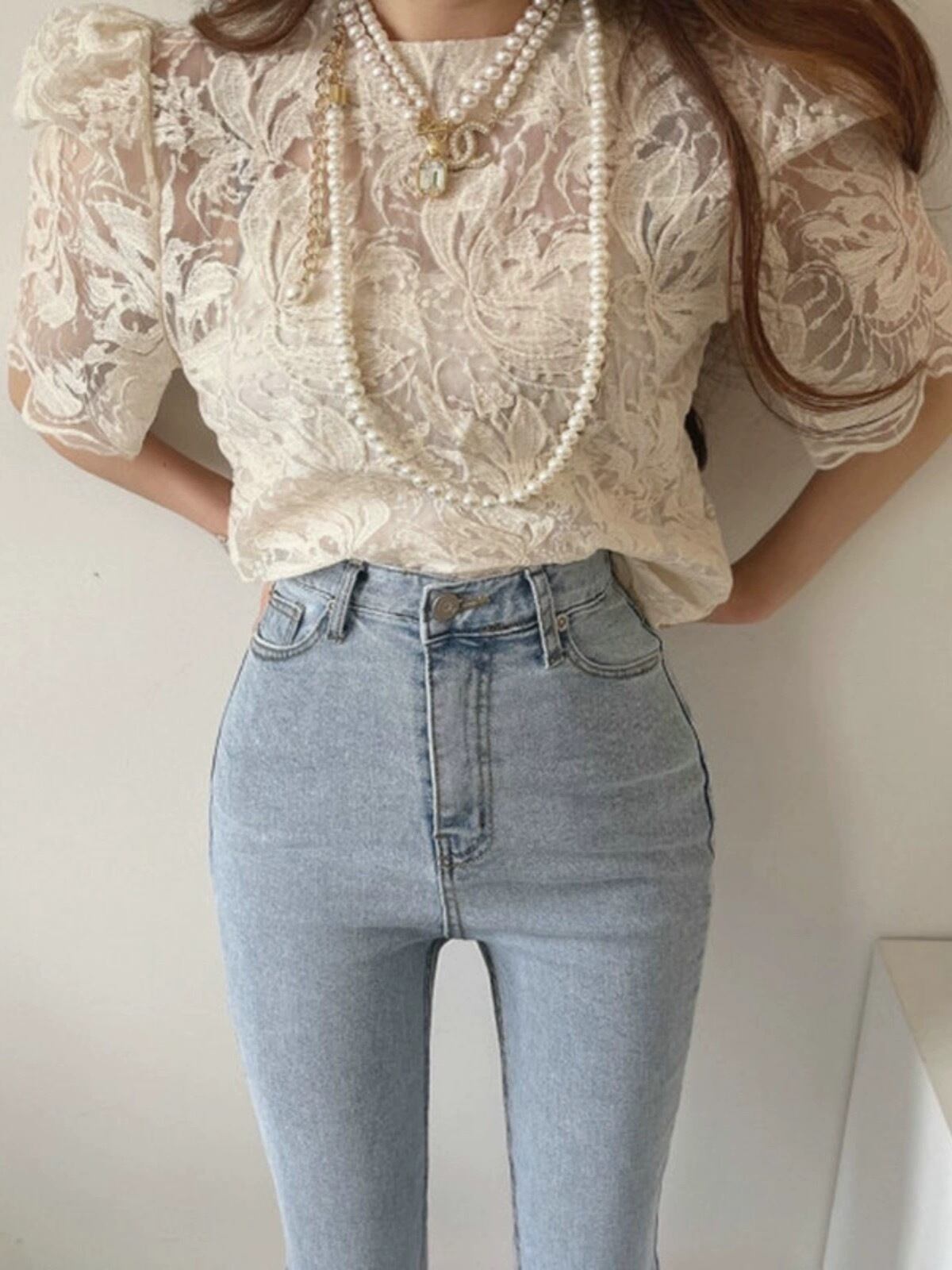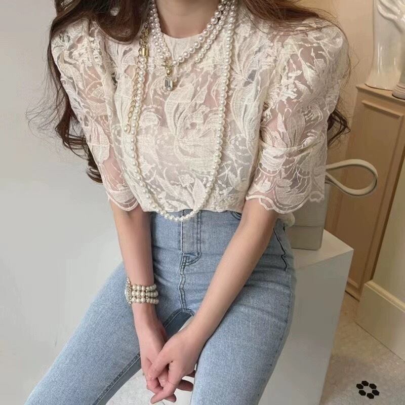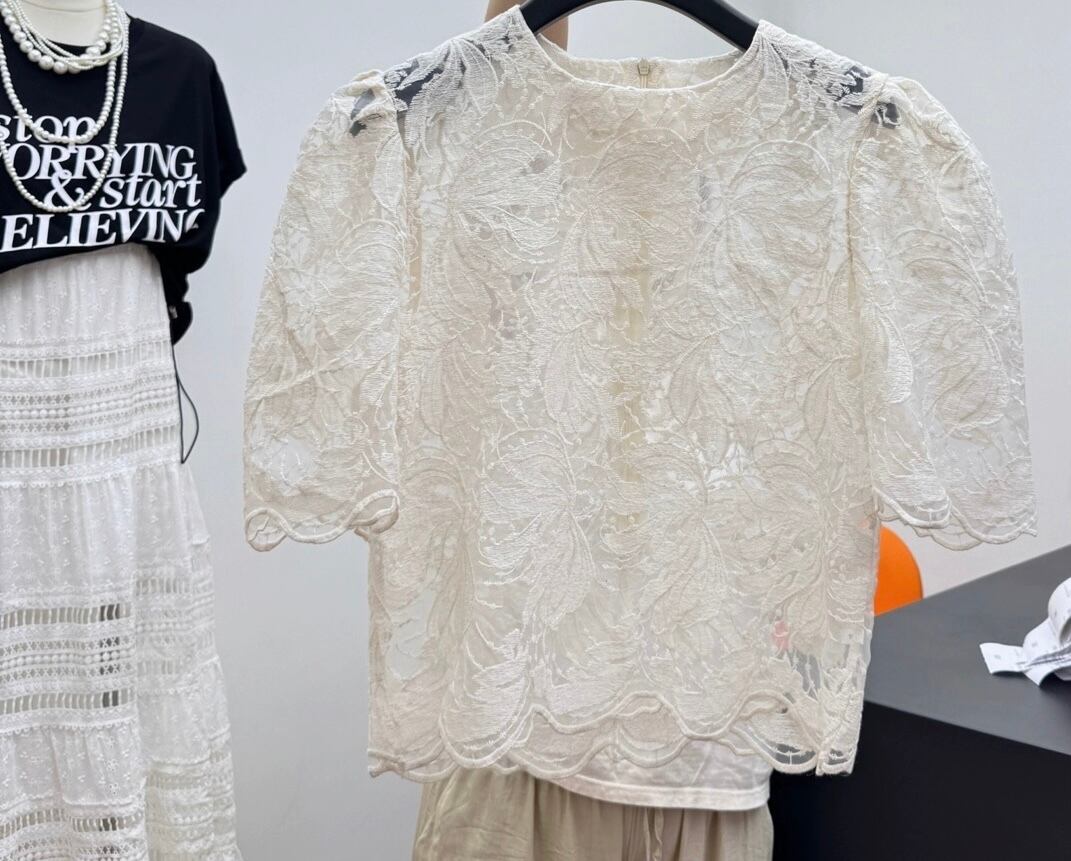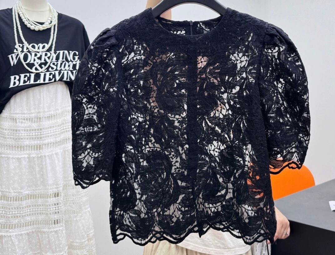 トップス レース 花柄 黒 白 ブラウス トップス フラワーシースルー ベージュ