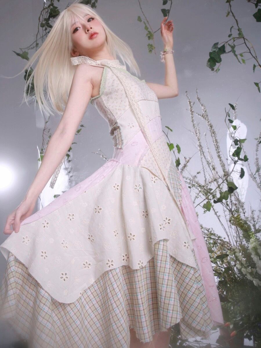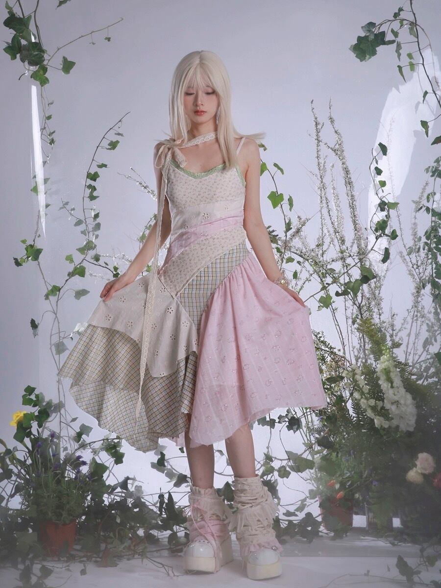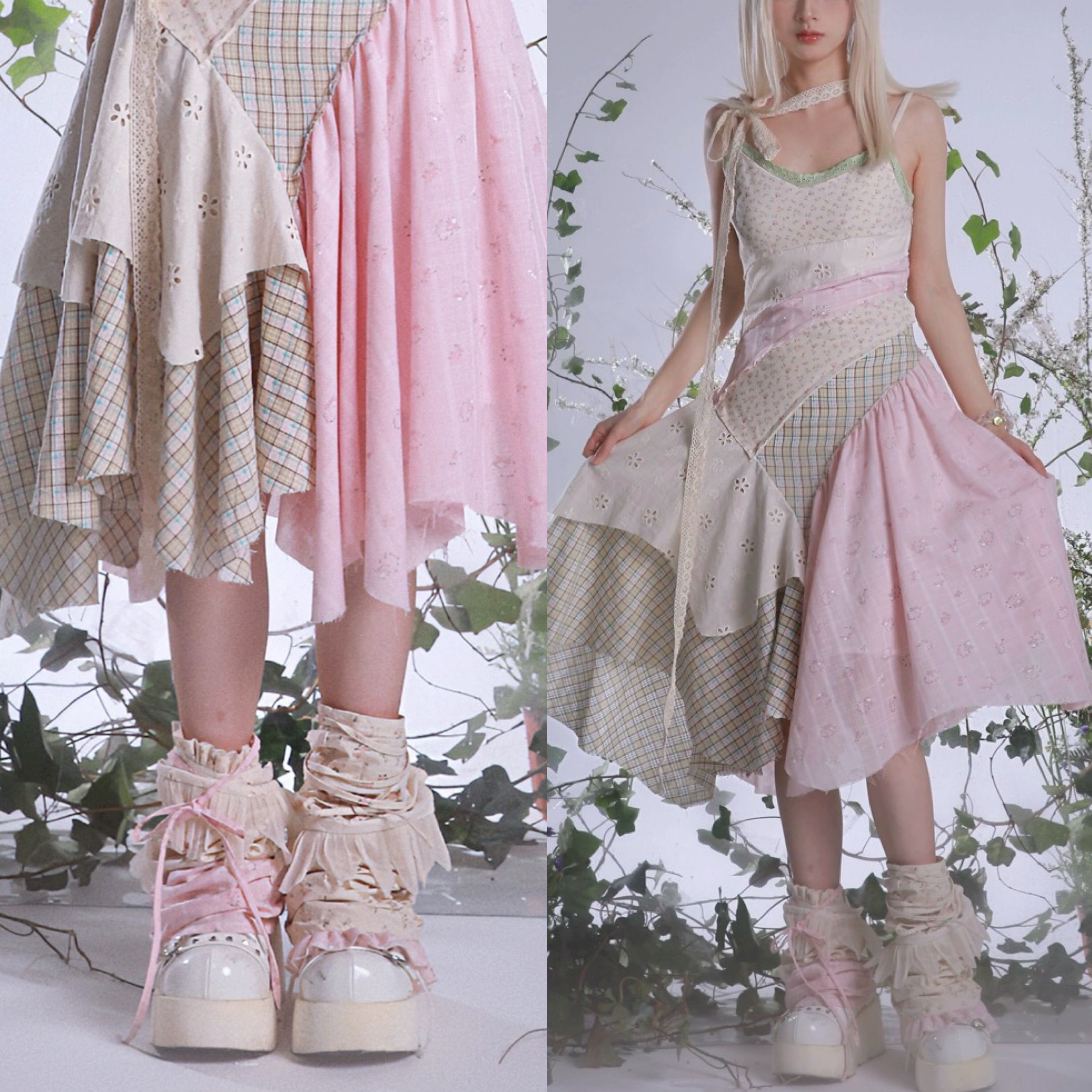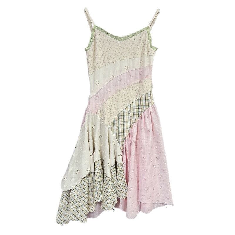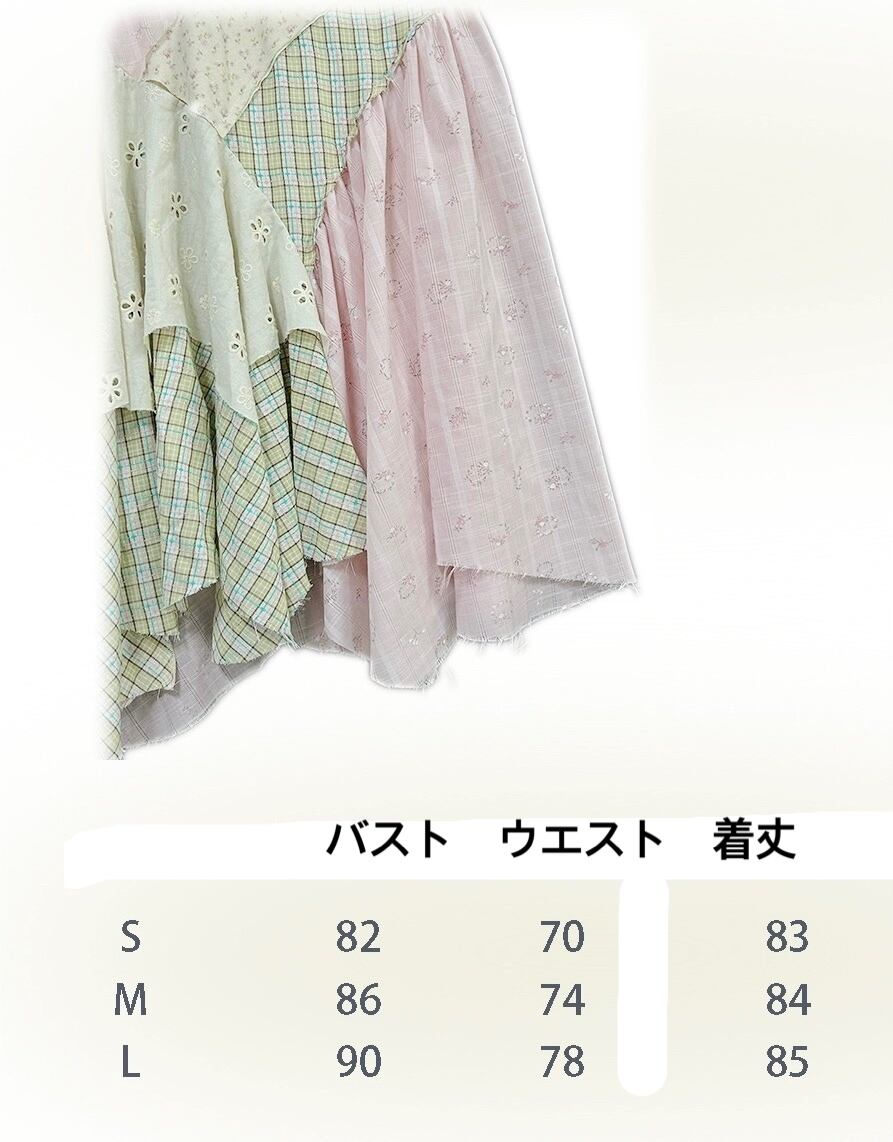 キャミソール 緑 ピンク カジュアル チェック ガーリー パッチワーク 可愛い スカート