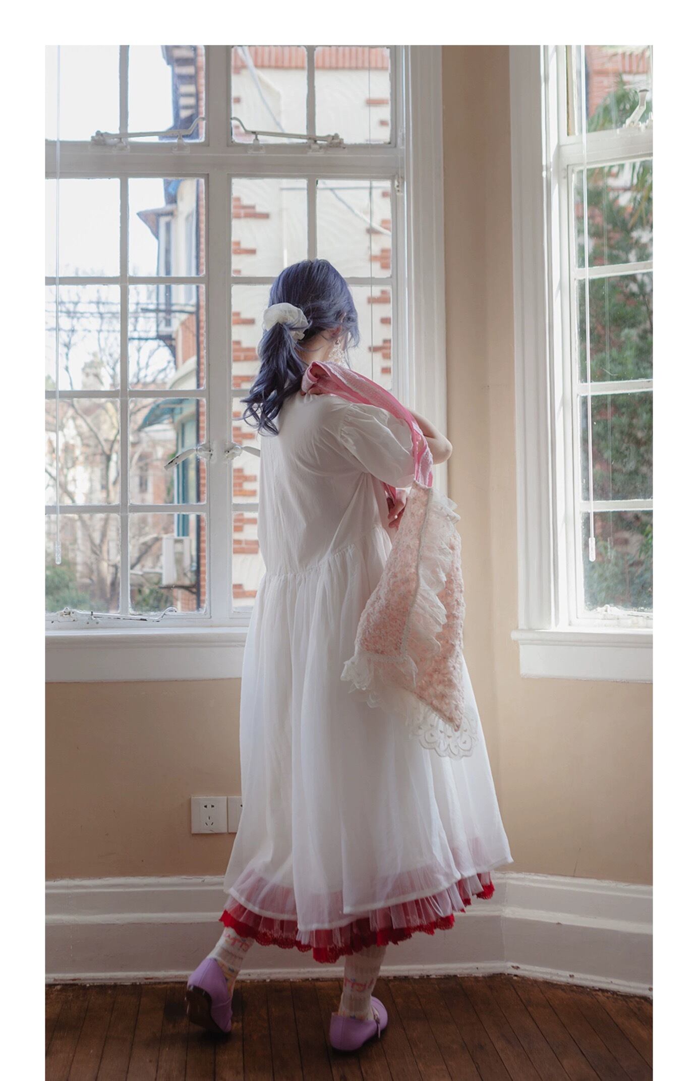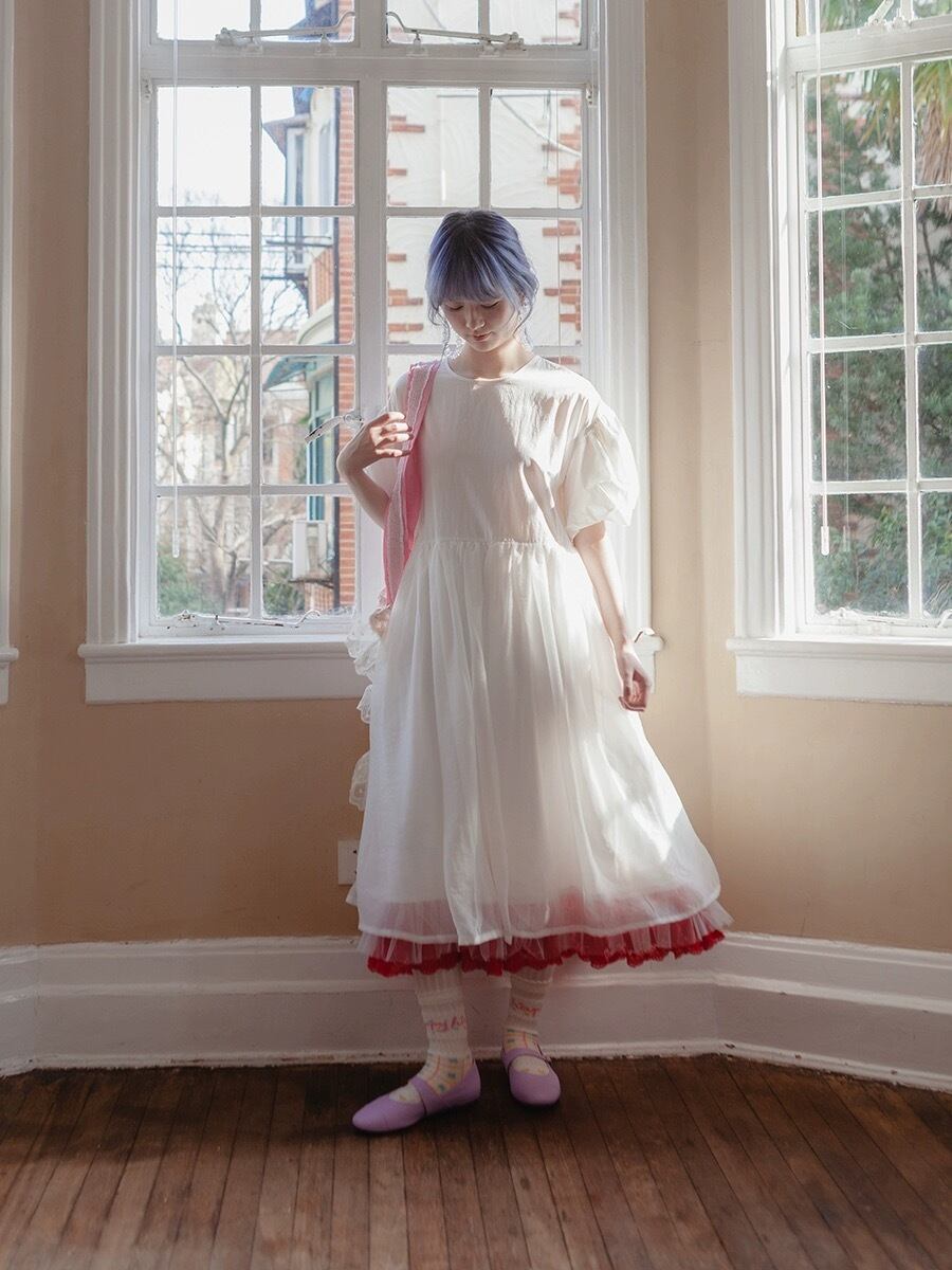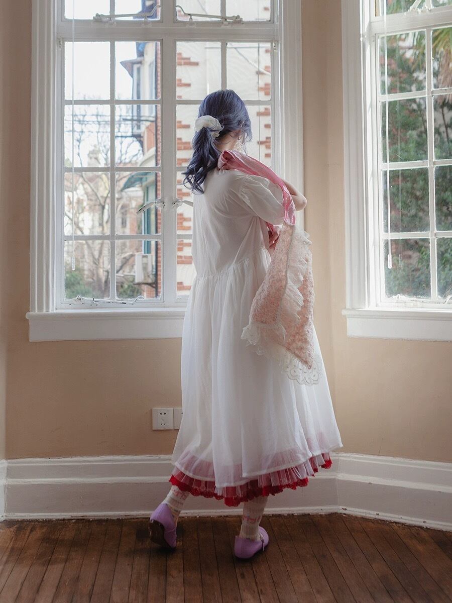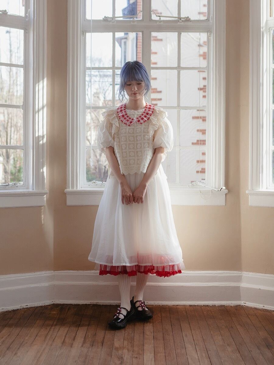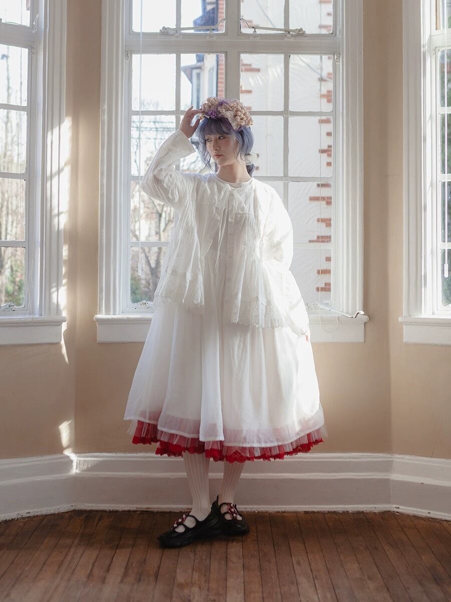 白 赤 ホワイト ガーリー スカート ブラウス ドレス ワンピース