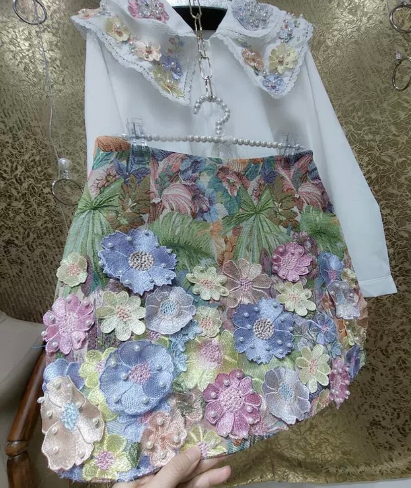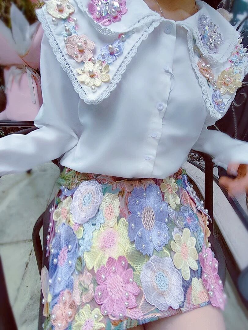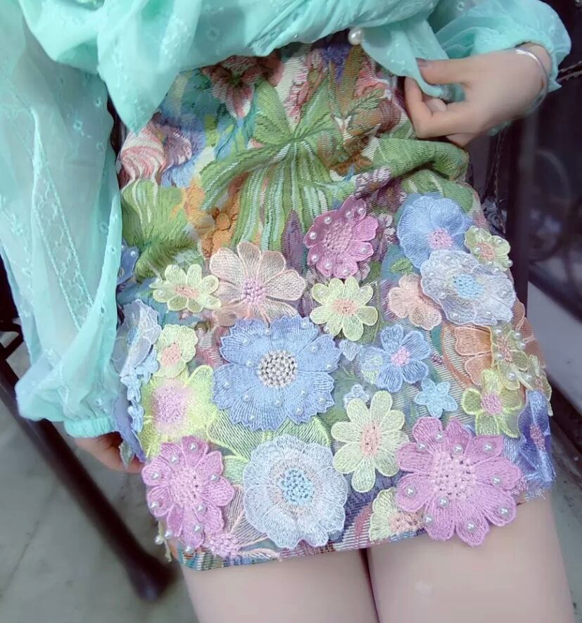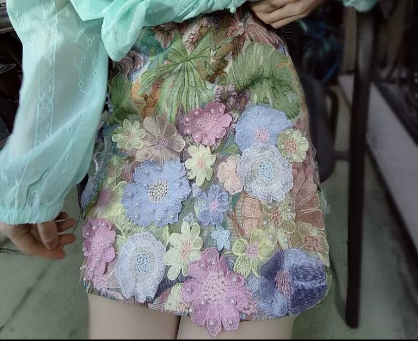 スカート 花柄 カラフル ボトムス デコレーション フラワー XL