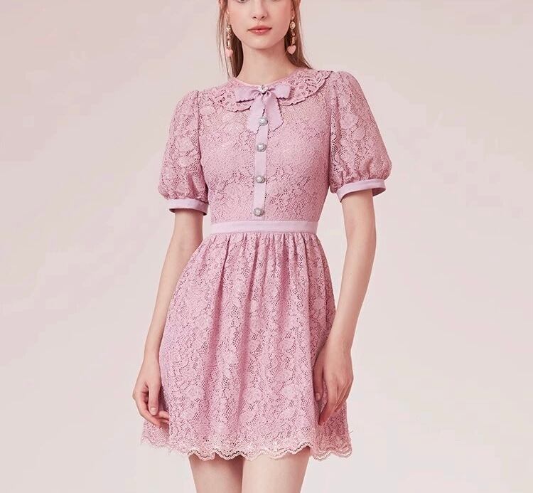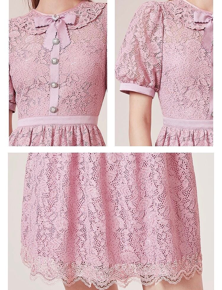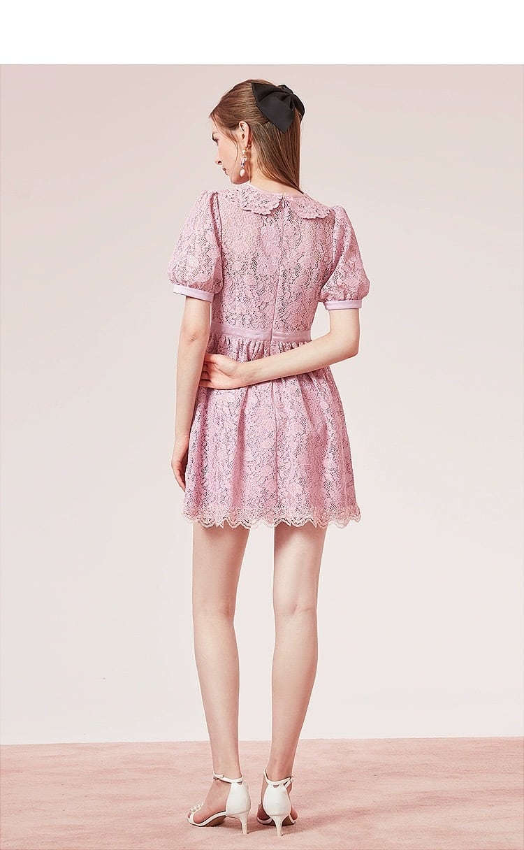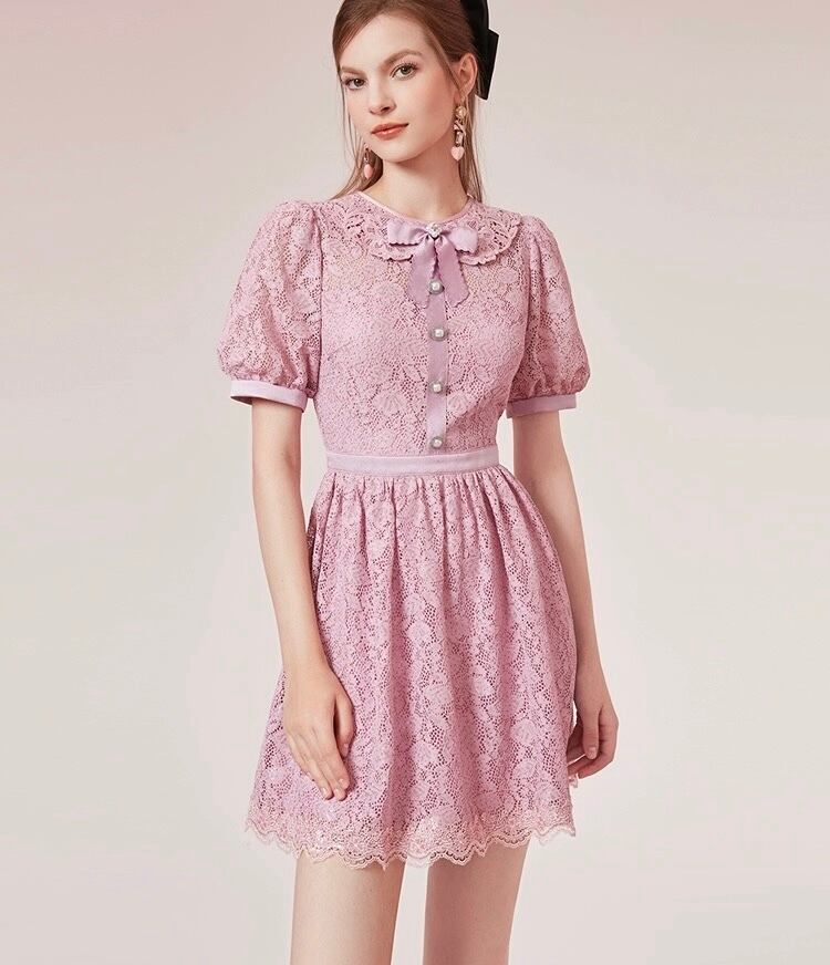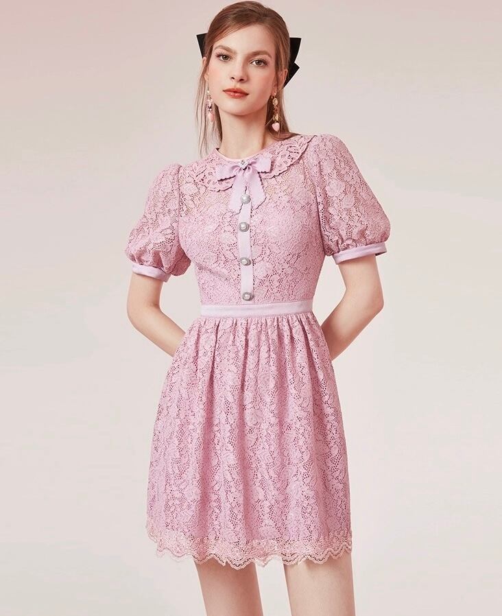 ピンク 紫 丸襟 ワンピース ガーリー レース ブラウス お嬢様 XL