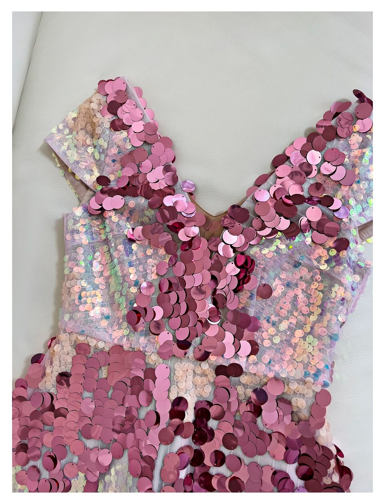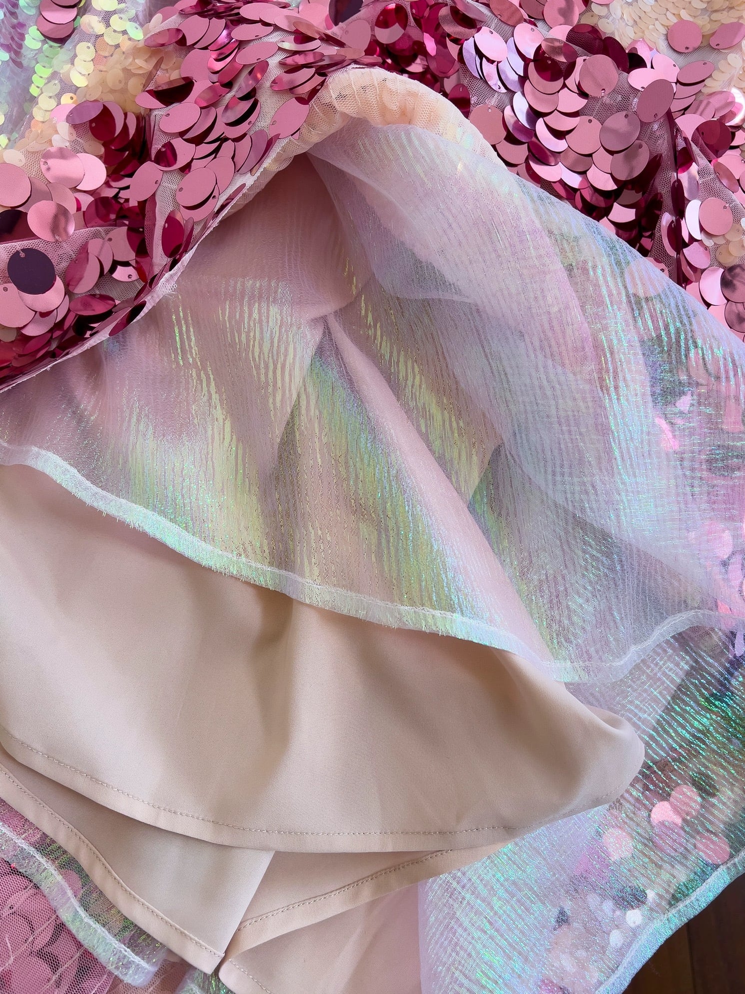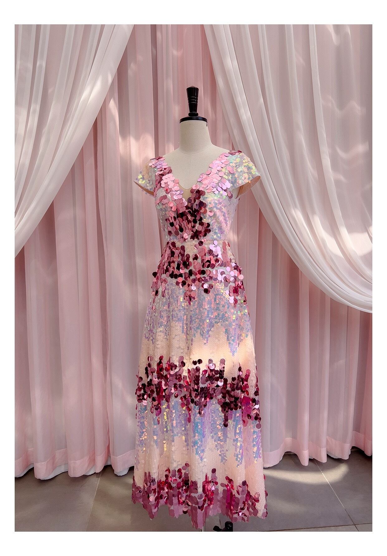 ピンク グラデーション スパンコール ワンピース キラキラ シルバー