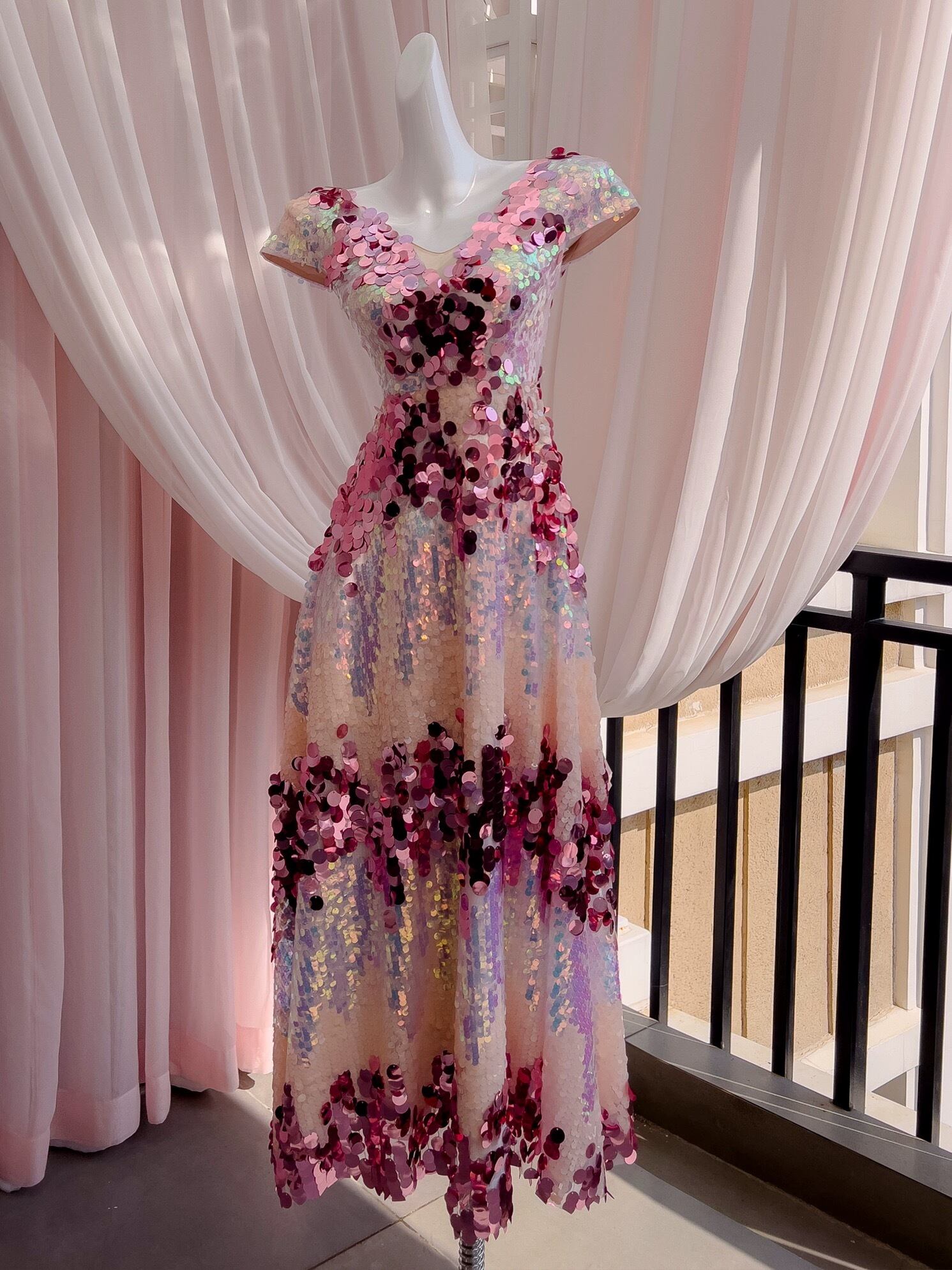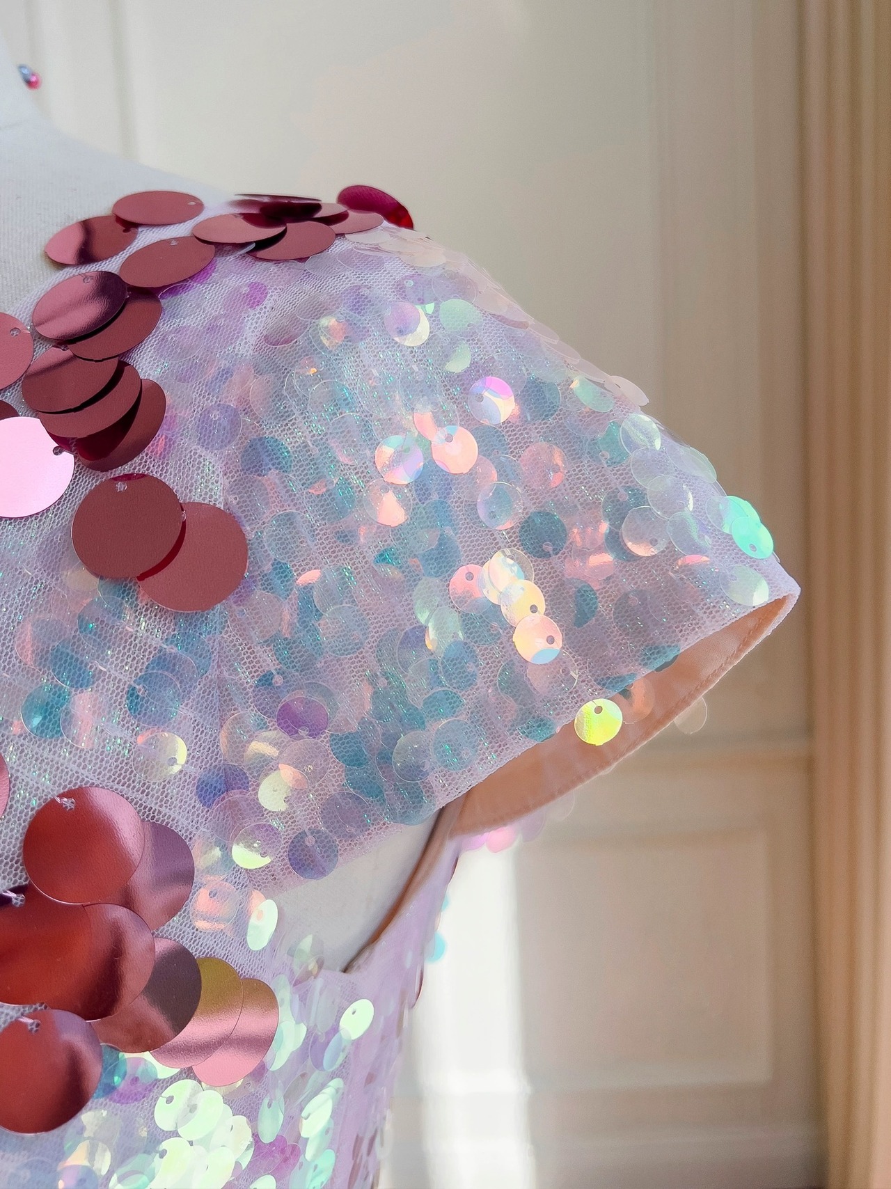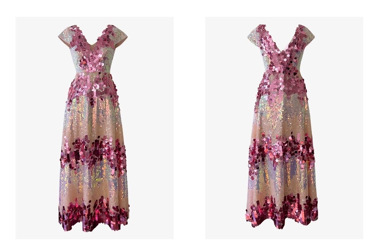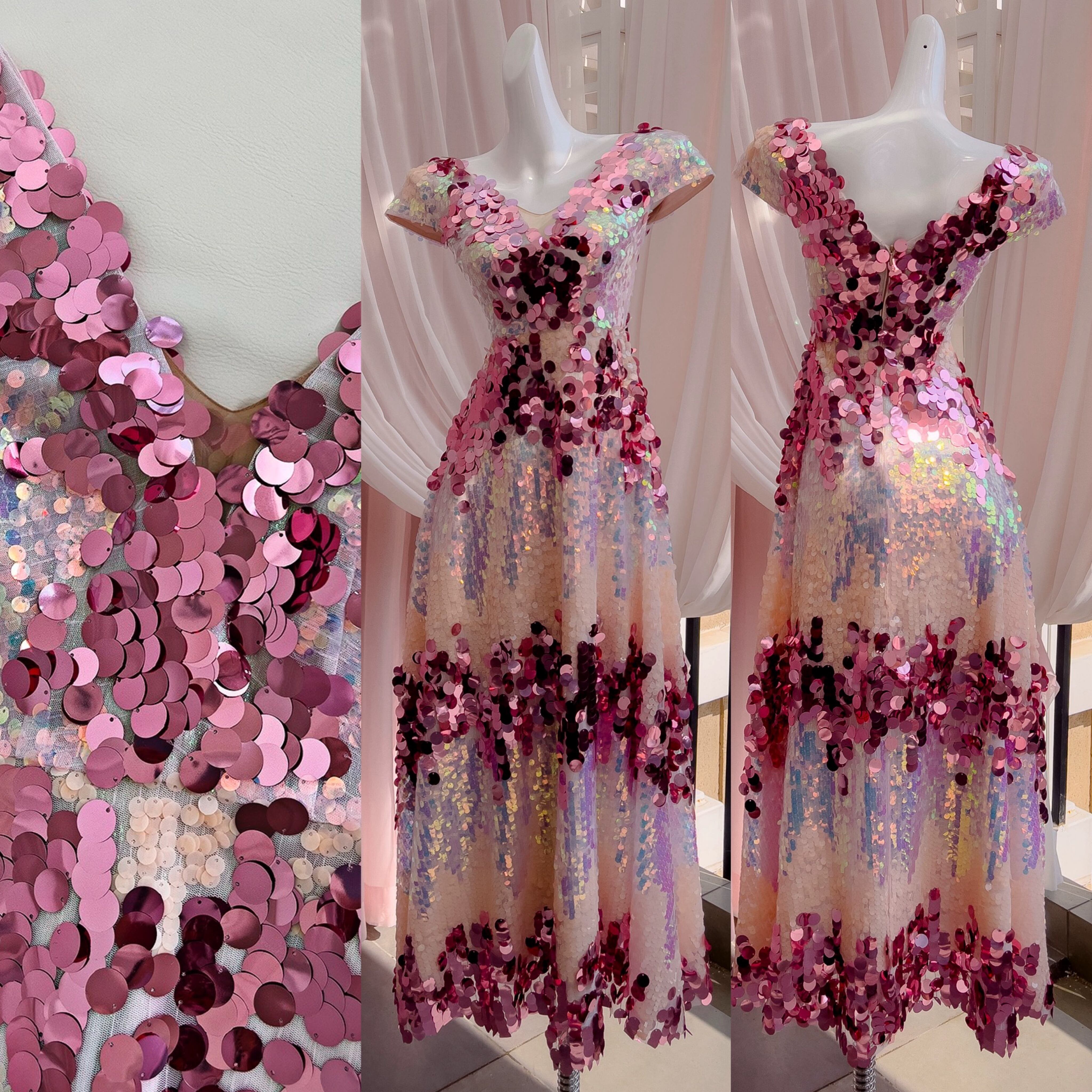 ピンク グラデーション スパンコール ワンピース キラキラ シルバー