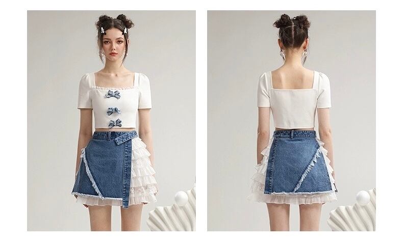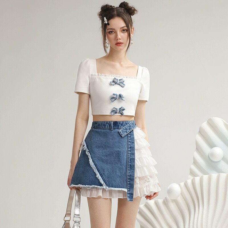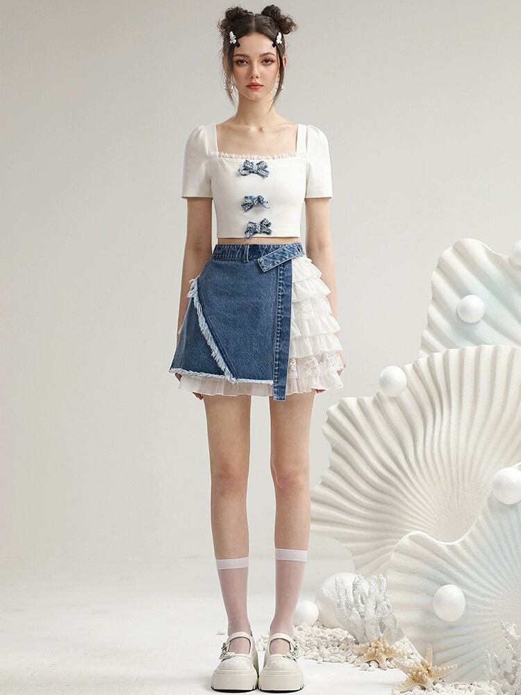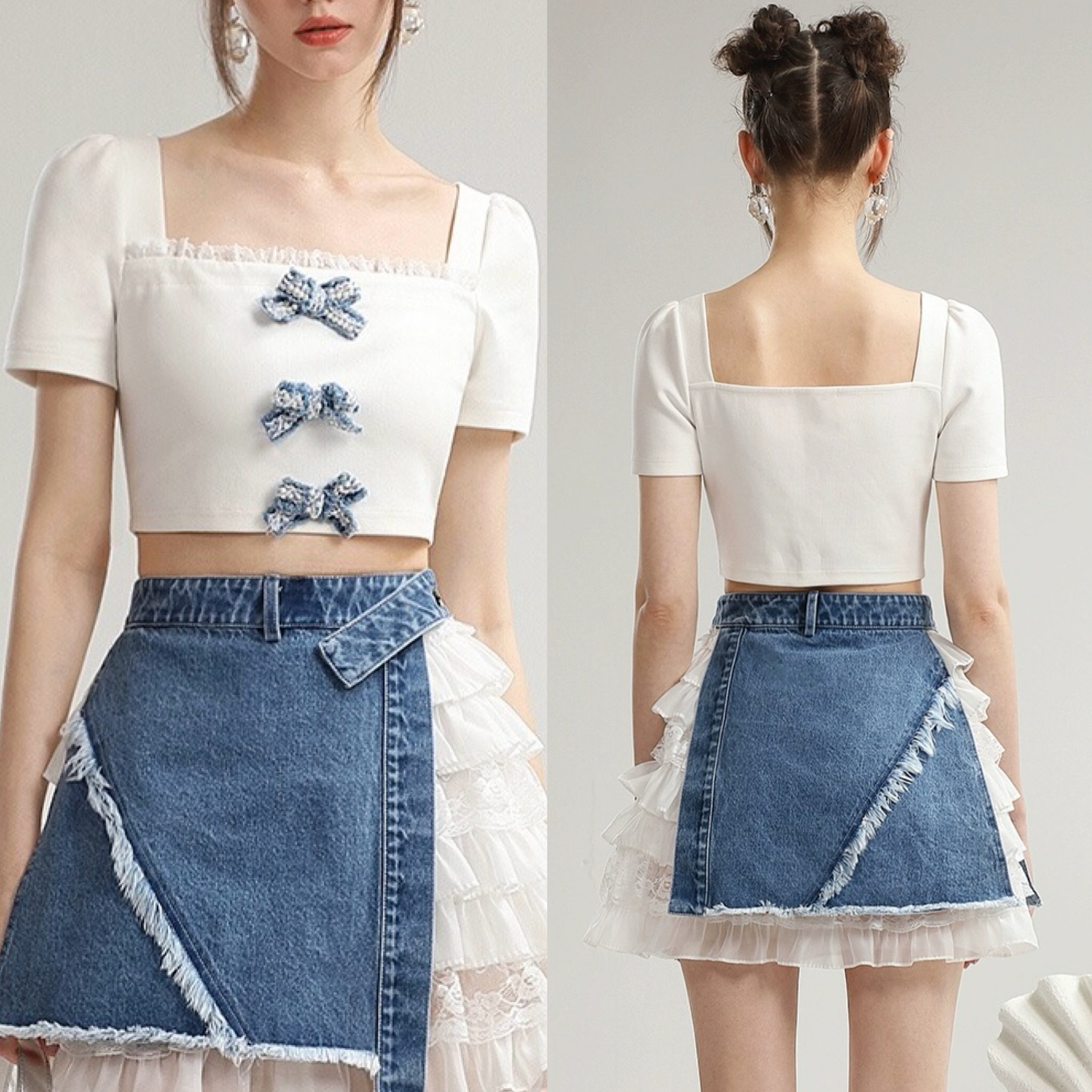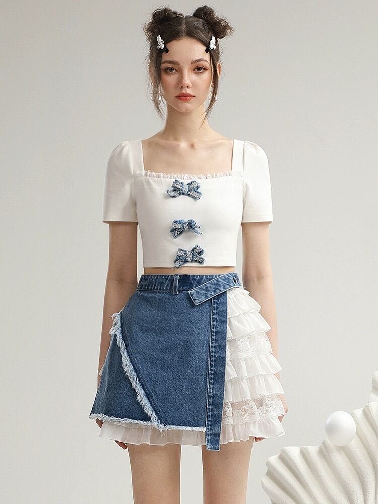 【トップス】白 ホワイト ブラウス ガーリー 水色 リボン