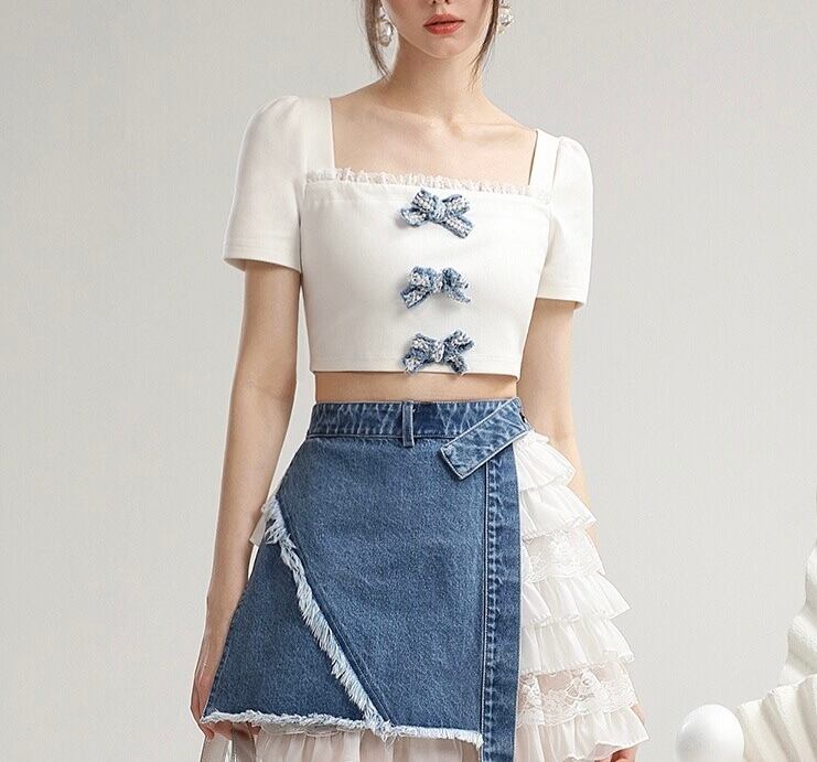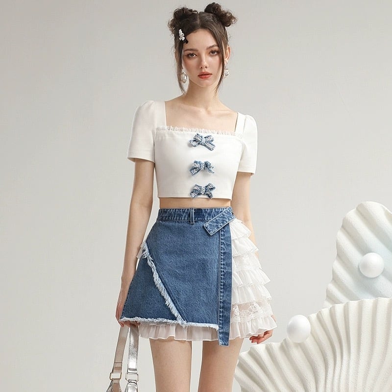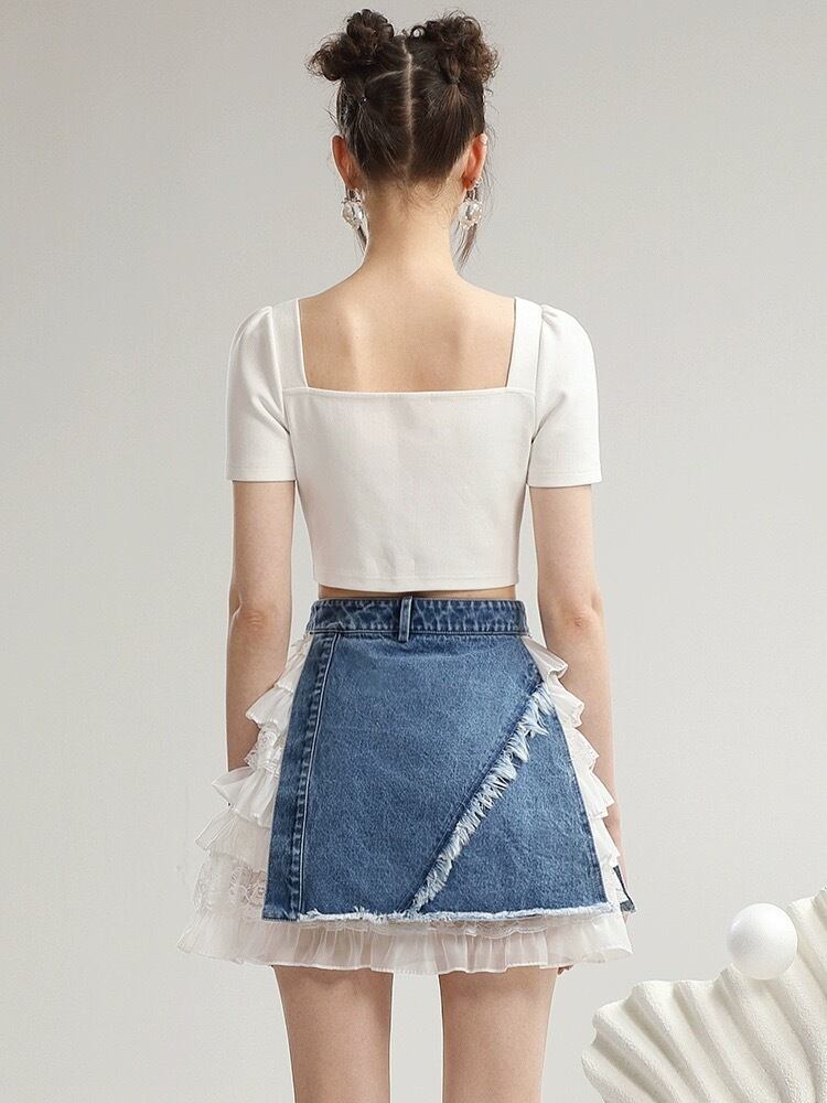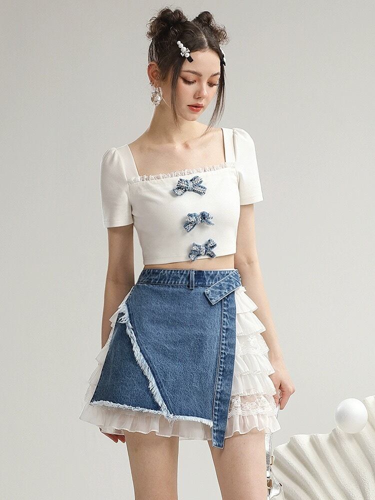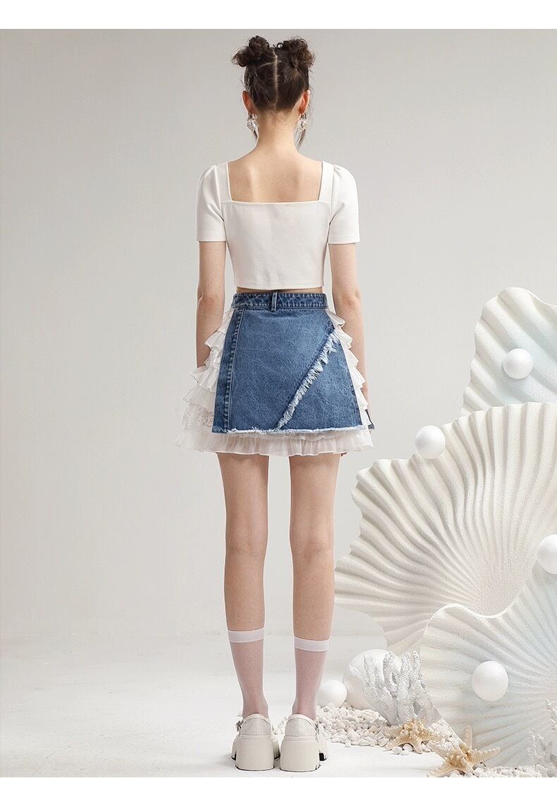 【スカート】デニム ミニスカート ボトムス ガーリー