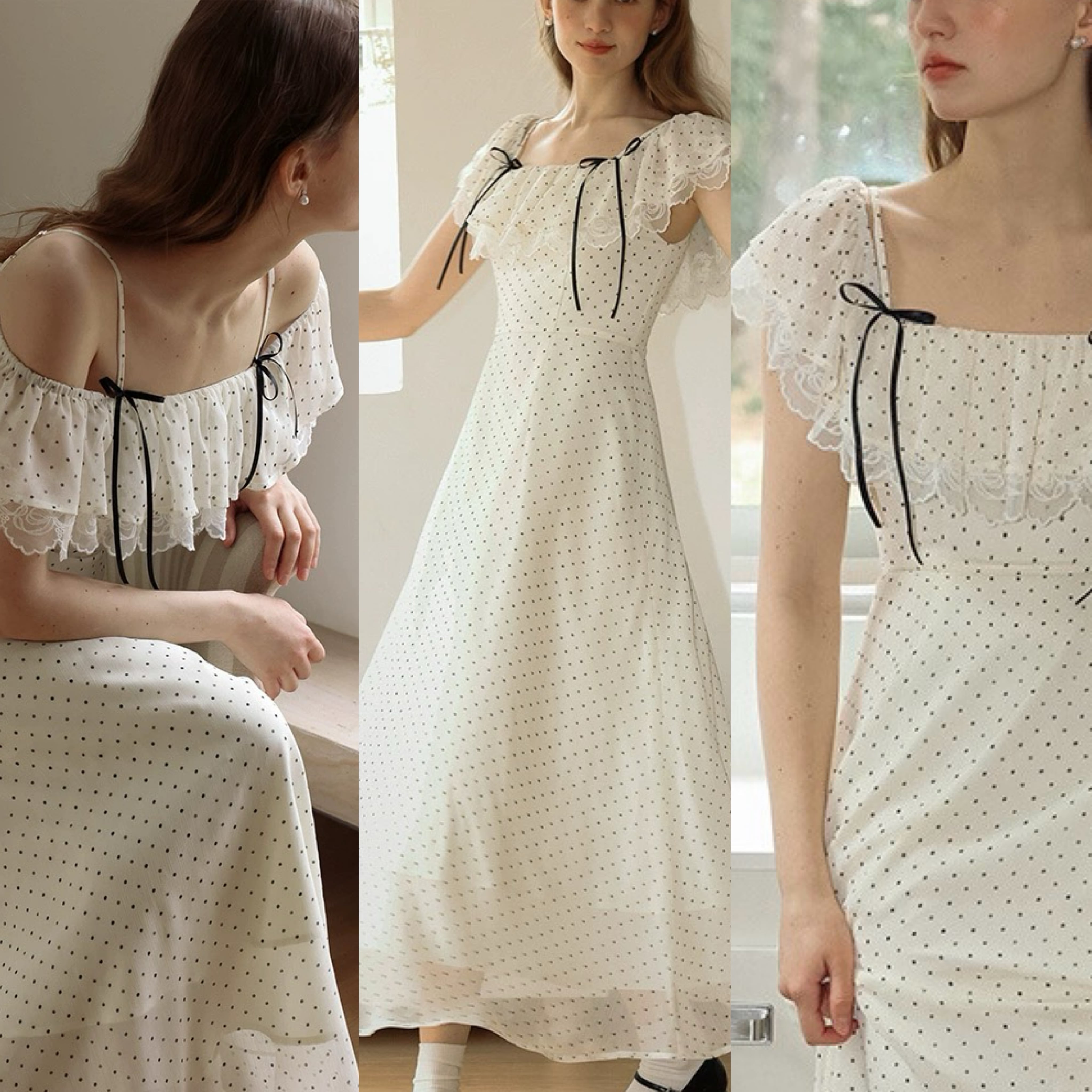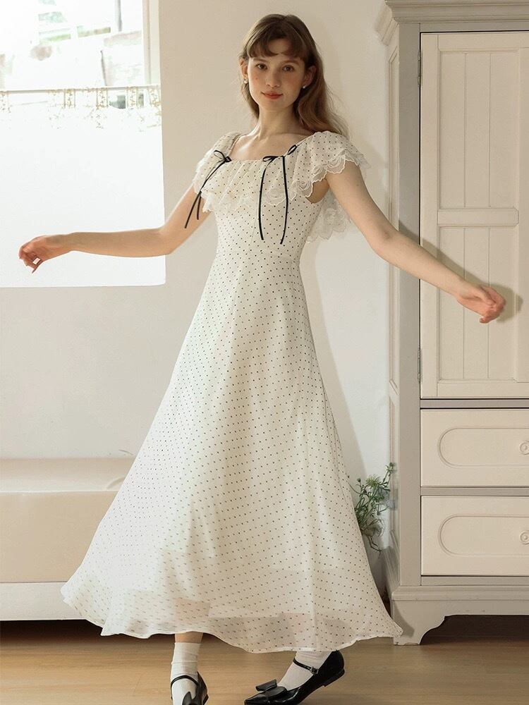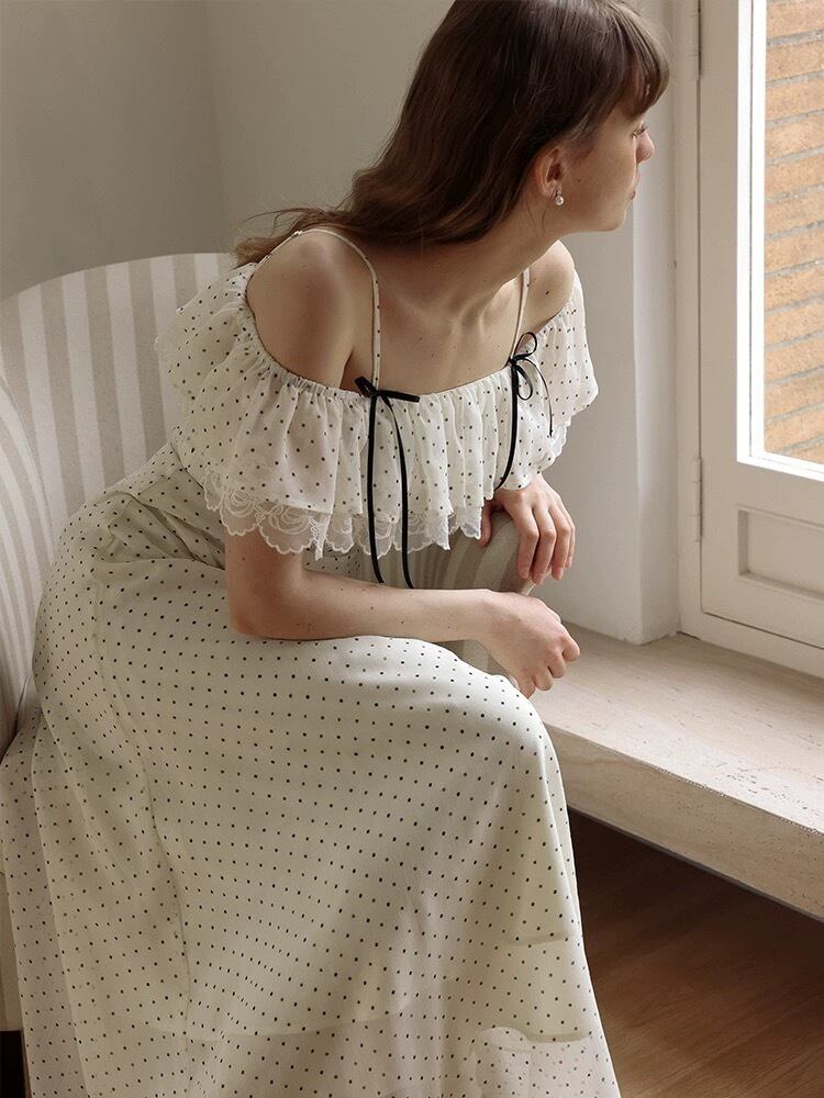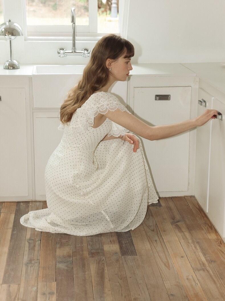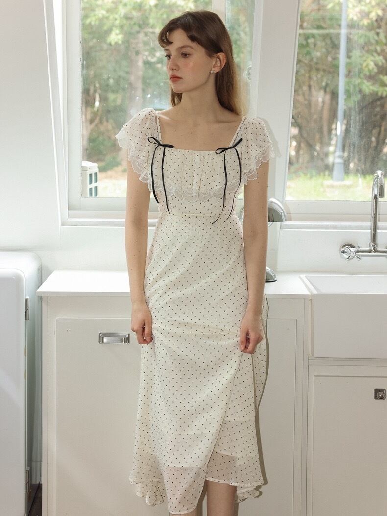 水玉 ワンピース 白 ホワイト ドット ブラウス ガーリー