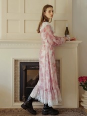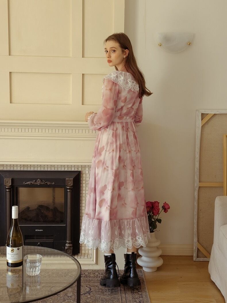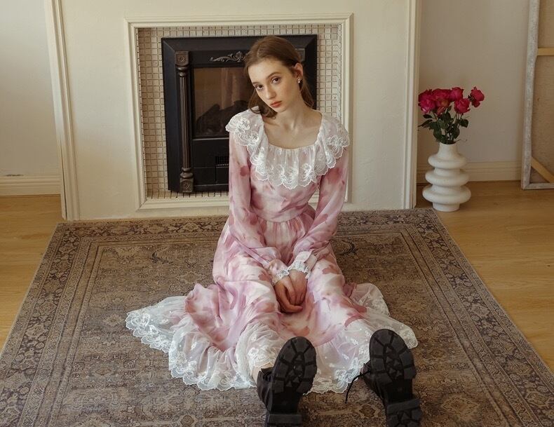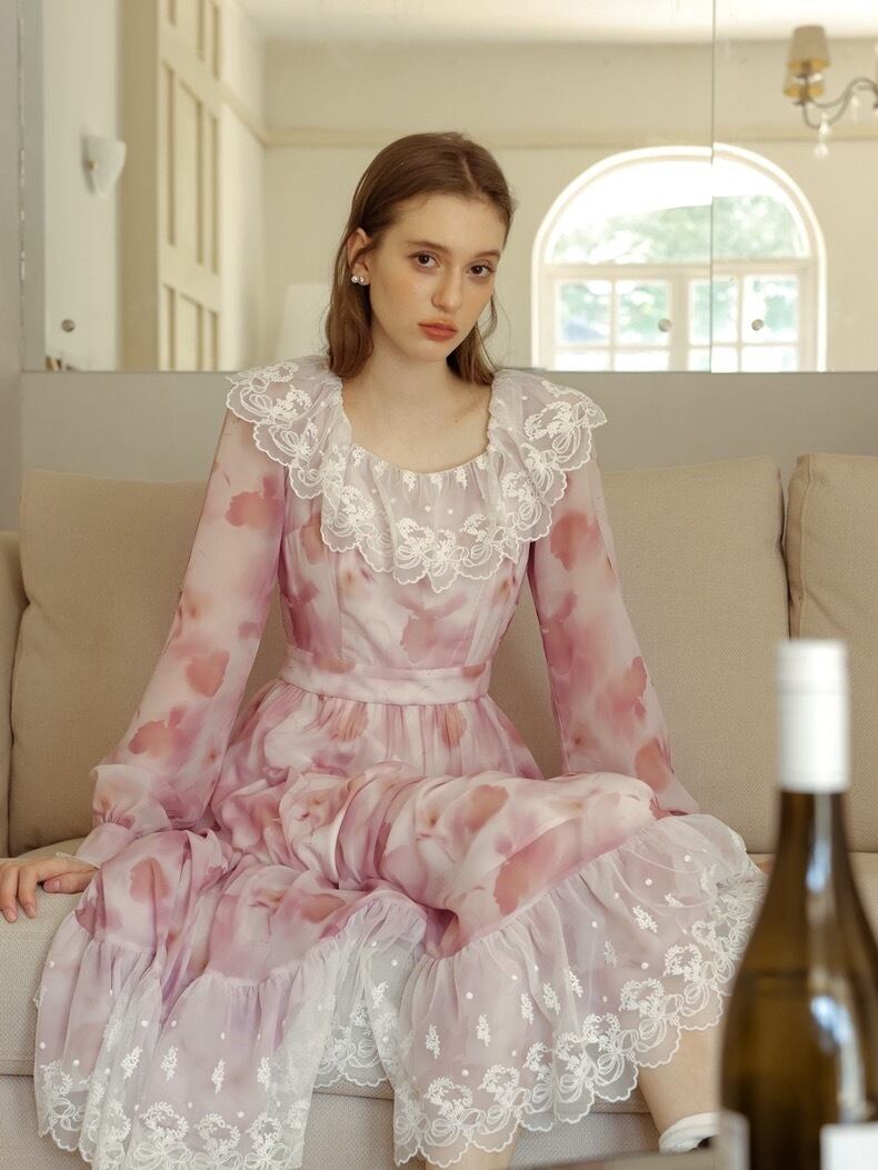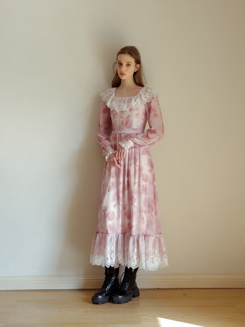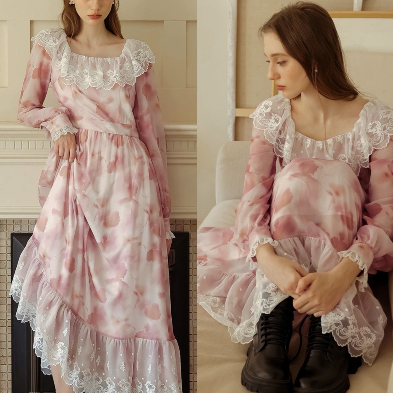 紫 グラデーション ピンク ワンピース マキシ ガーリー