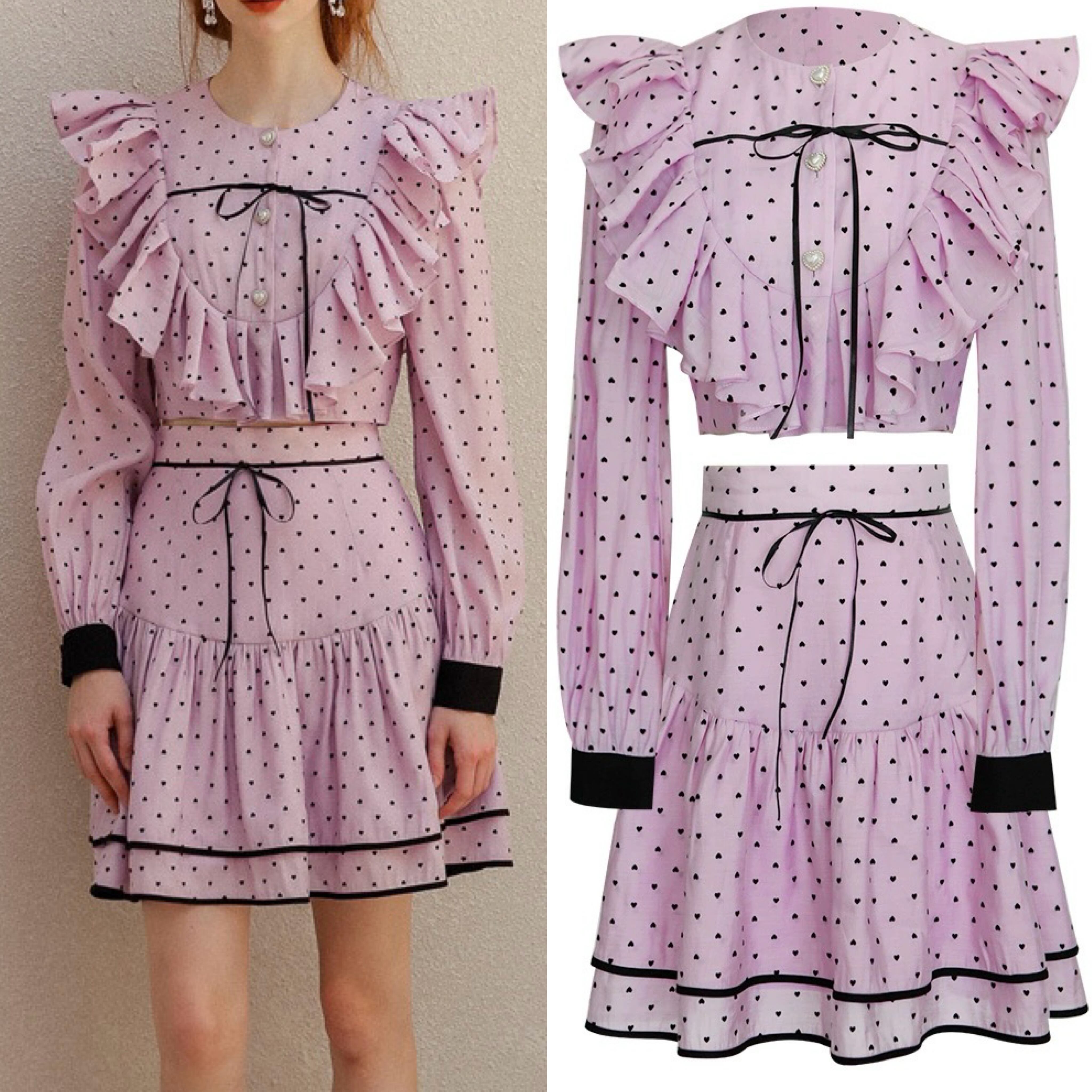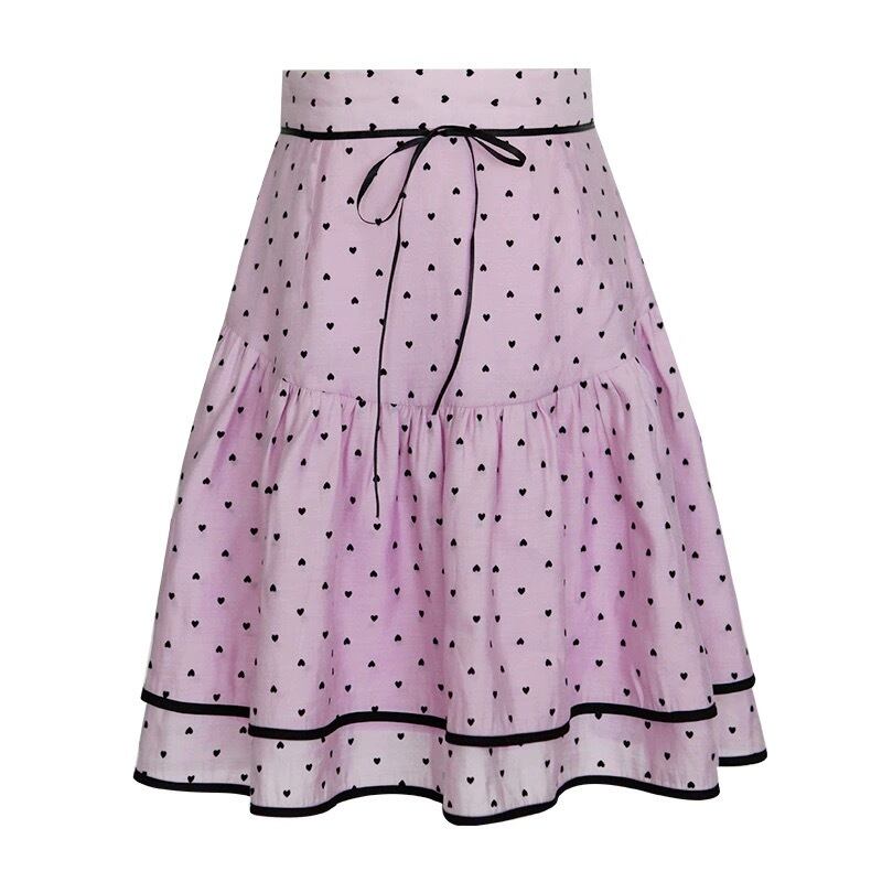 ピンク ガーリー ブラウス スカート ハート 水玉 ドット