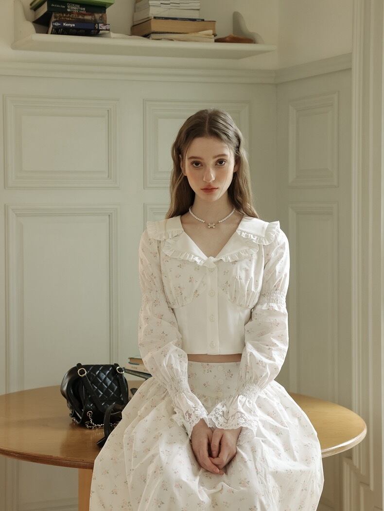 【ブラウス】白 ホワイト シャツ トップス ガーリー