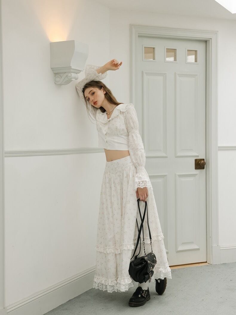 【スカート】シンプル 白 ホワイト ガーリー 可愛い ロング