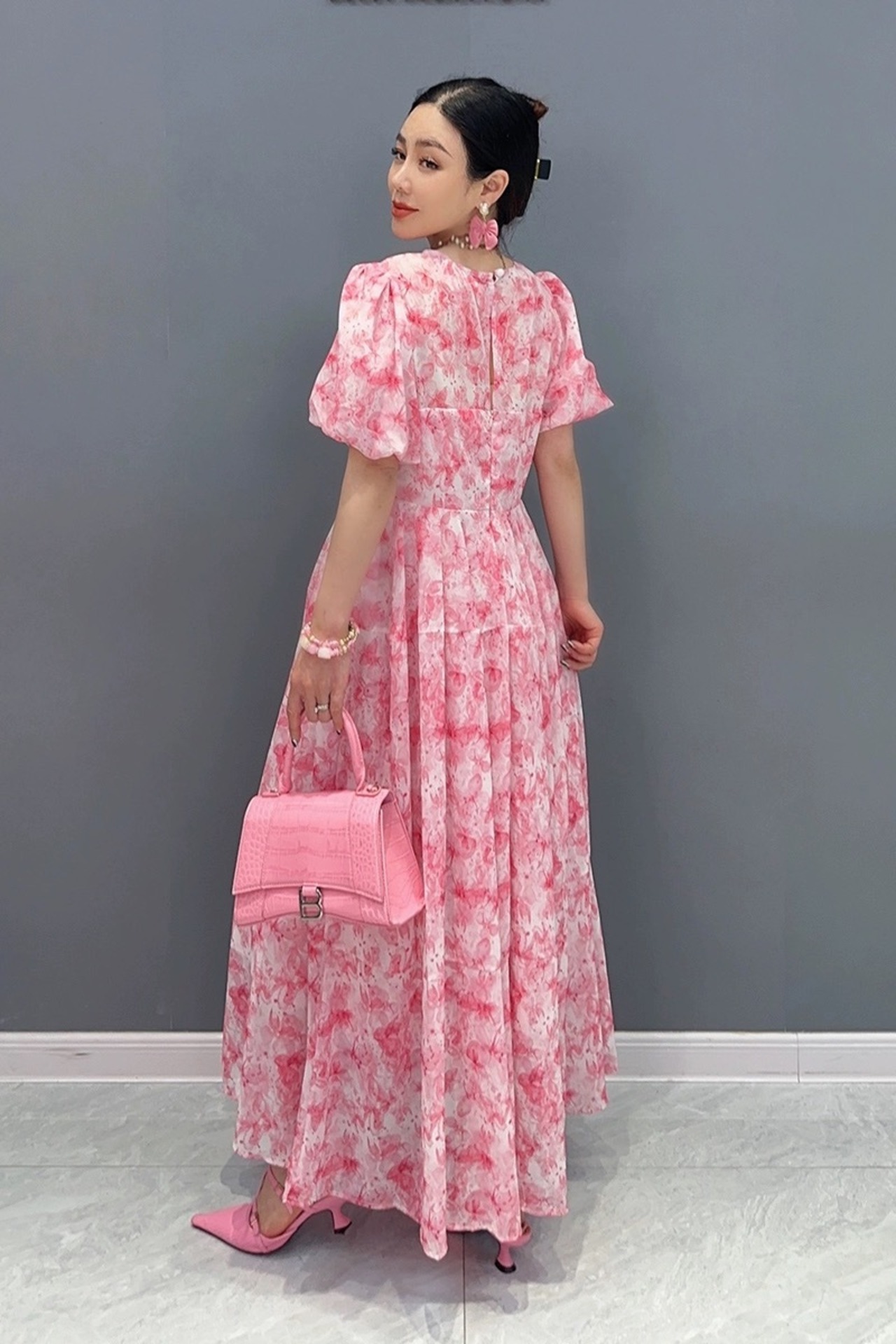 ピンク 花柄 フラワー エレガント XL ブラウス スカート