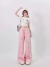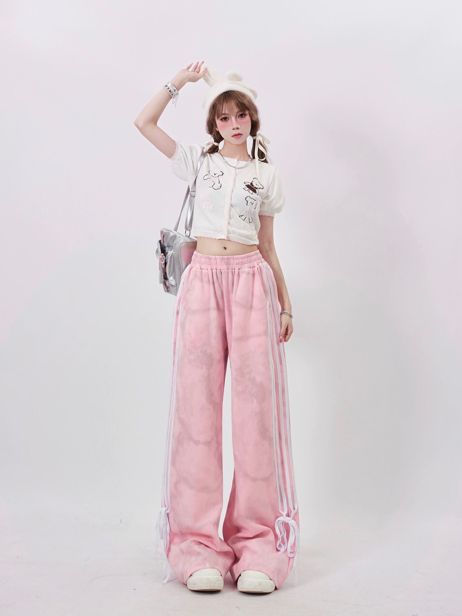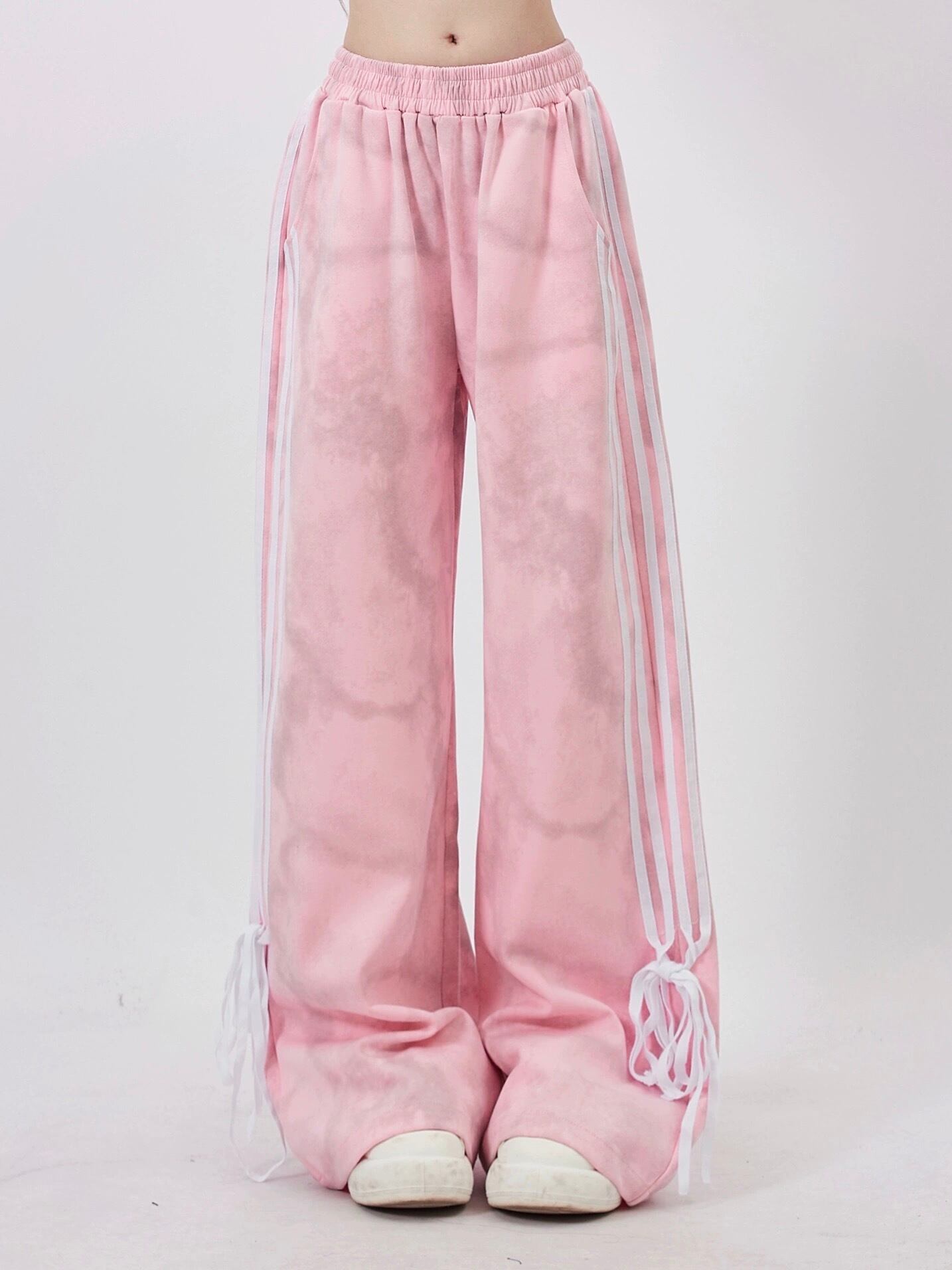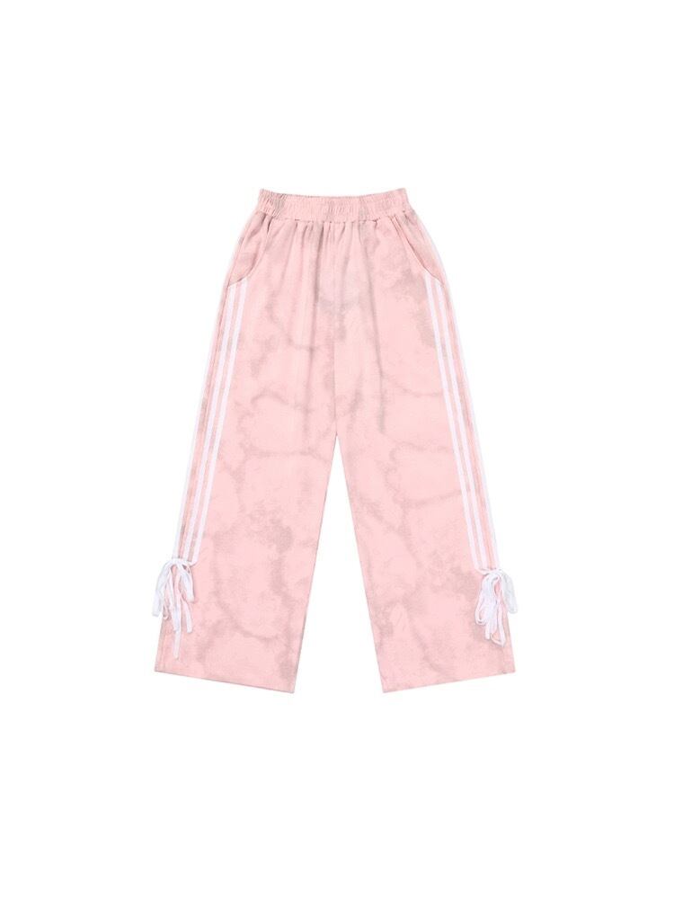 ピンク 白 ホワイト 黒 グレー スウェット XL リボン XL カジュアル ガーリー ボトムス パンツ 運動 ジム 原宿 可愛い ルームウェア