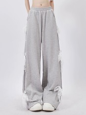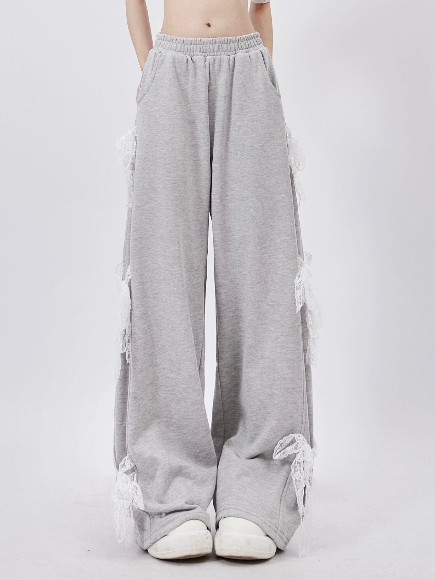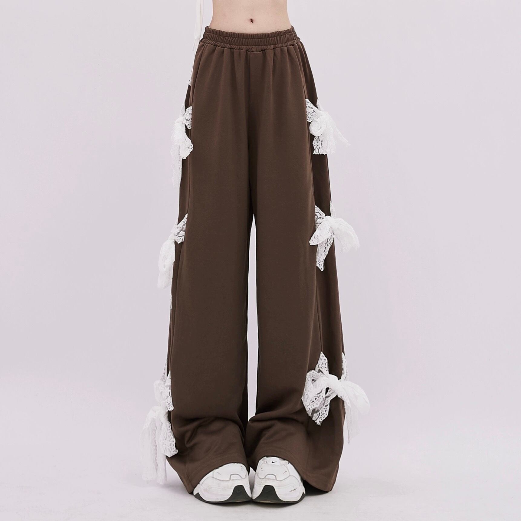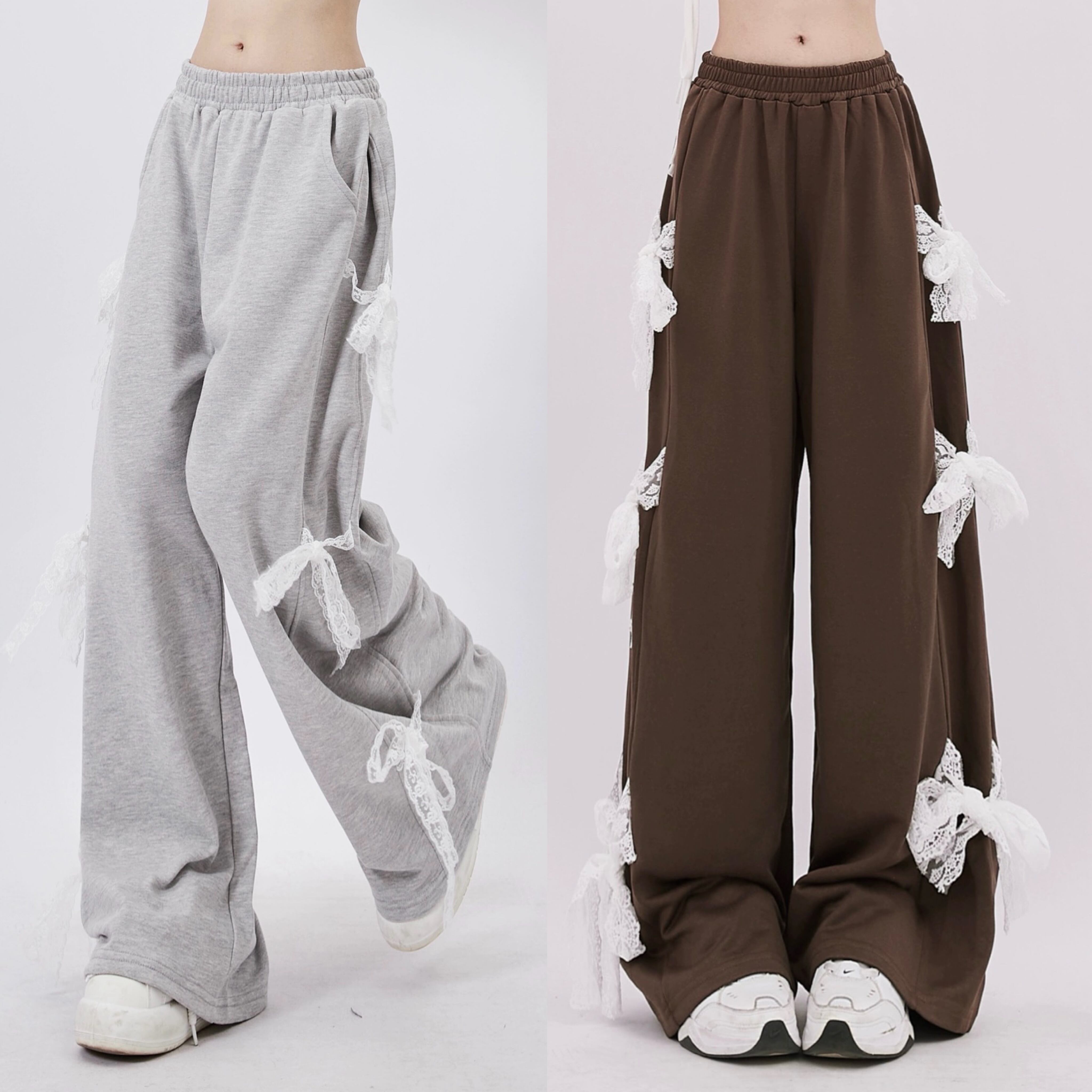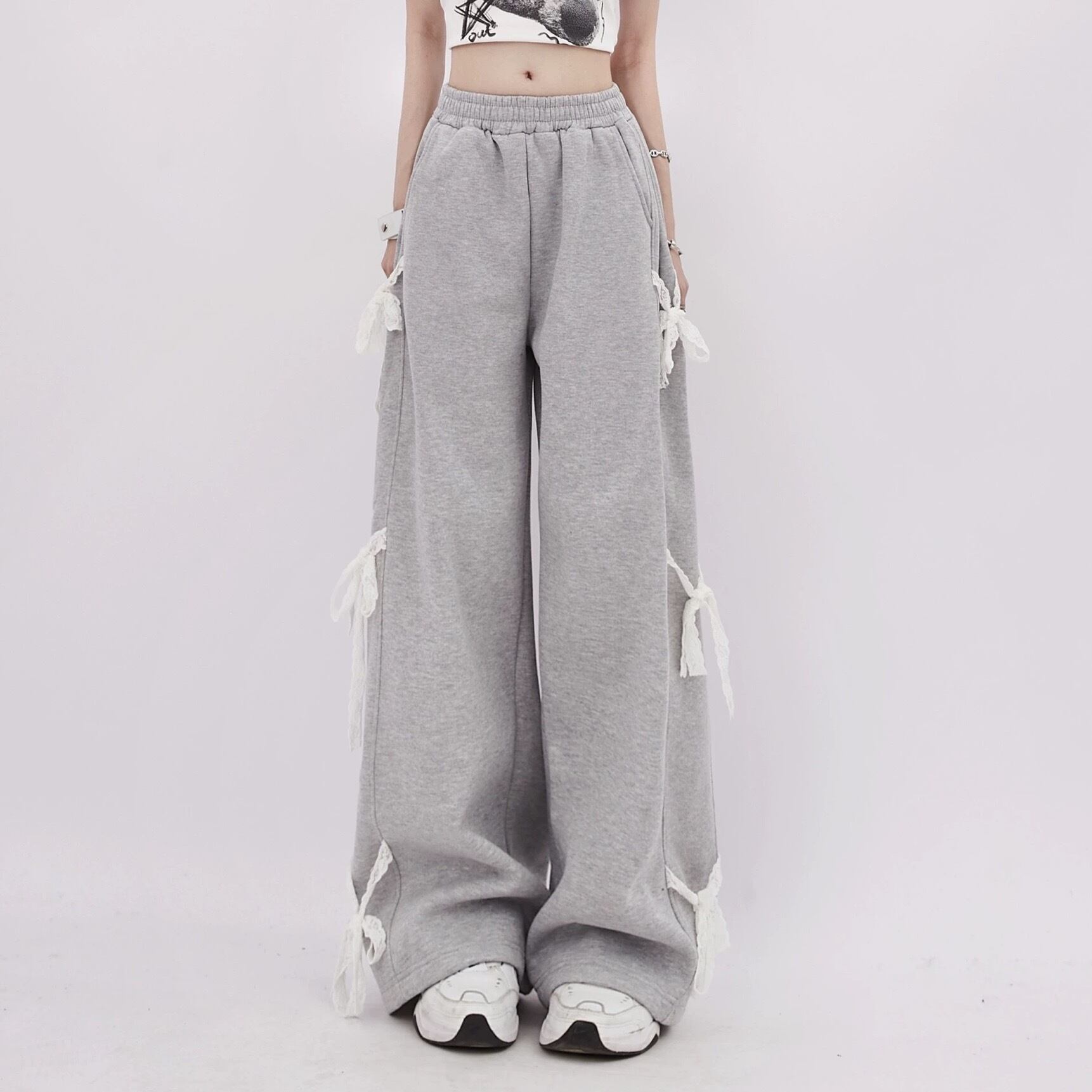 茶色 グレー ピンク 白 ホワイト 黒 グレー スウェット XL リボン XL カジュアル ガーリー ボトムス パンツ 運動 ジム 原宿 可愛い ルームウェア