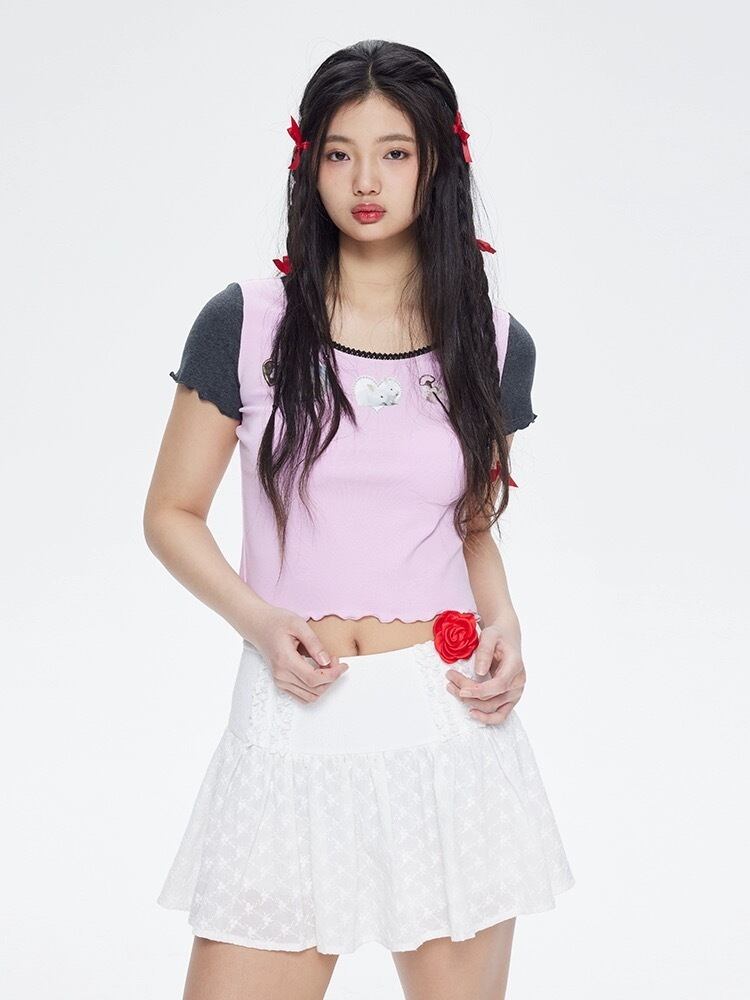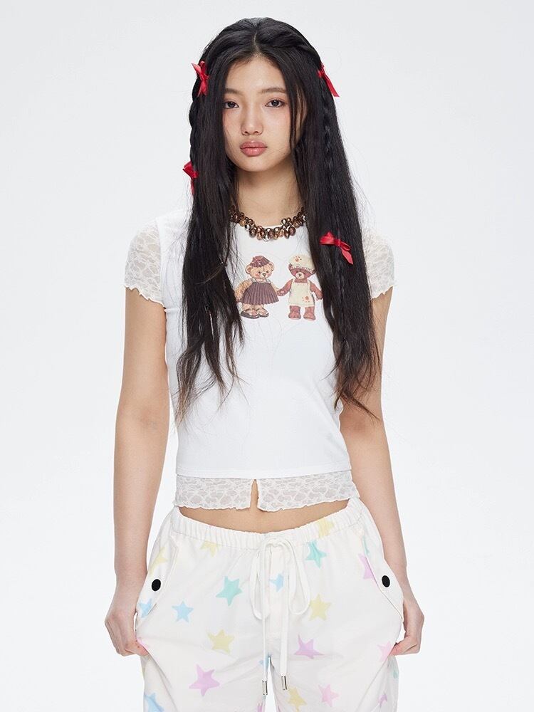 トップス ガーリー Tシャツ ブラウス タンクトップ くま 紫 可愛い ハート 黒 白 リボン