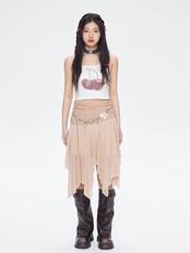 茶色 ベージュ ヌーディー スカート ボトムス エスニック