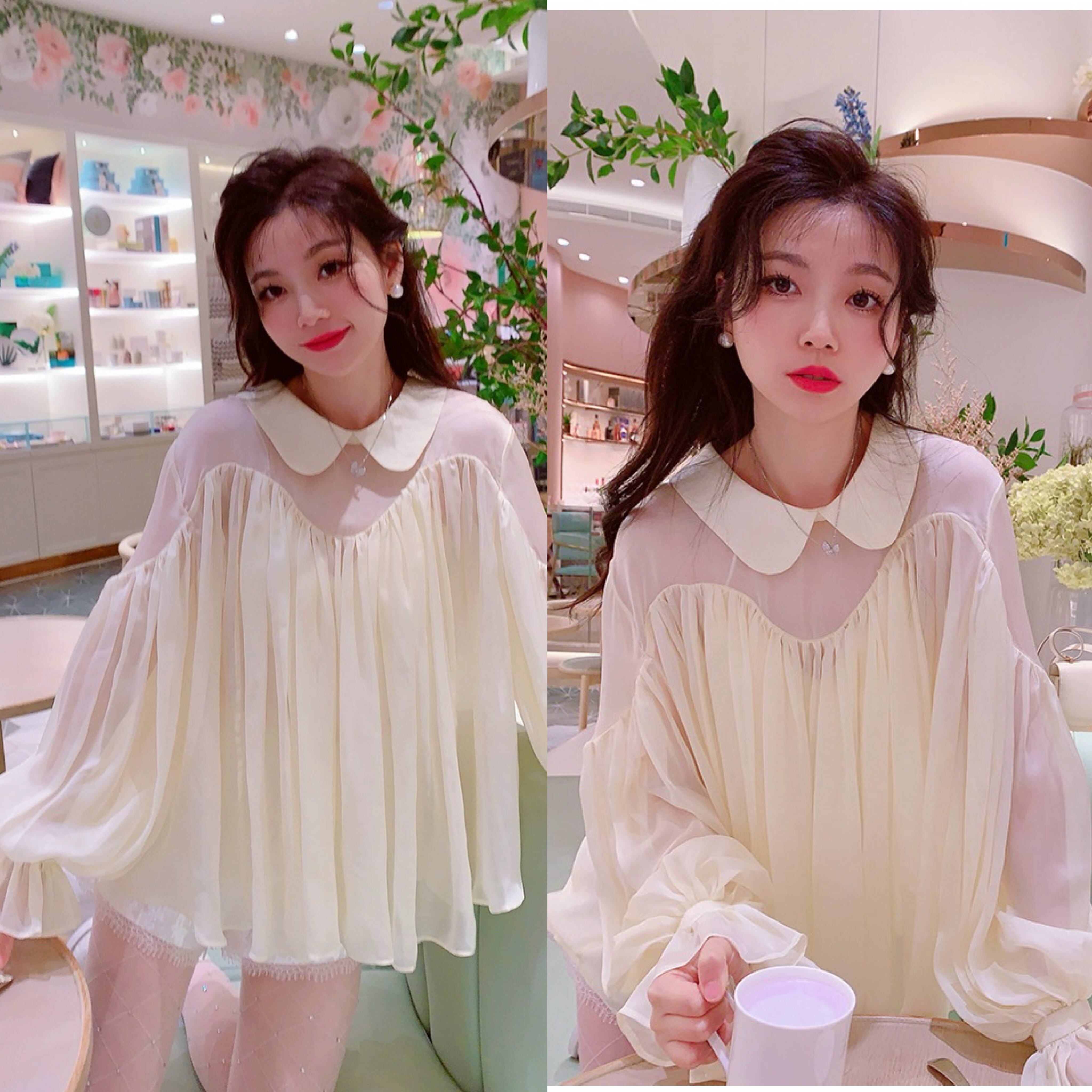 黄色 ブラウス ガーリー トップス エレガント