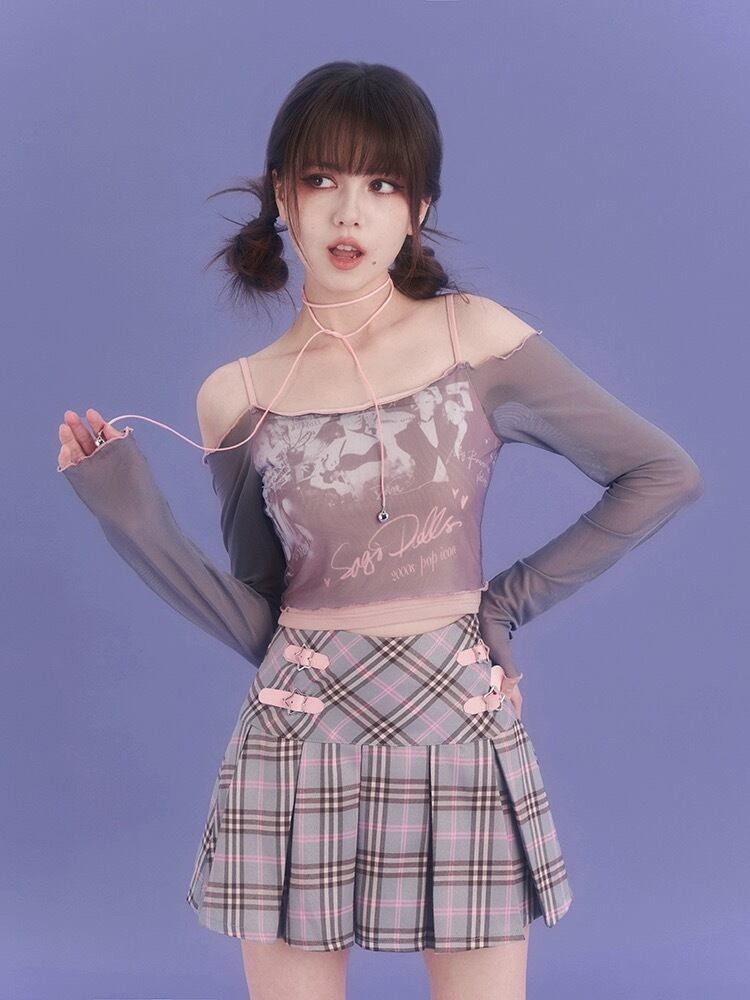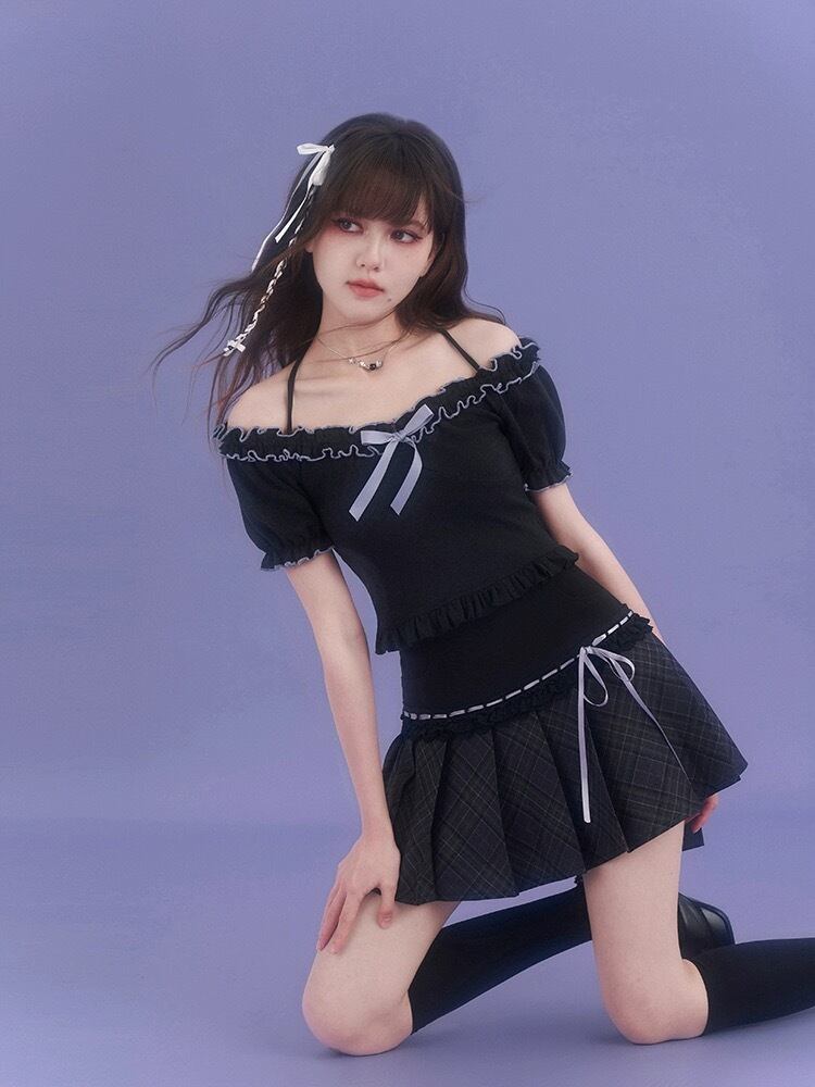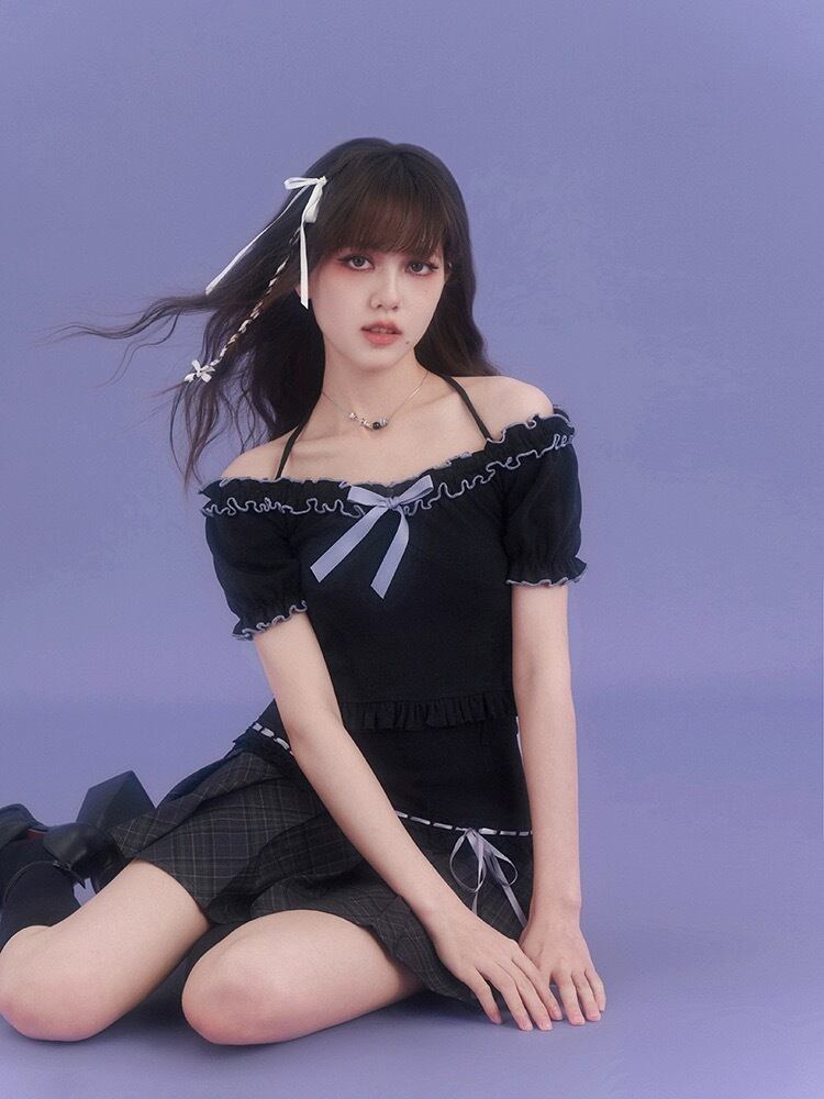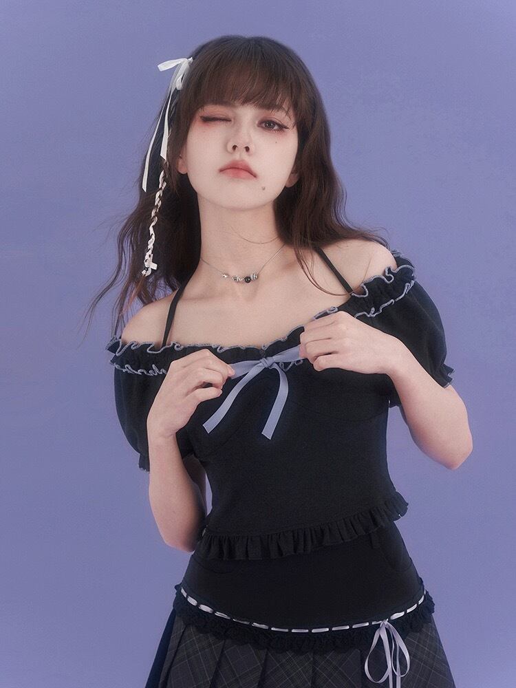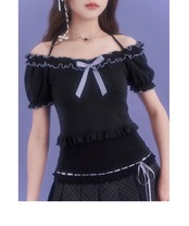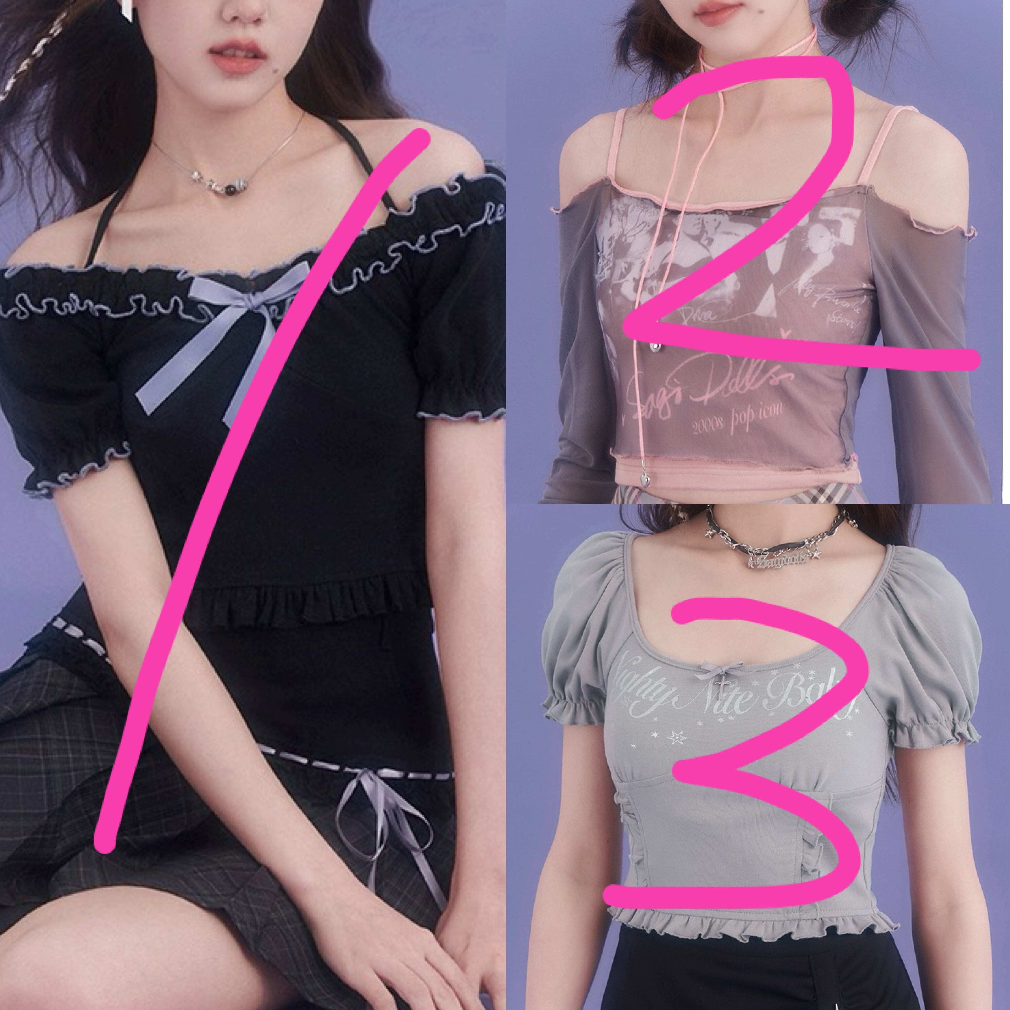 カジュアル グレー ピンク リボン ブラウス 紫色 グレー
