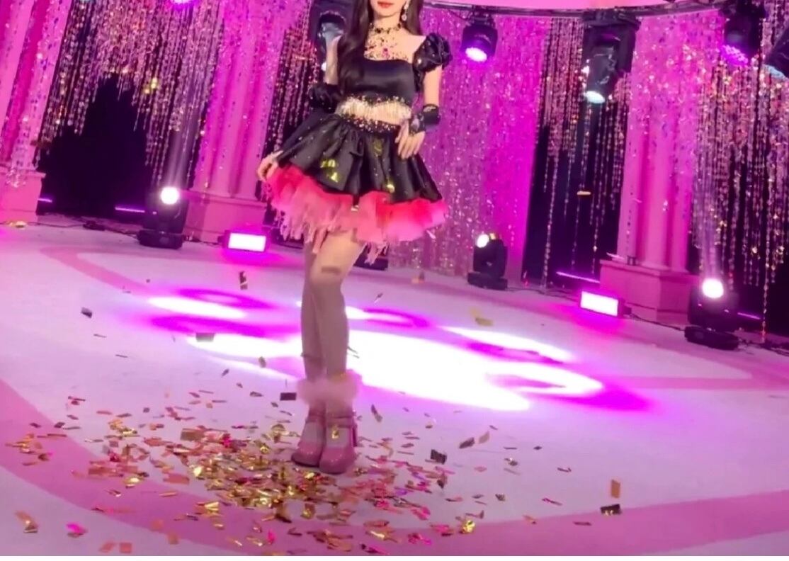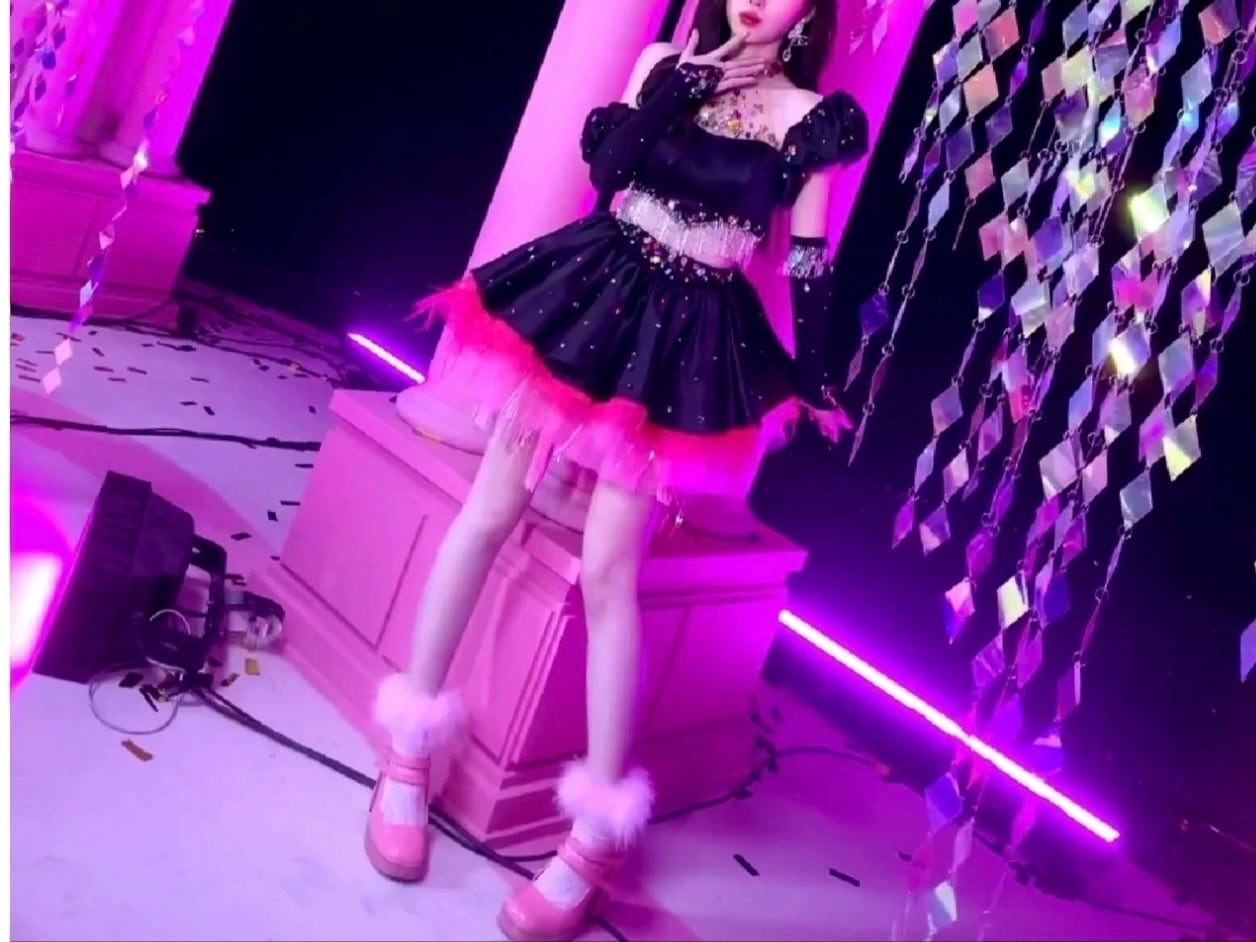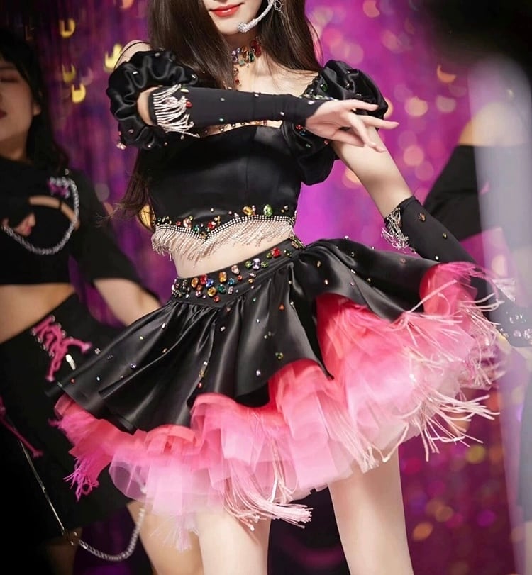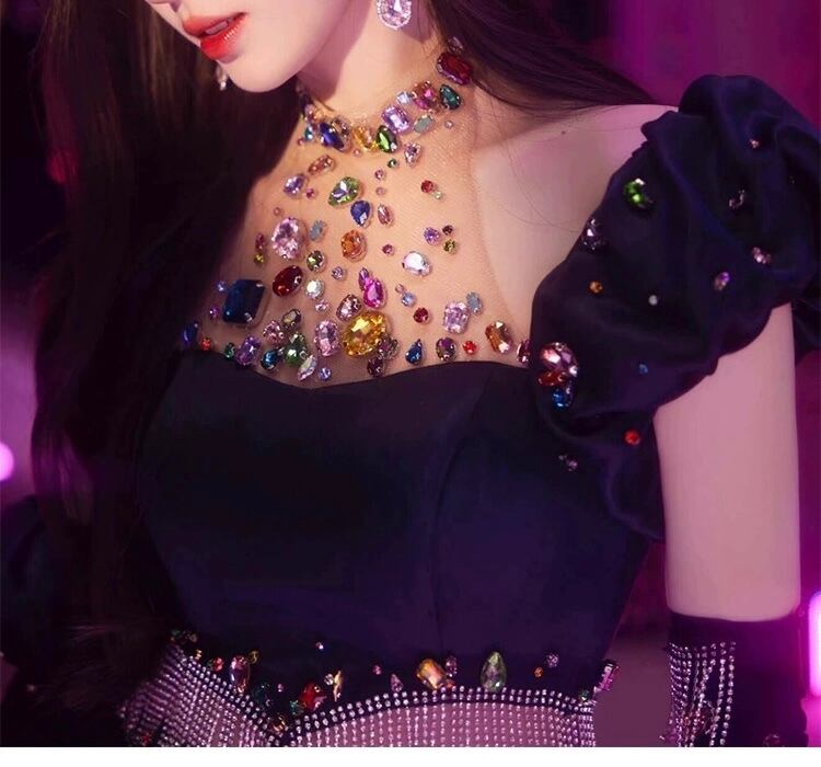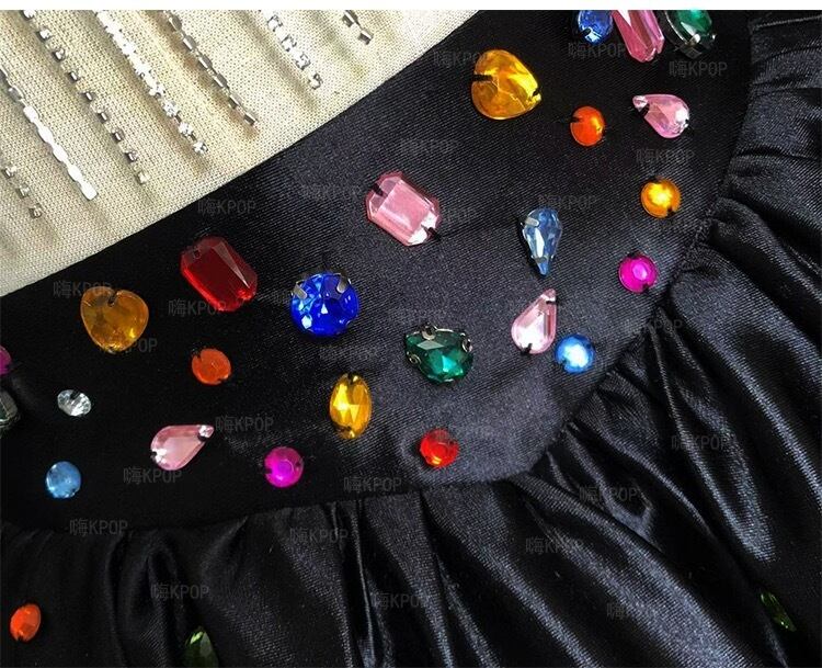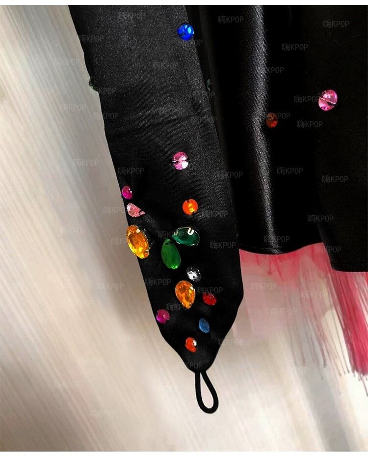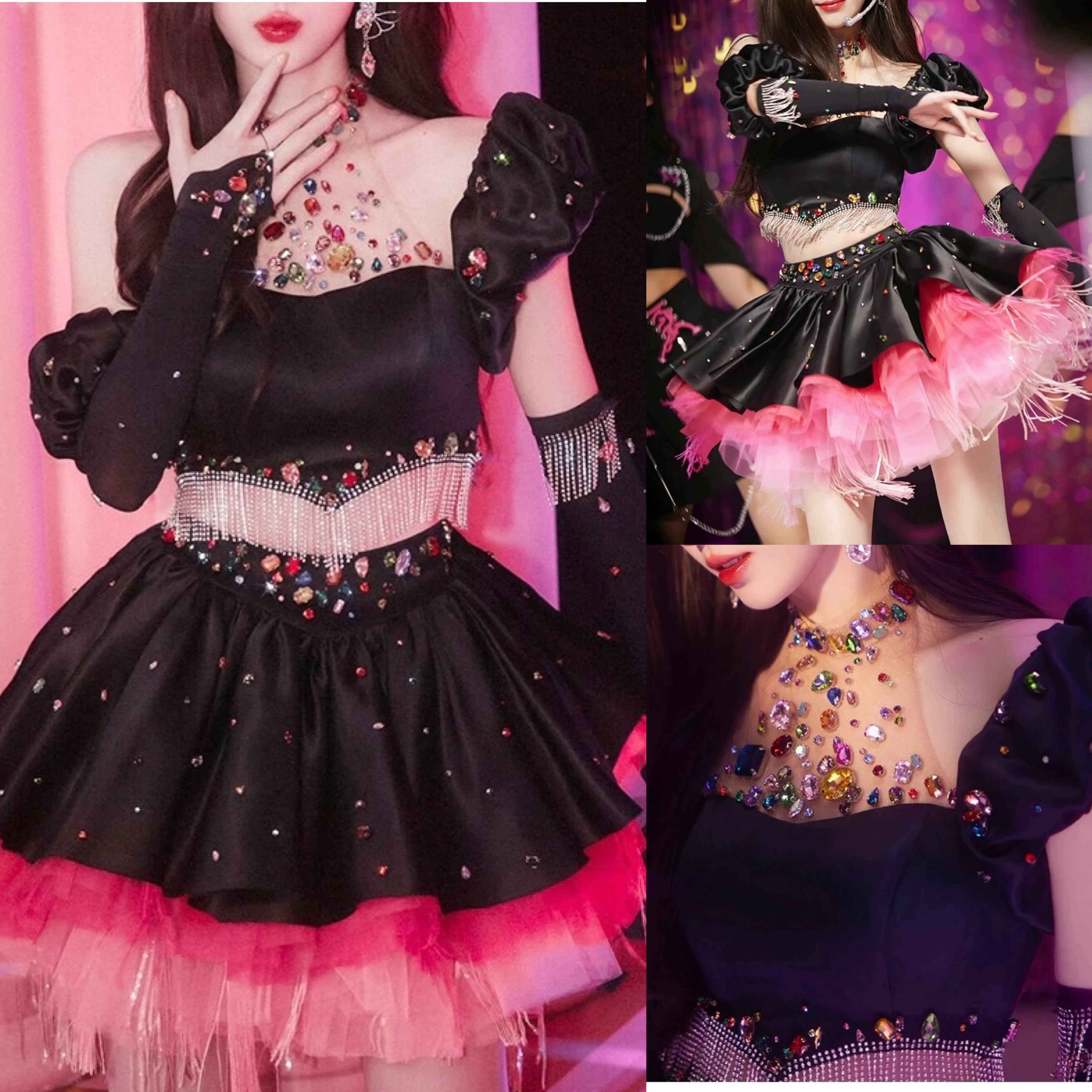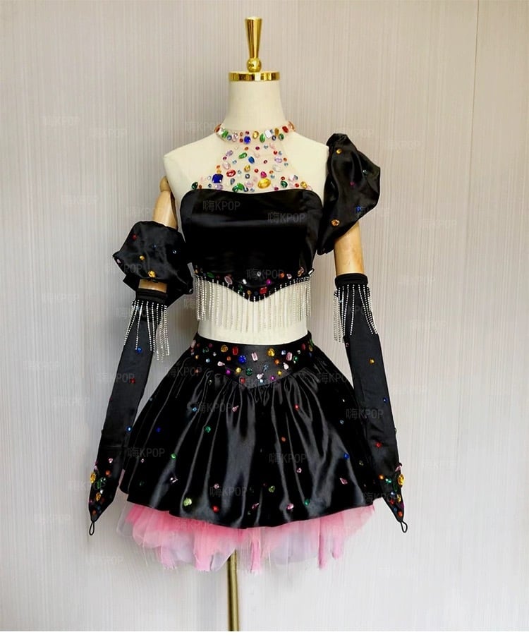 【手袋・セットアップ】黒 ピンク スカート ラインストーン カラフル ドレス デコレーション 黒 ミニスカート パーティー 衣装