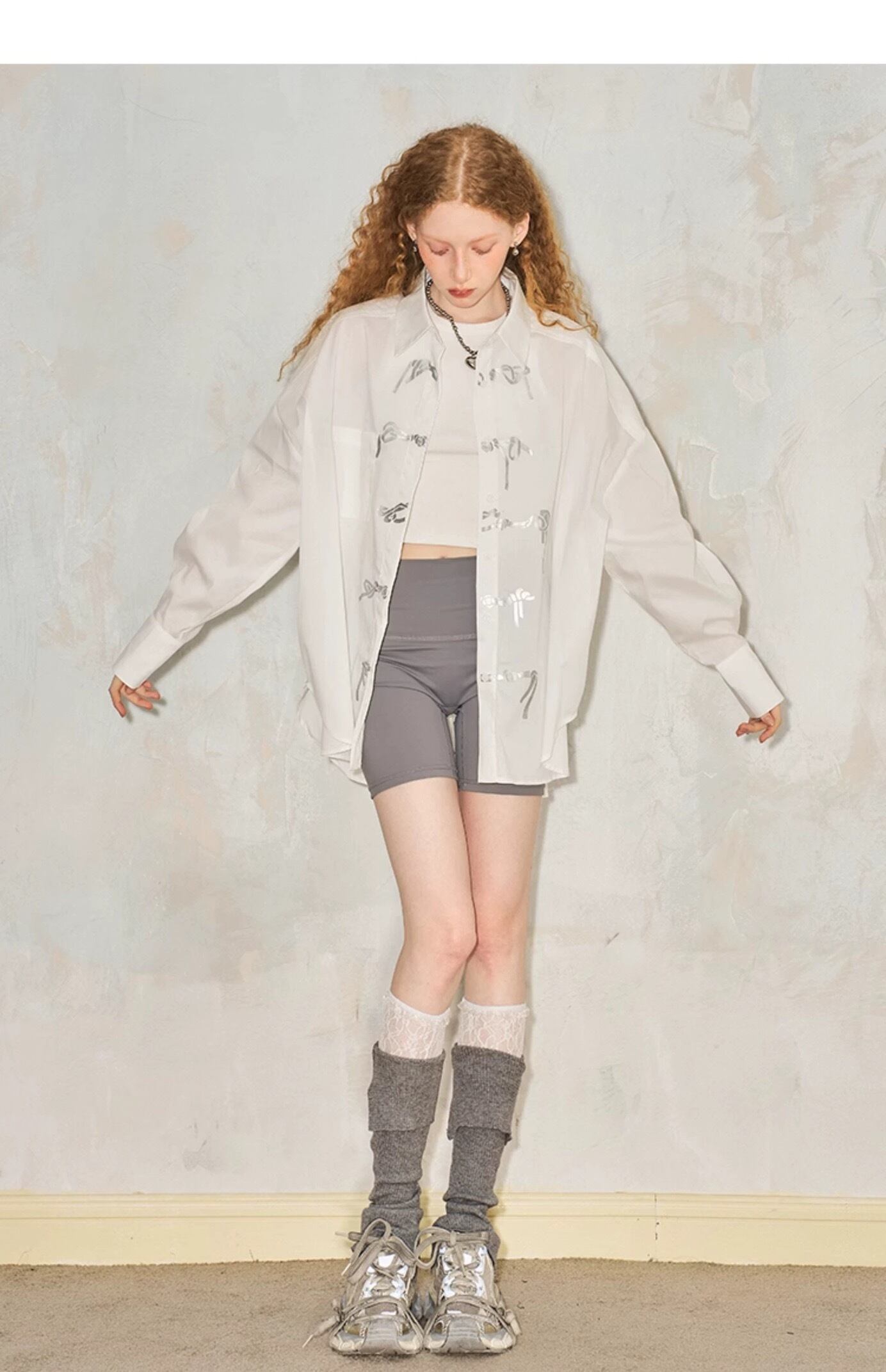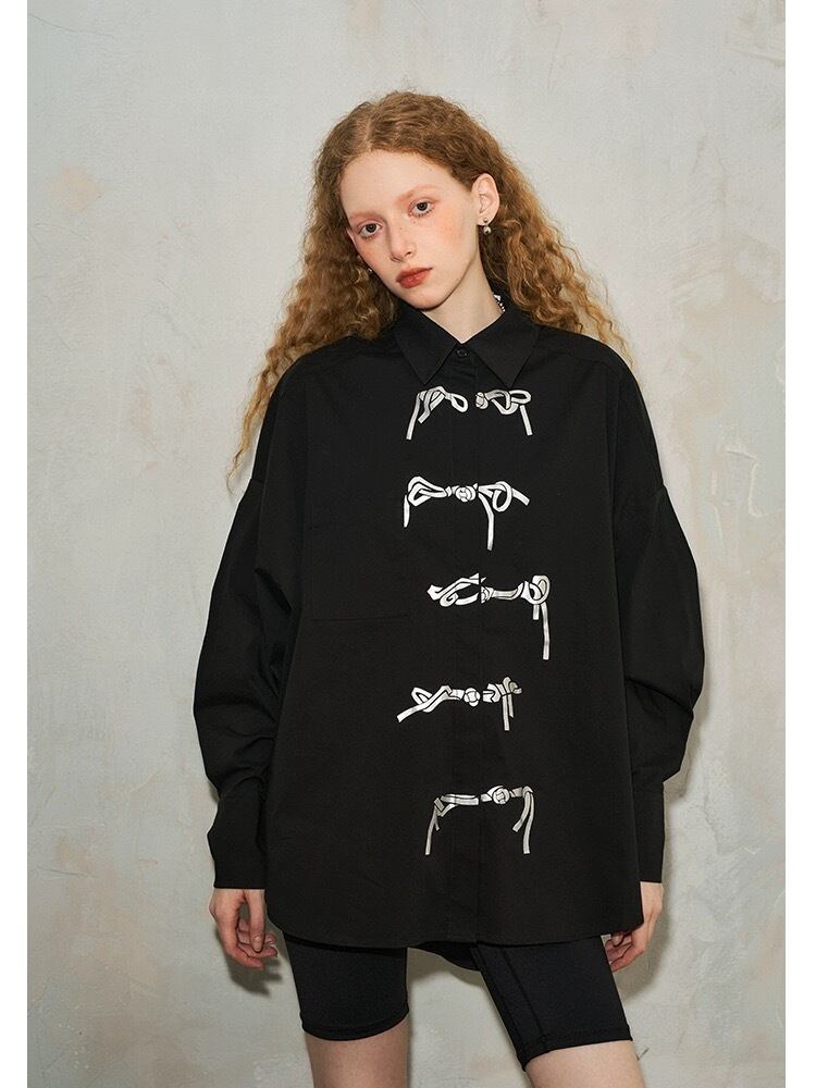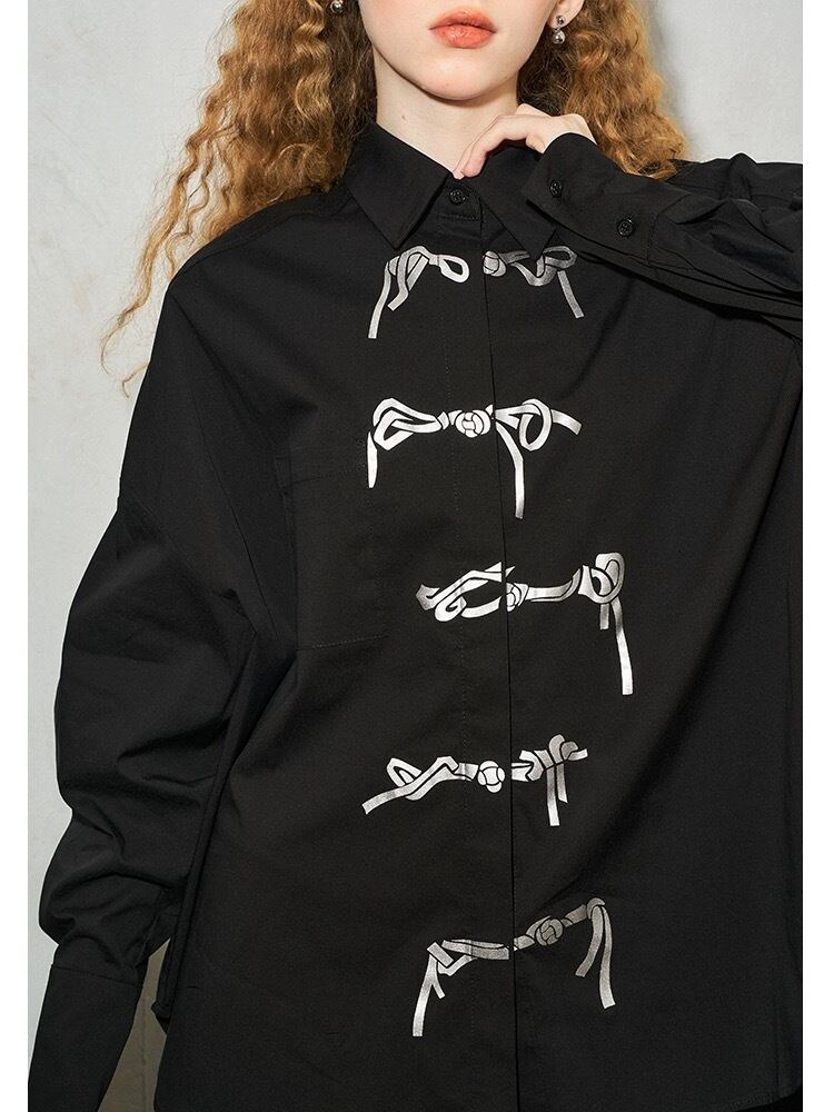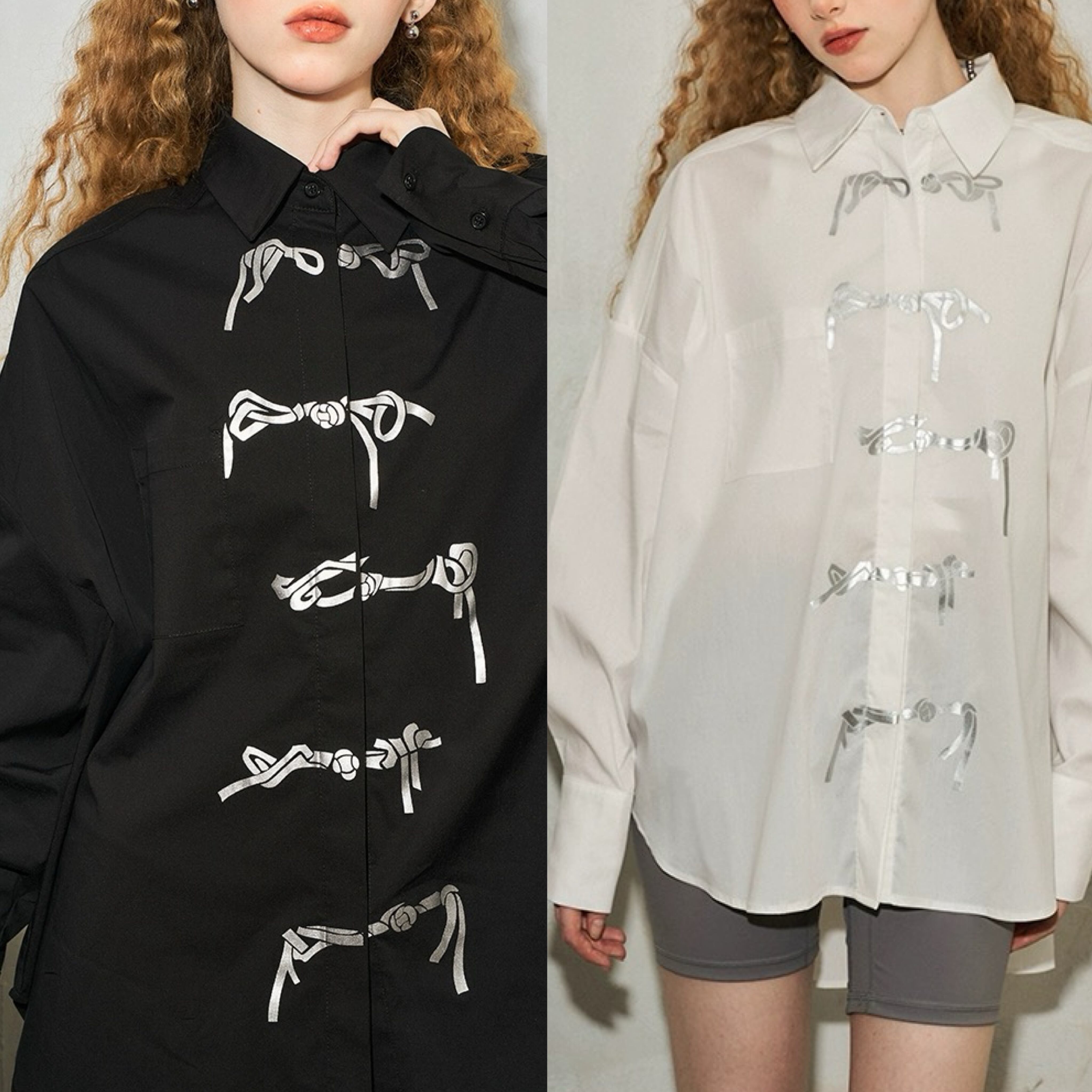 ブラウス シャツ 白 黒 リボン シルバー トップス