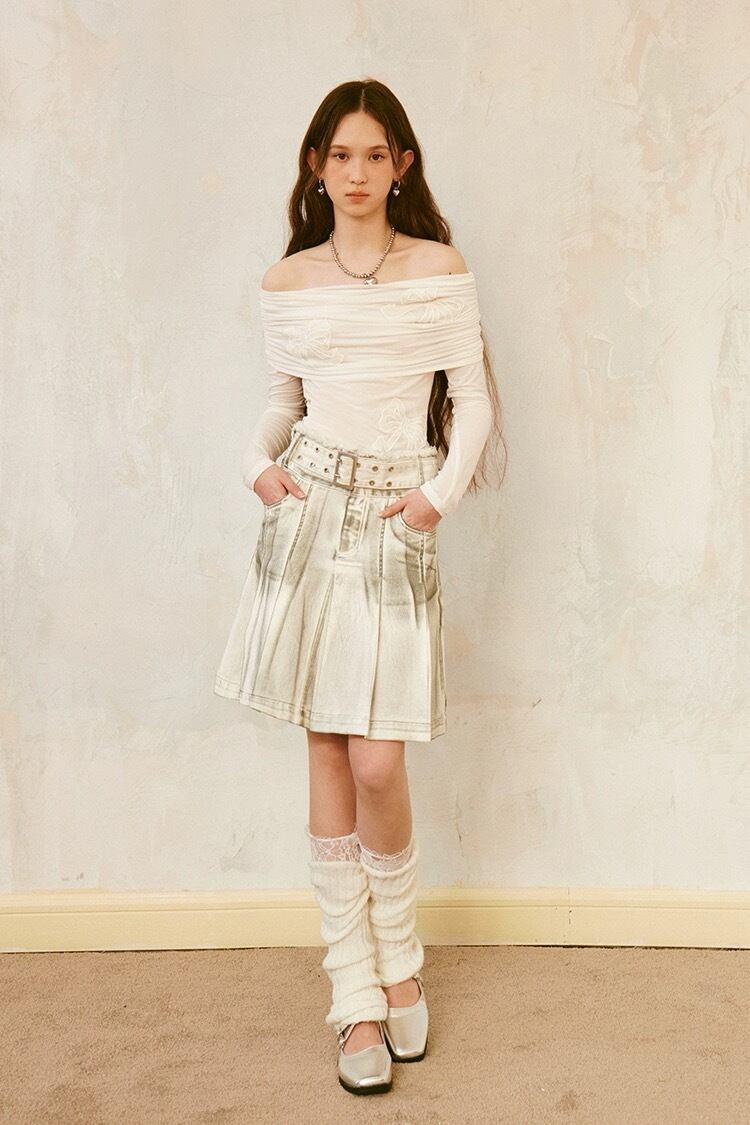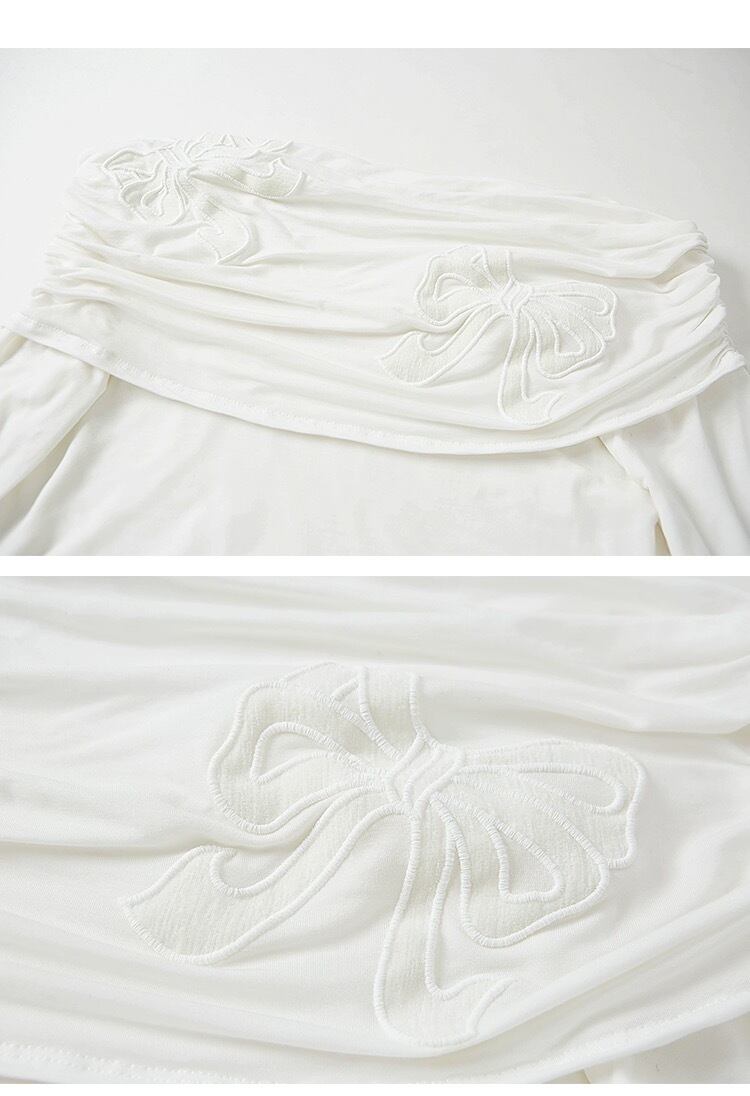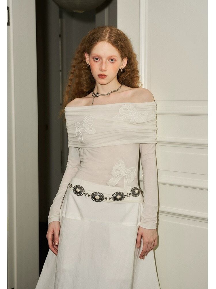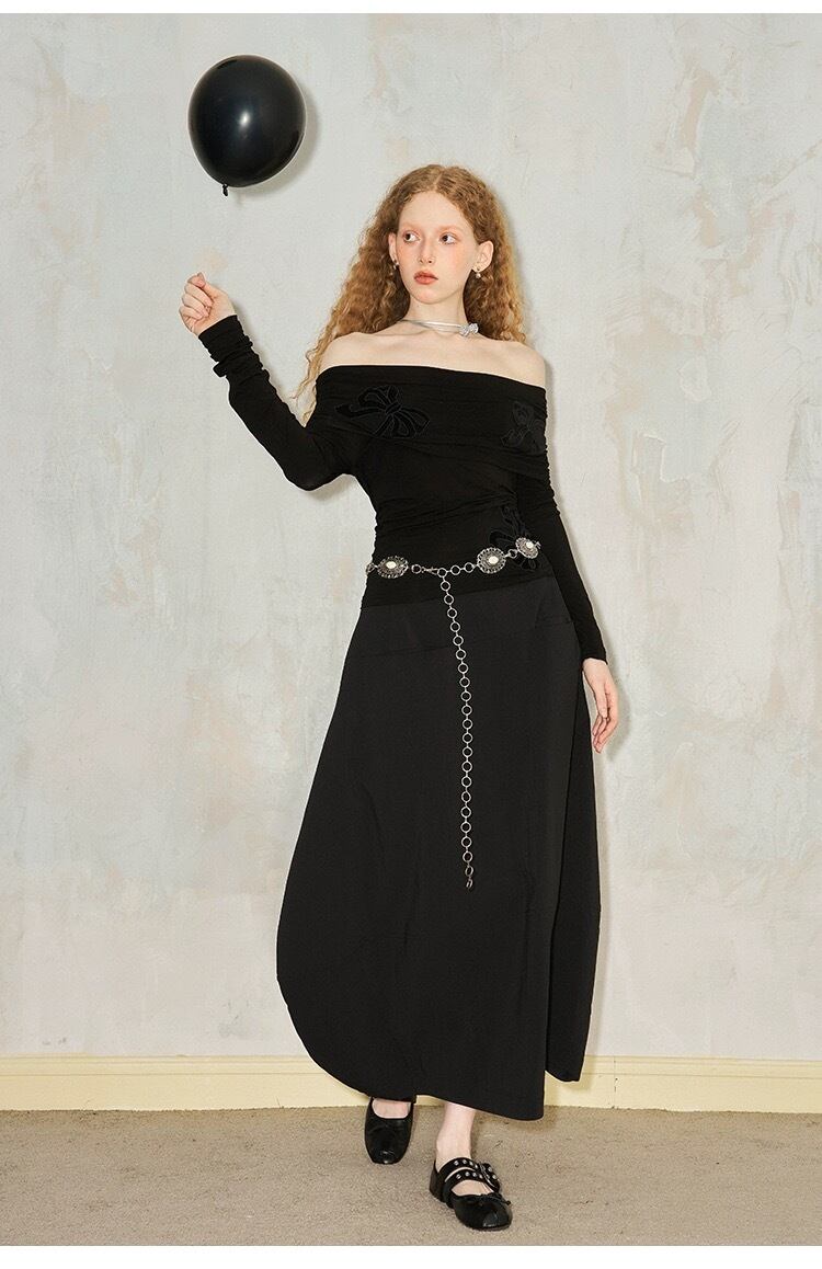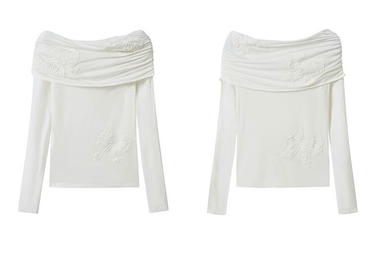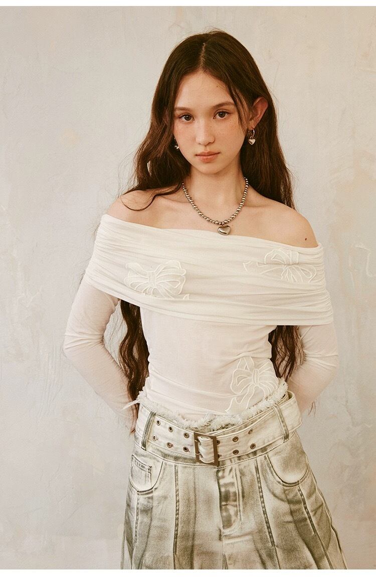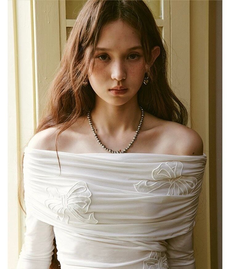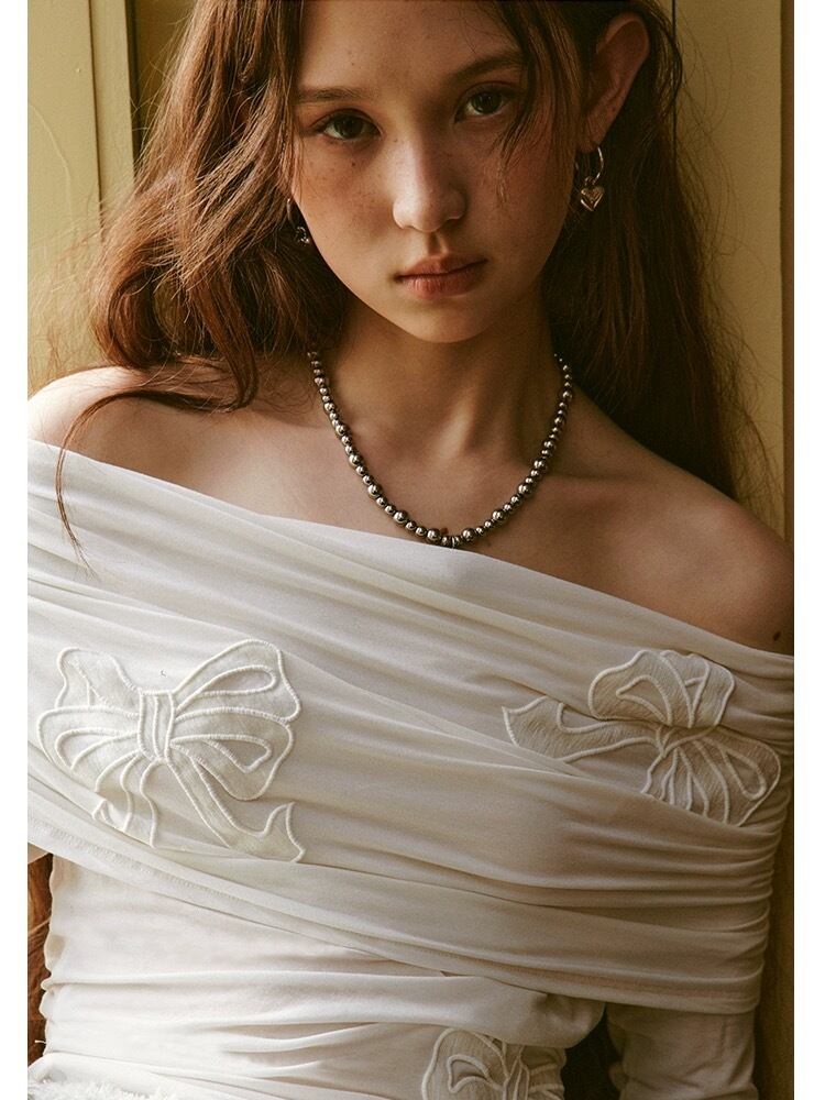 オフショルダー 黒 白 ブラウス ガーリー リボン トップス