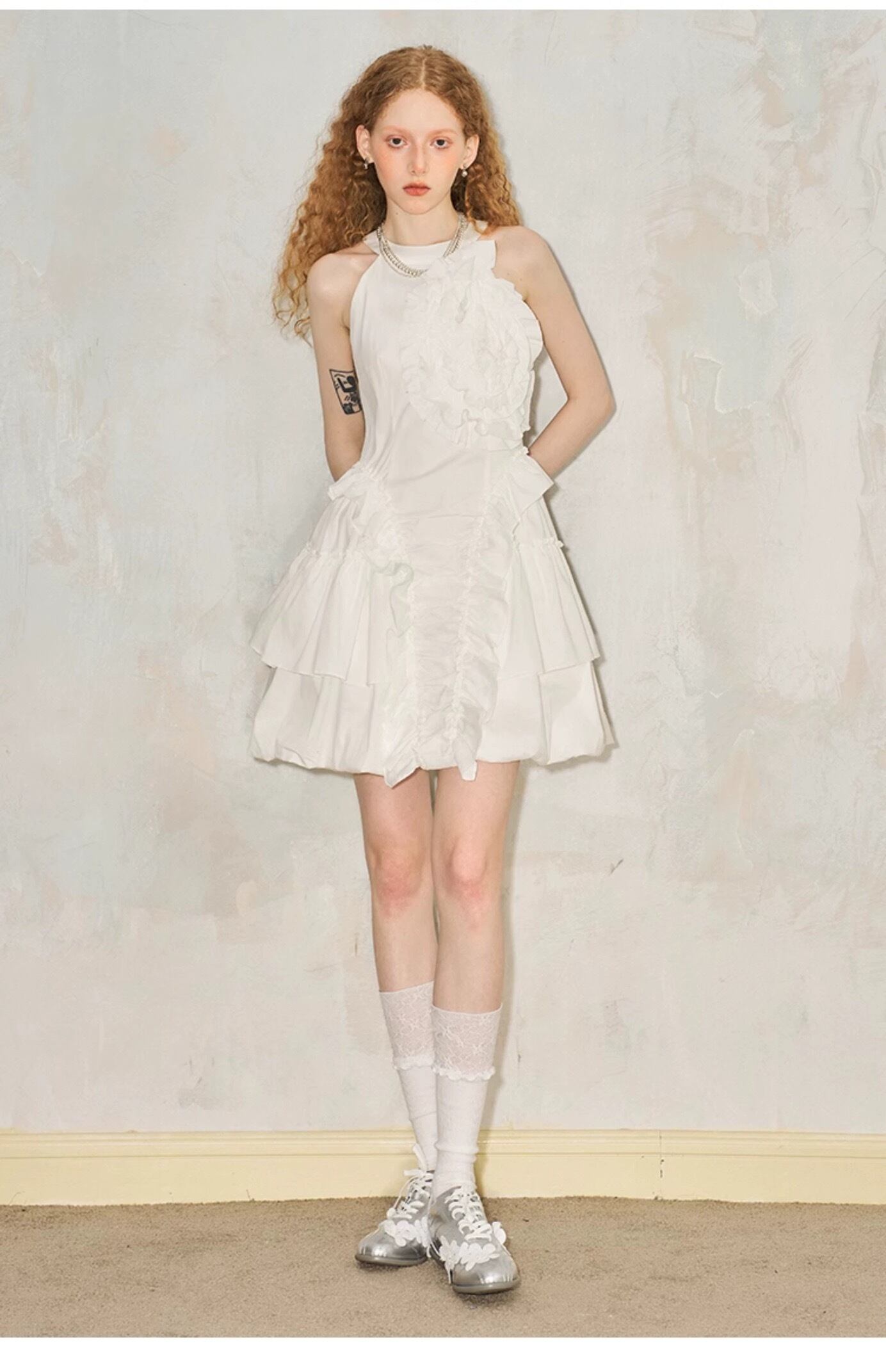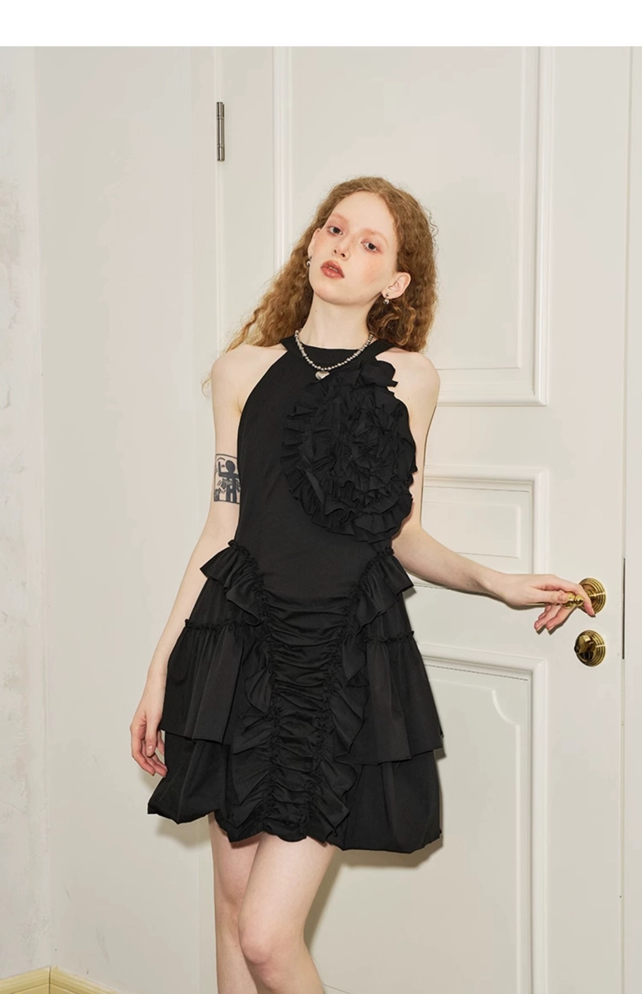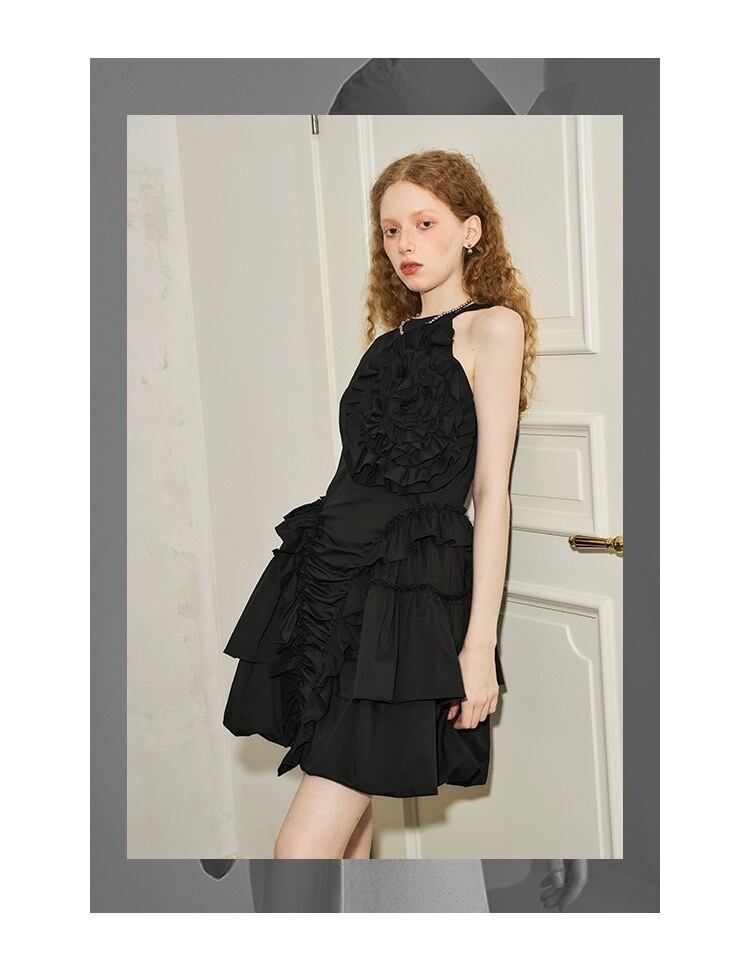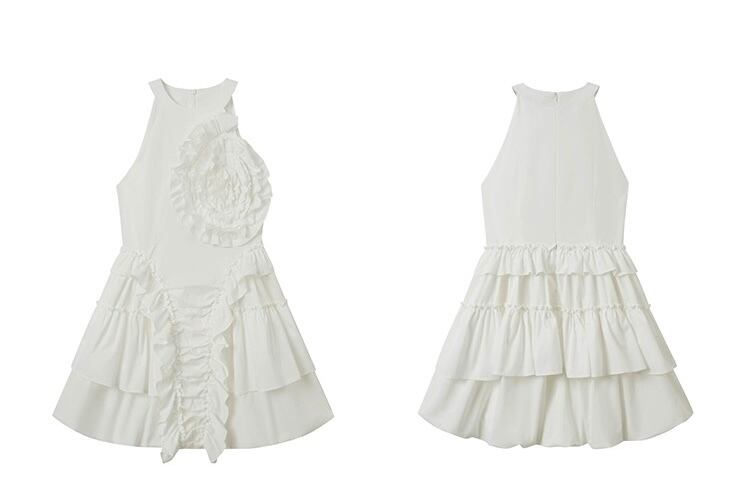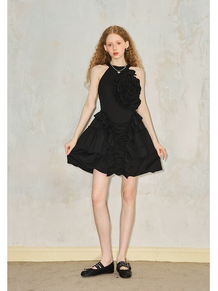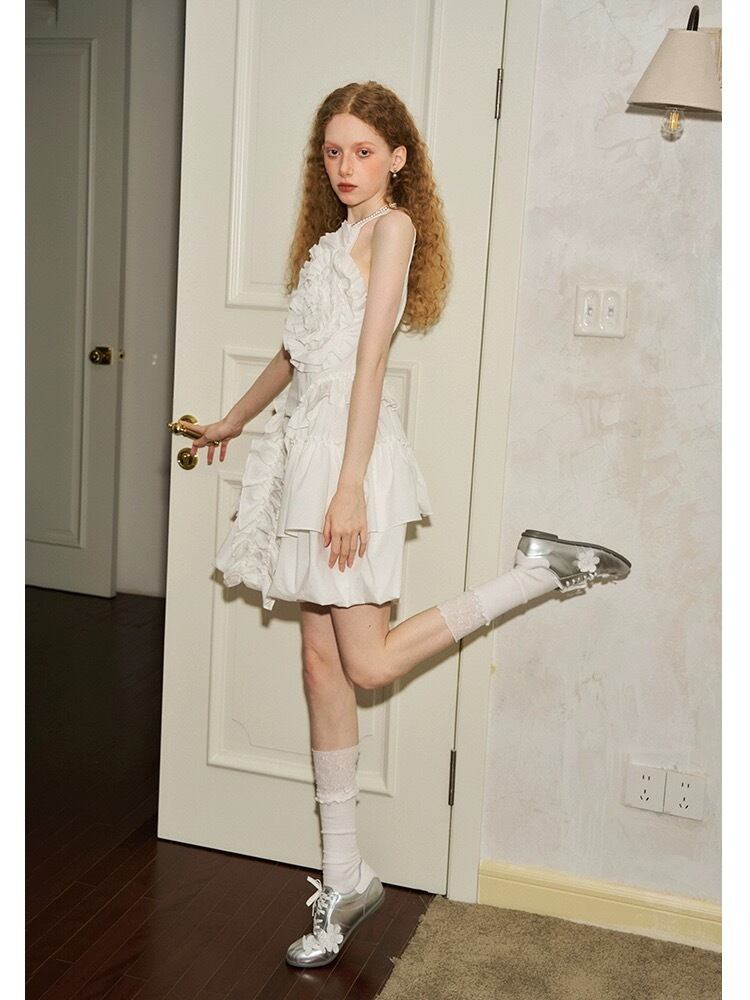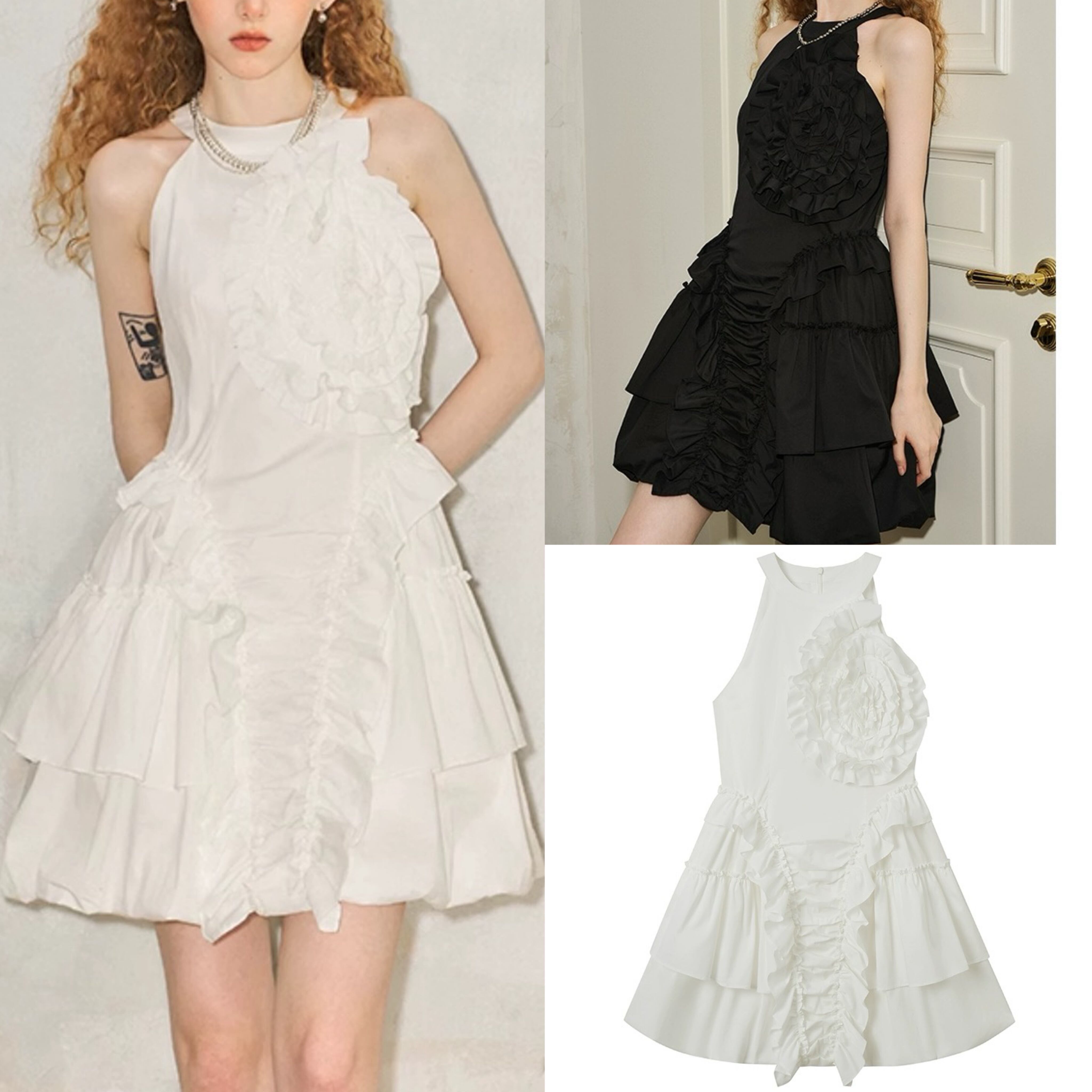 白 黒 フリル 花柄 ワンピース 可愛い ガーリー
