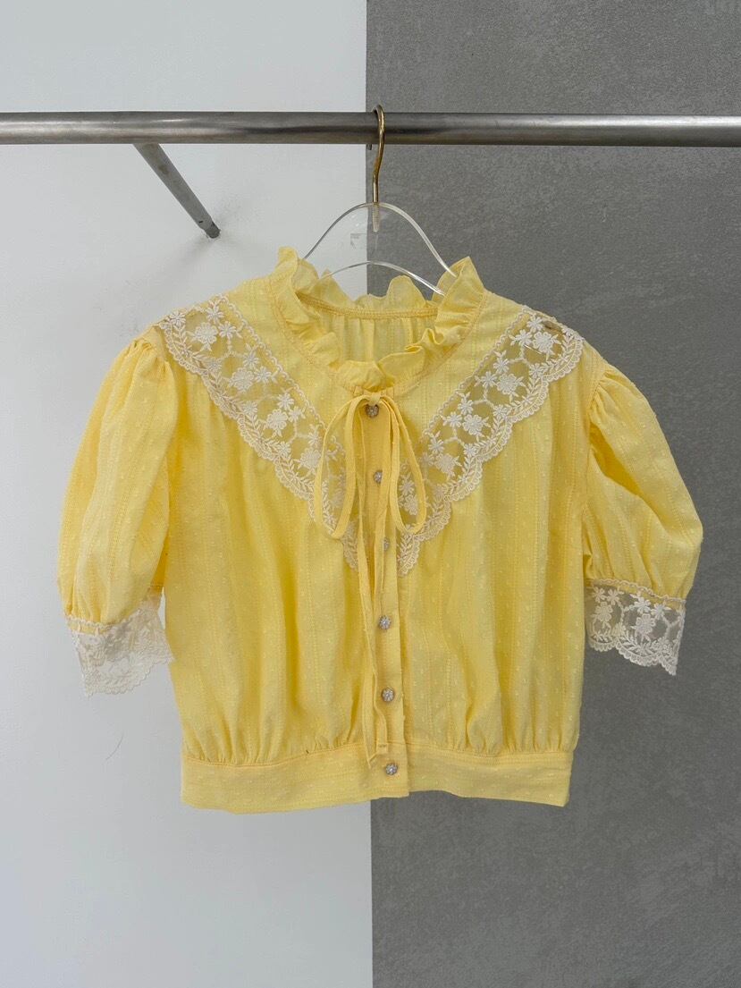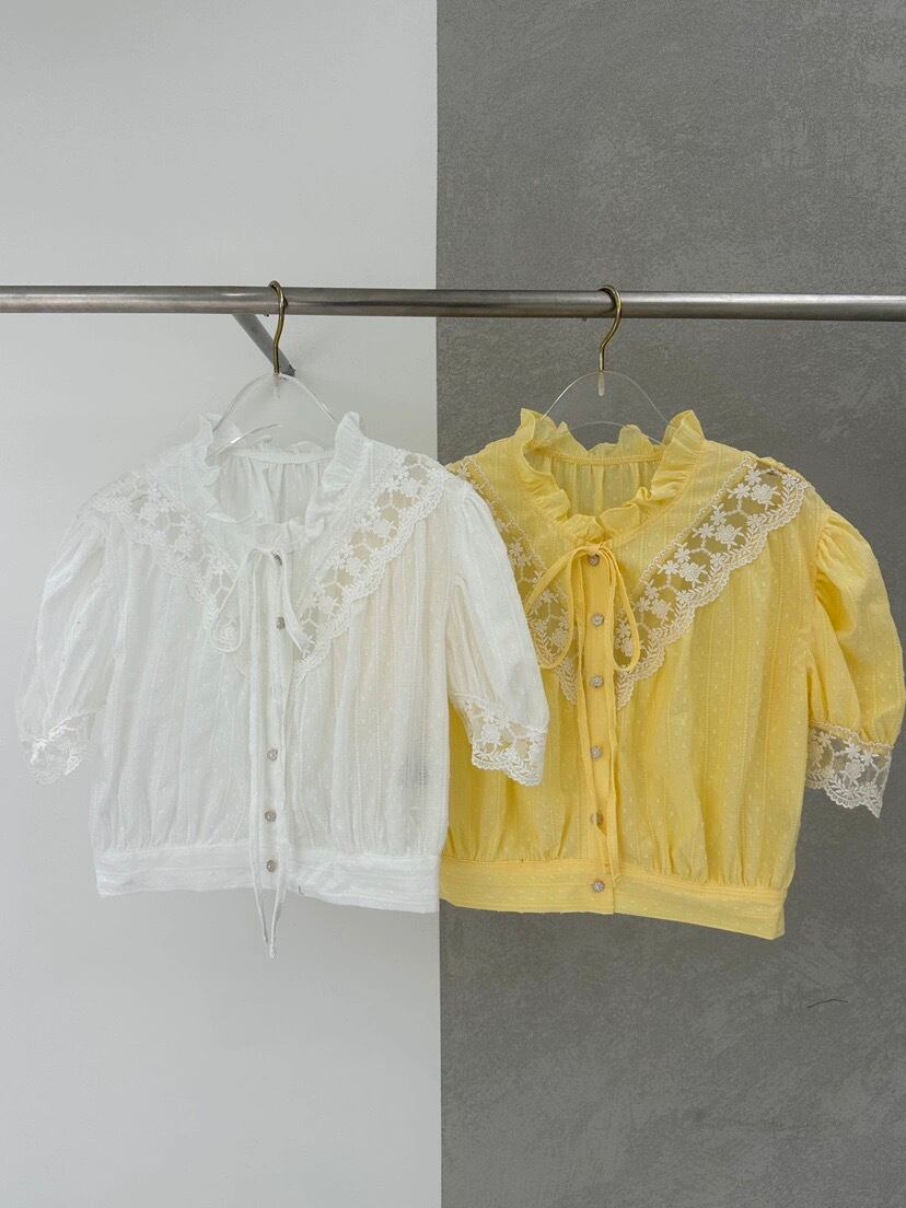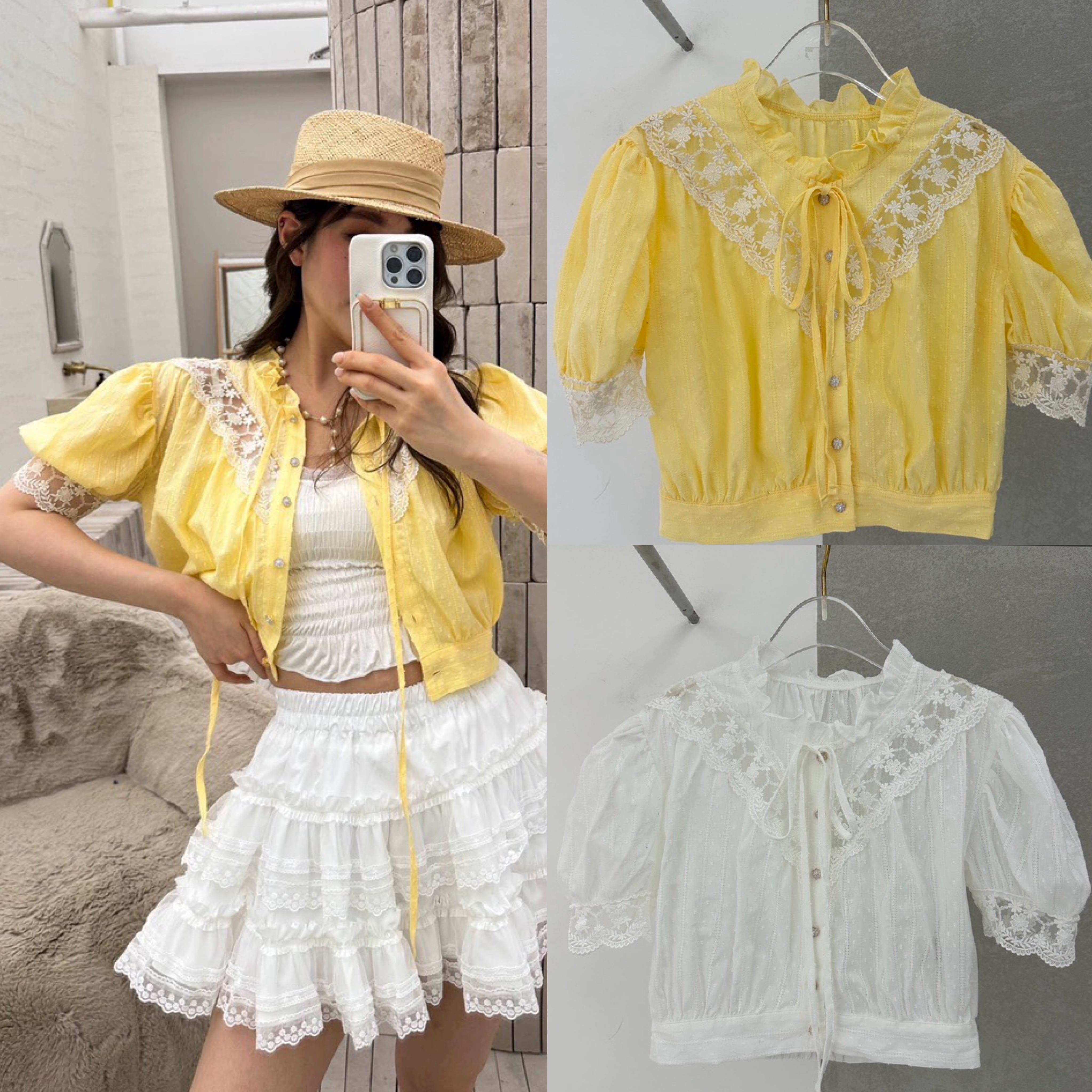 ブラウス 白 黄色 リボン トップス リボン 爽やか