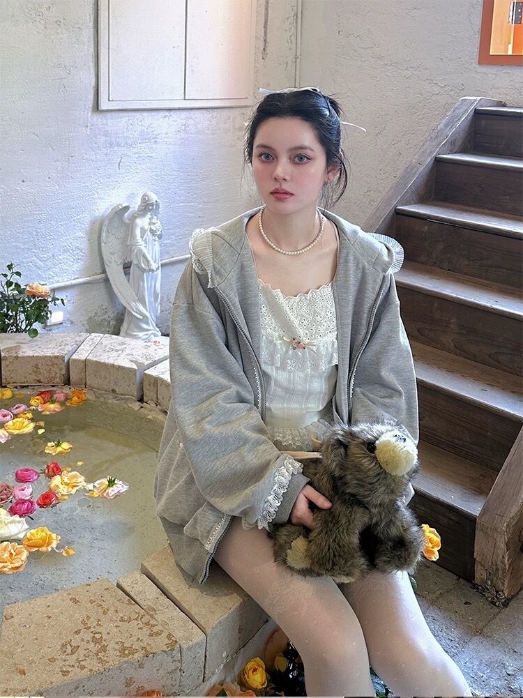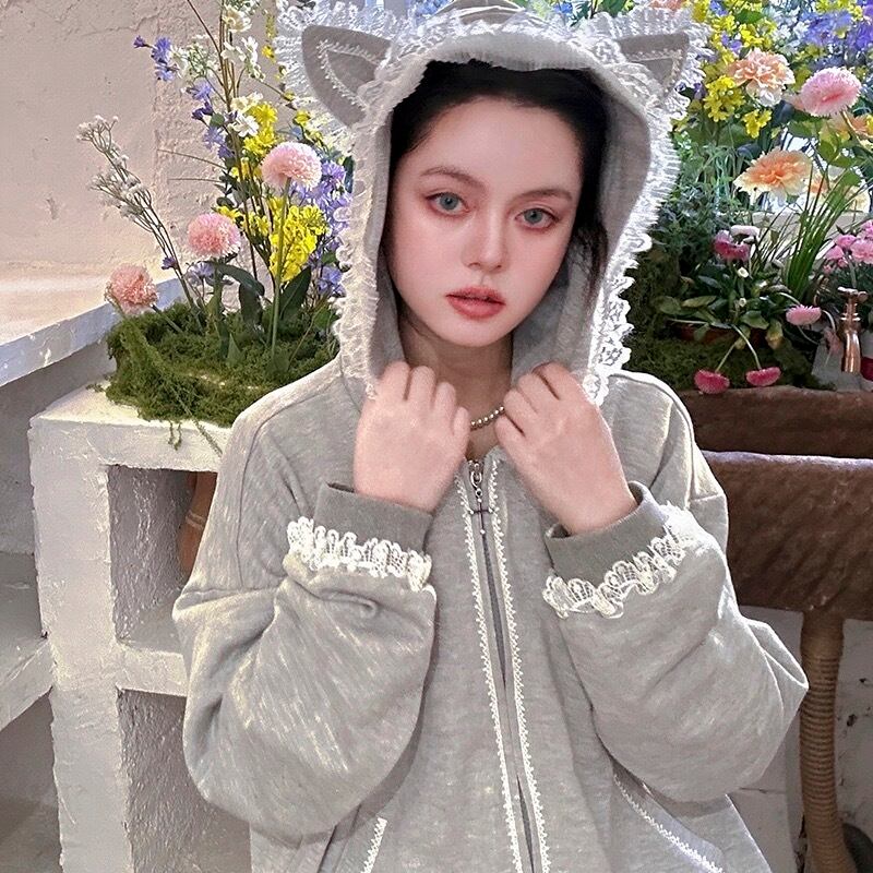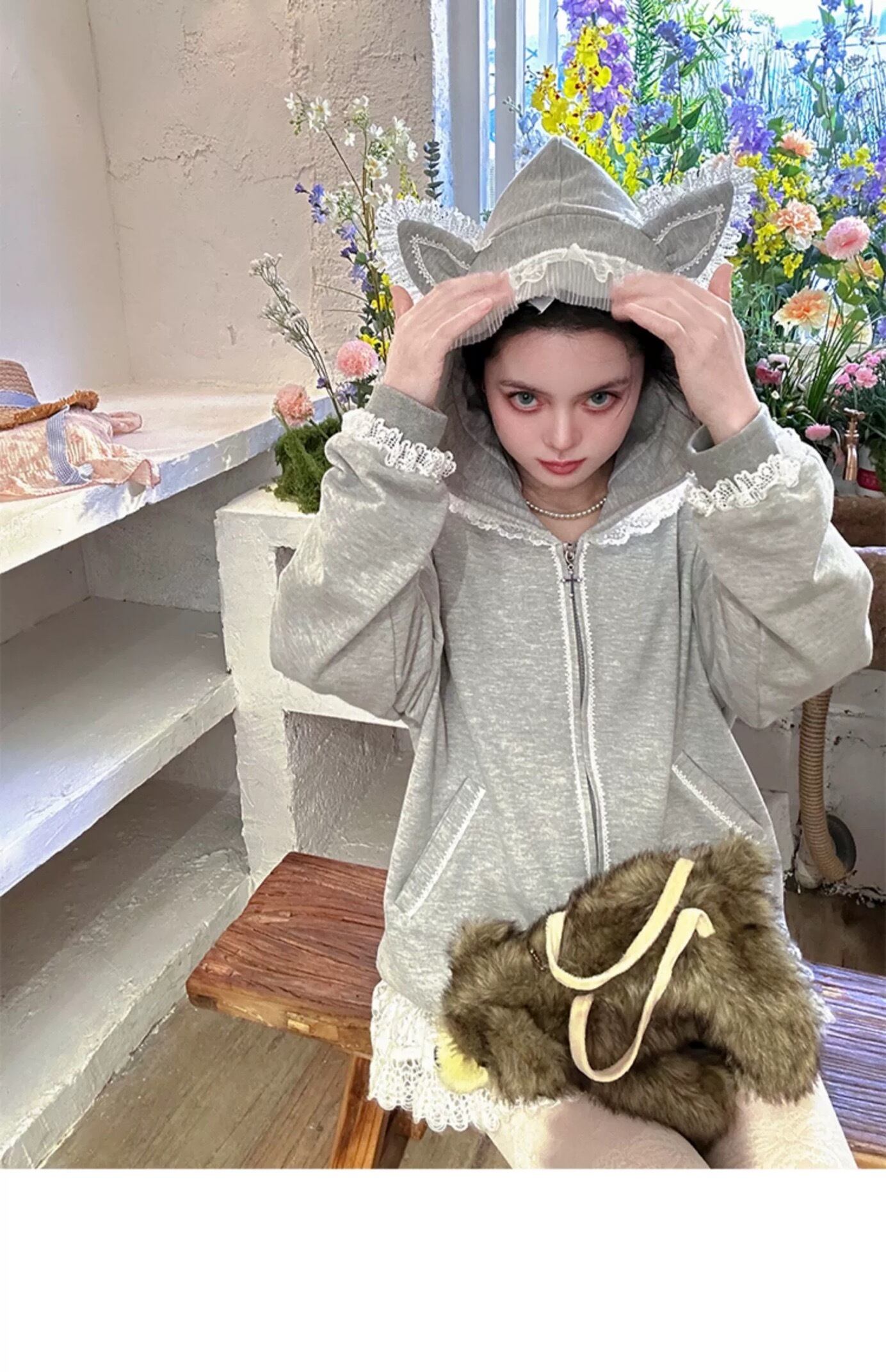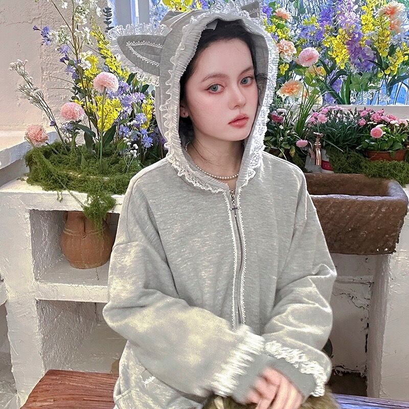 パーカー グレー 猫耳 うさぎ スウェット カジュアル