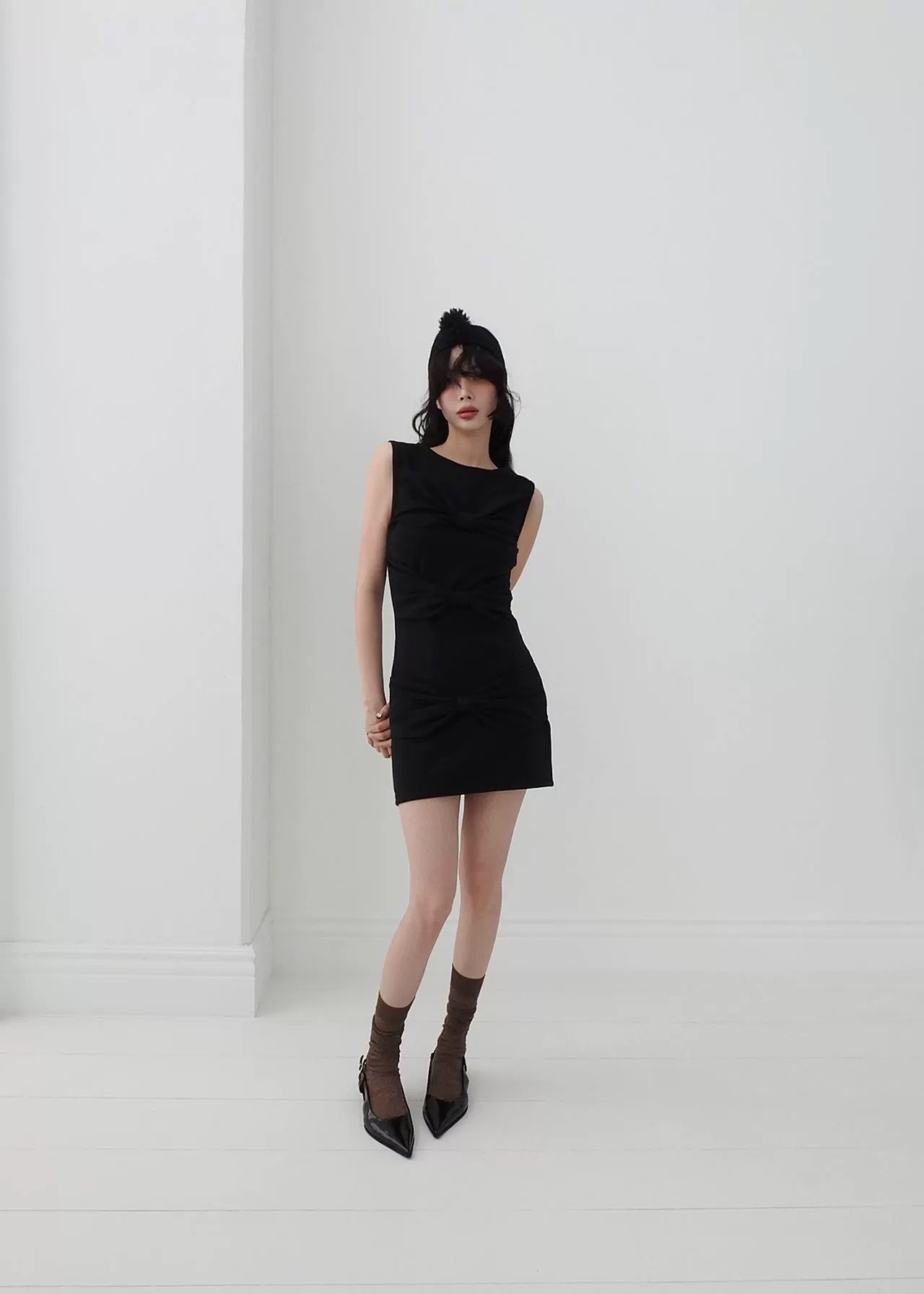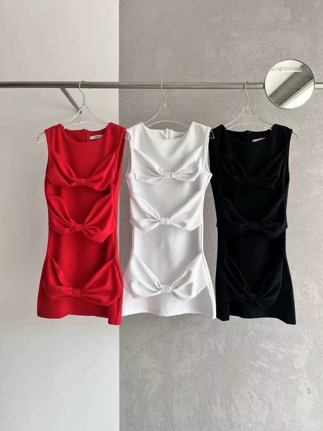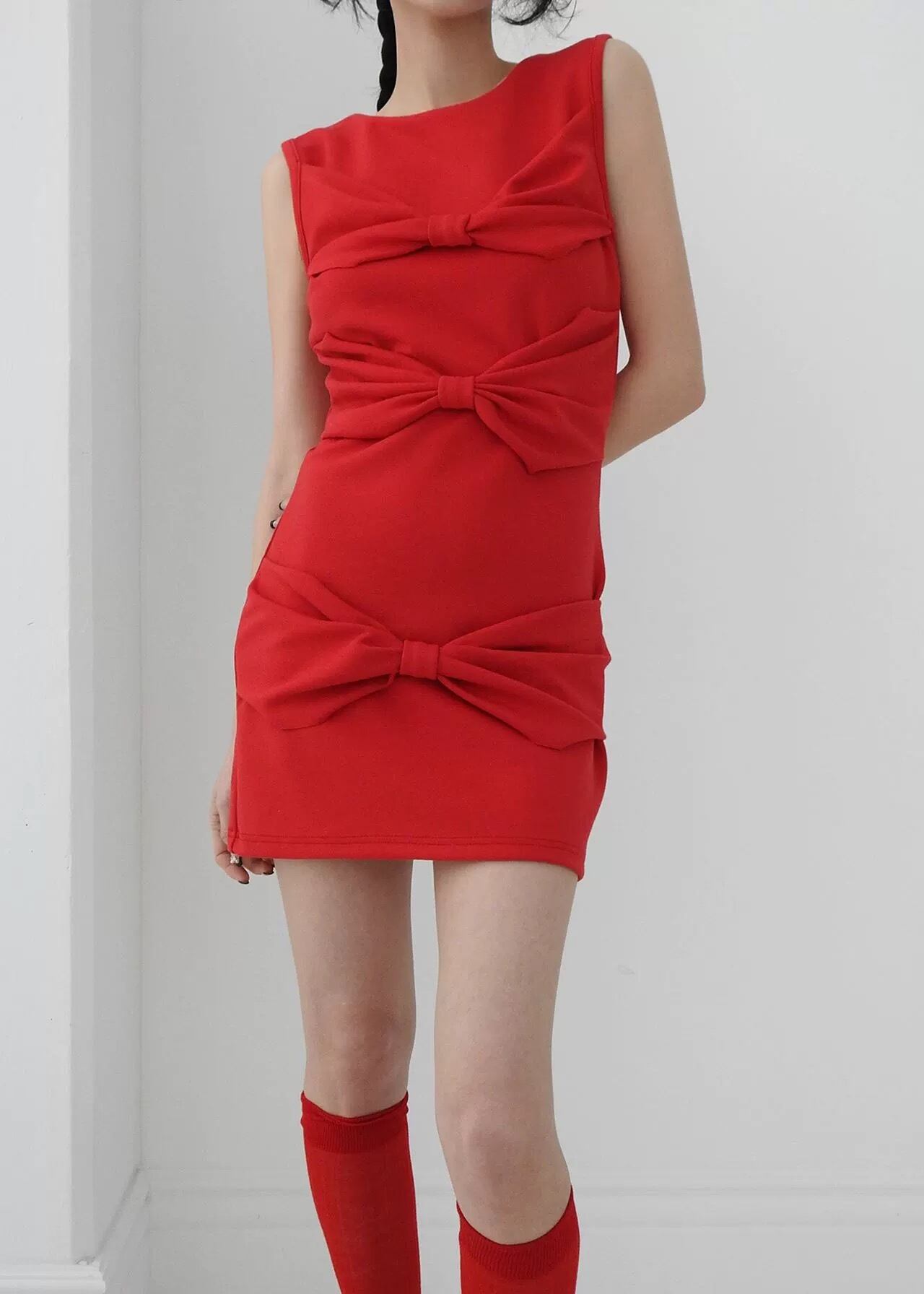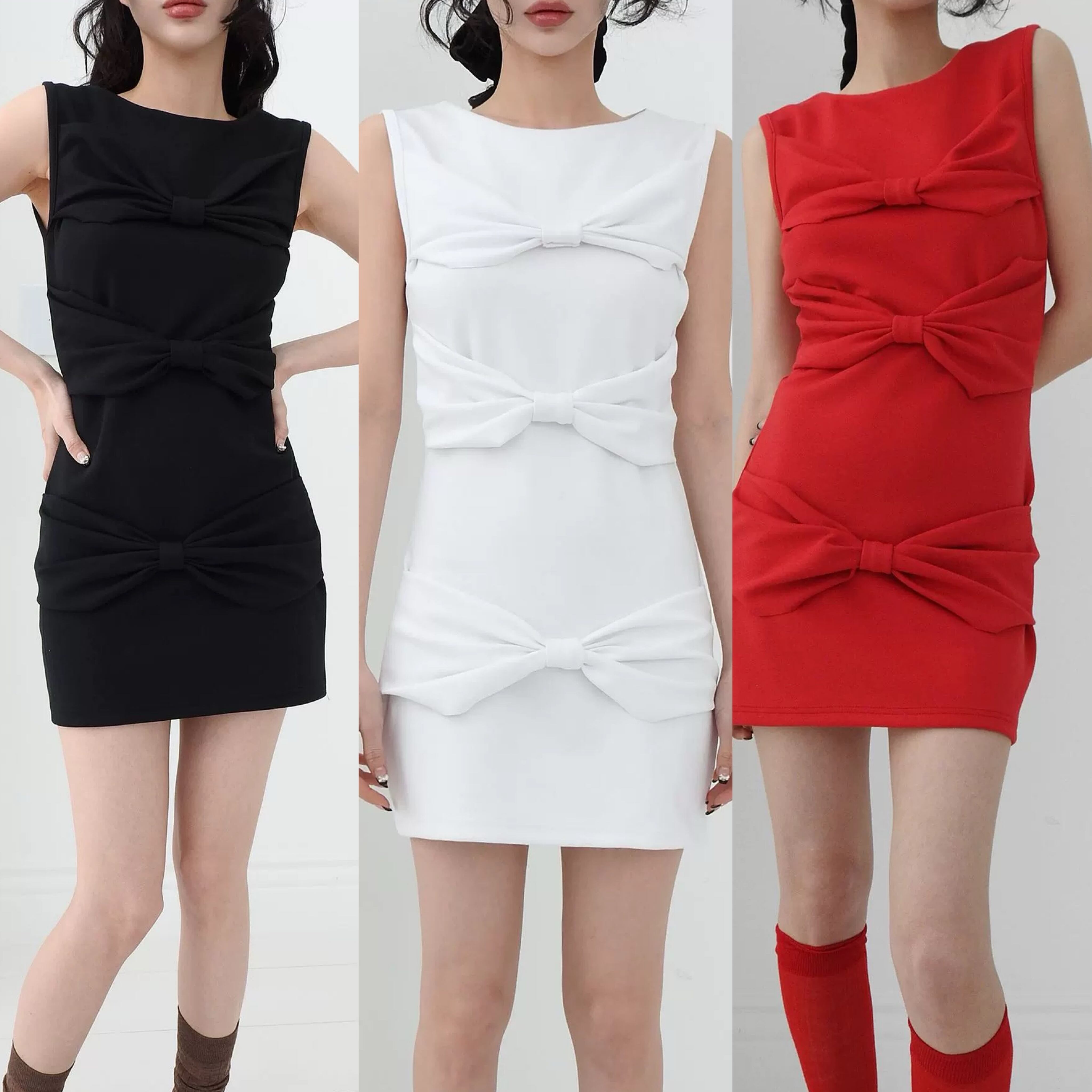 リボン 黒 赤 白 ワンピース タイト スカート エレガント ガーリー