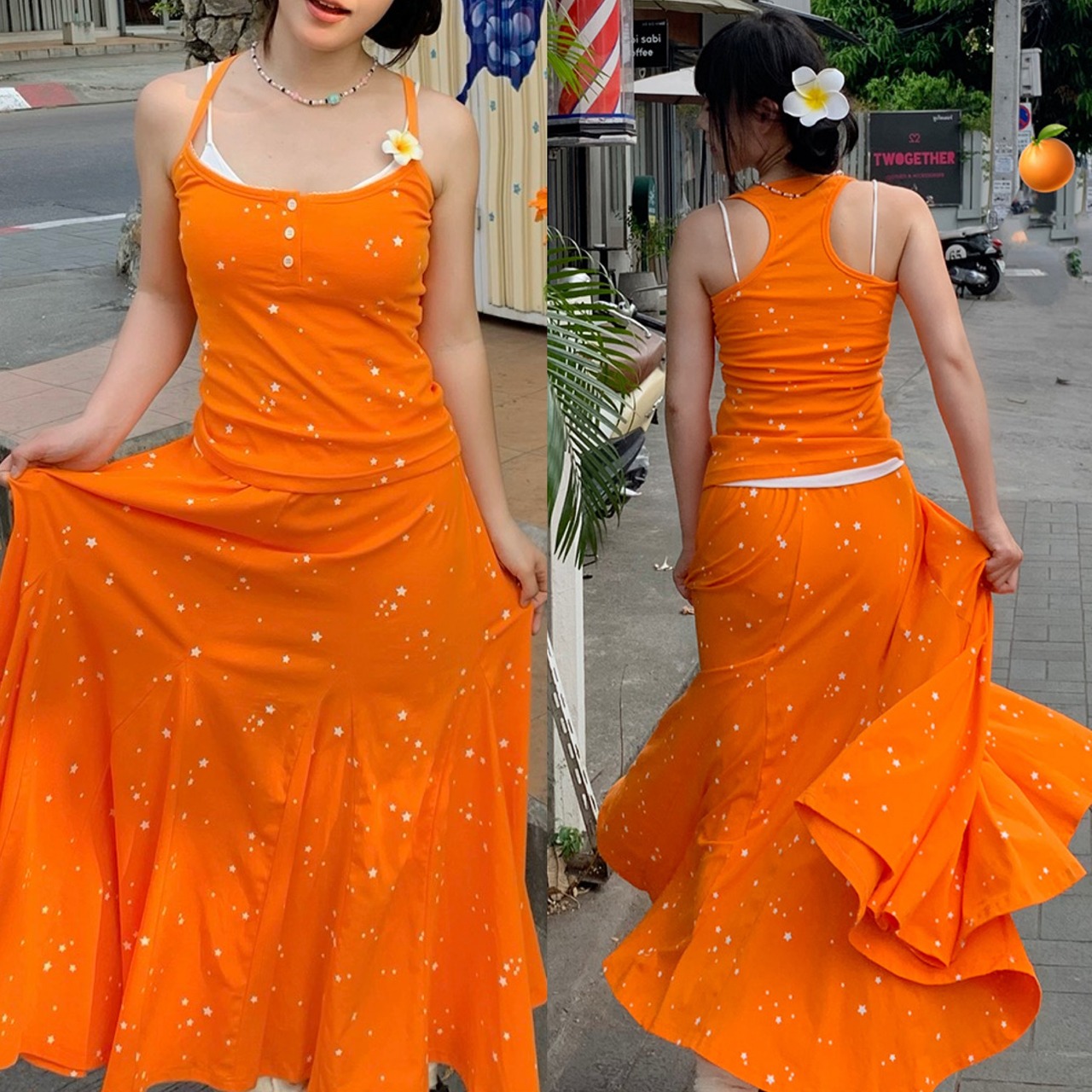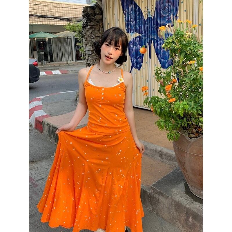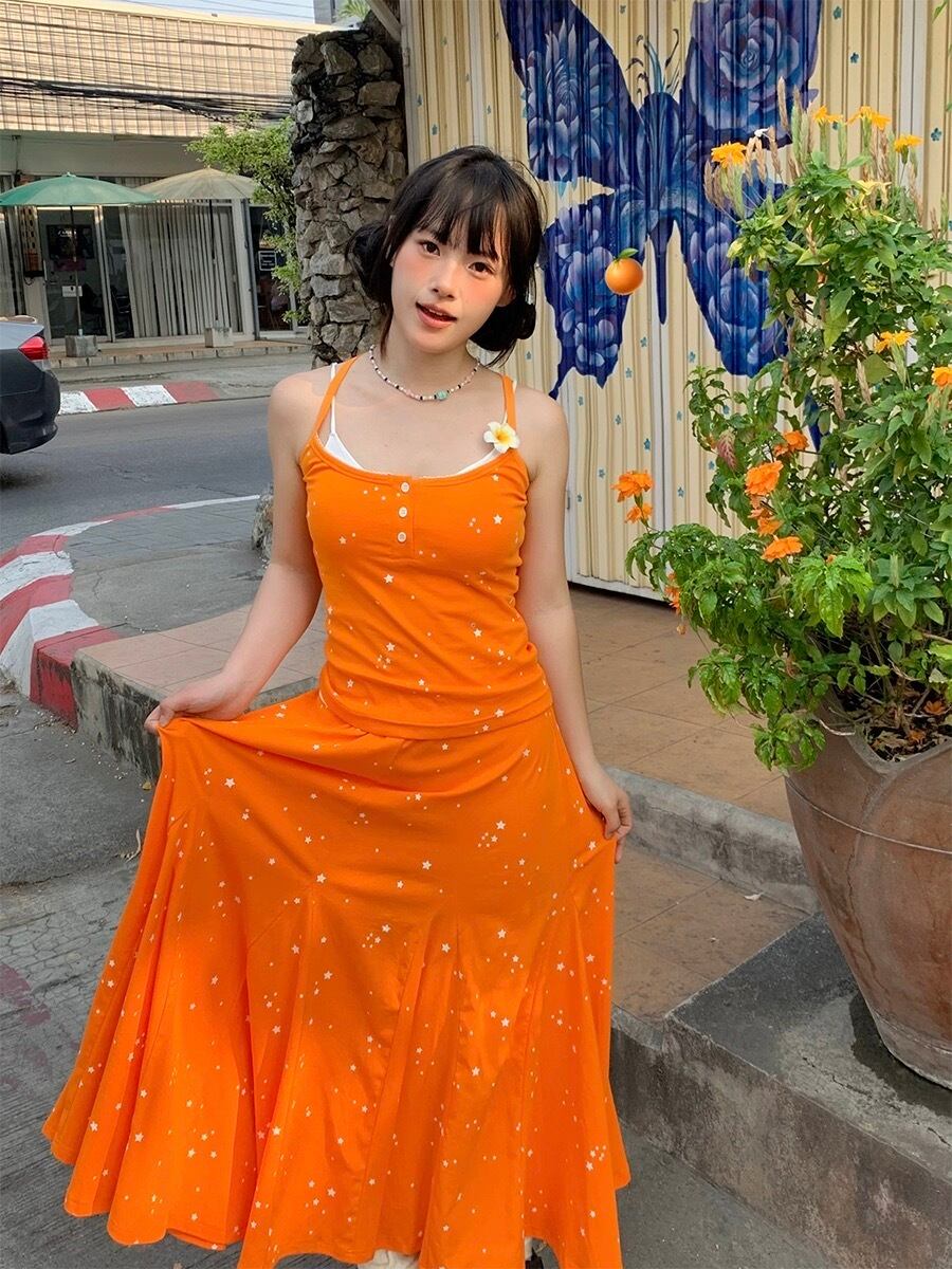 【セットアップ】オレンジ キャミソール ワンピース スカート