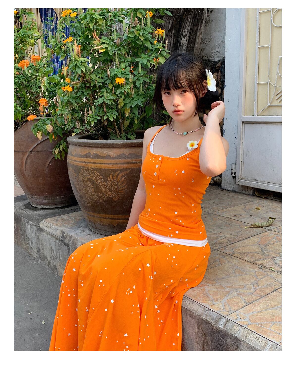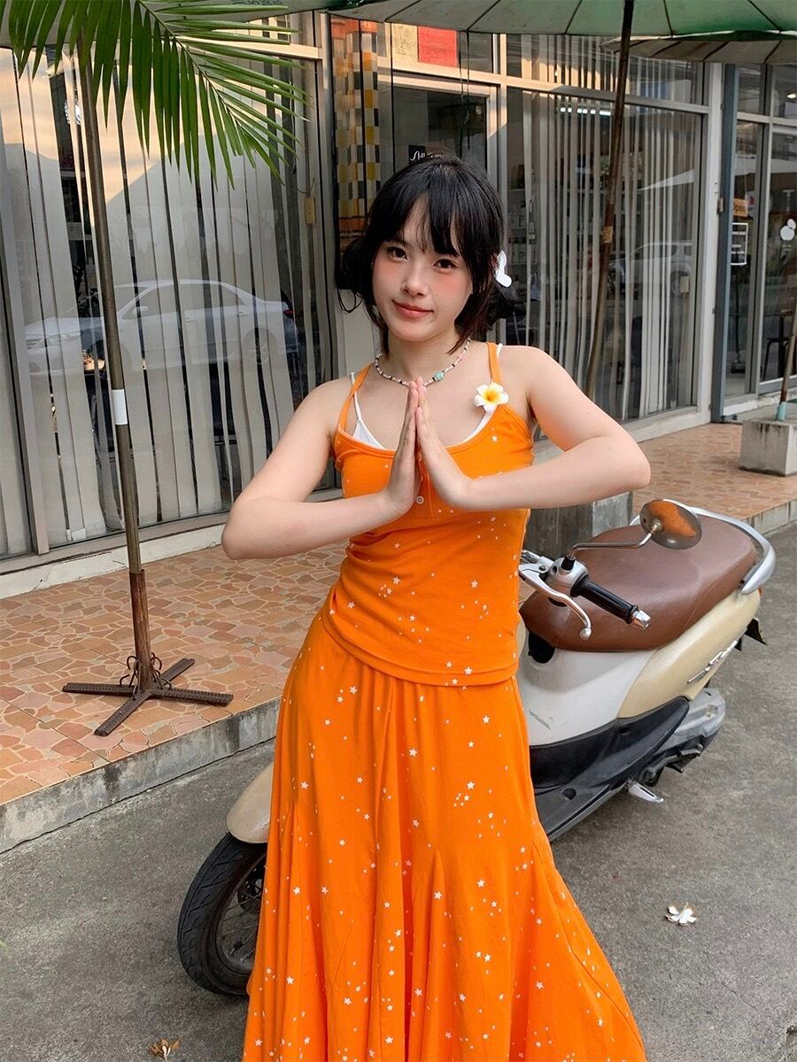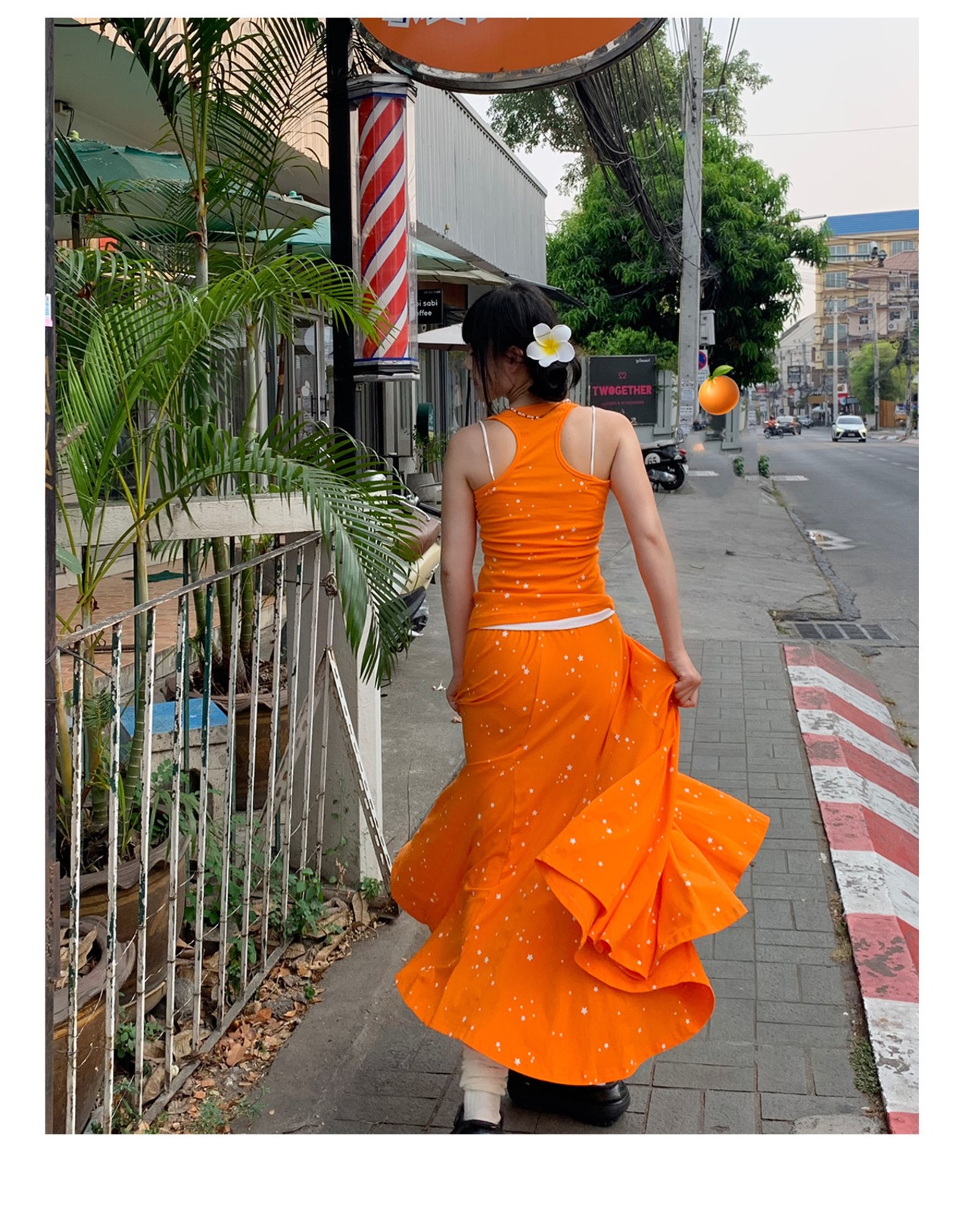 【セットアップ】オレンジ キャミソール ワンピース スカート