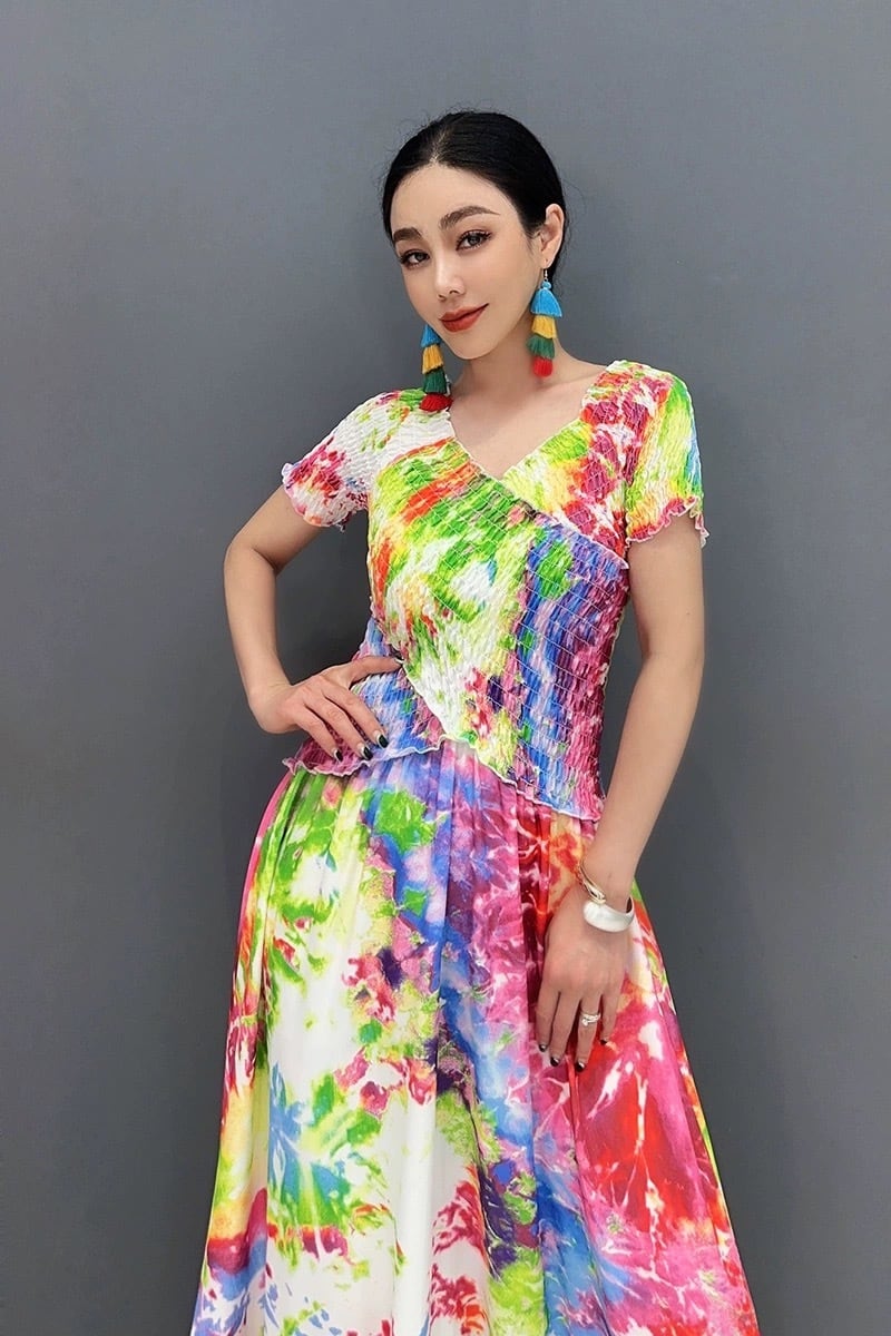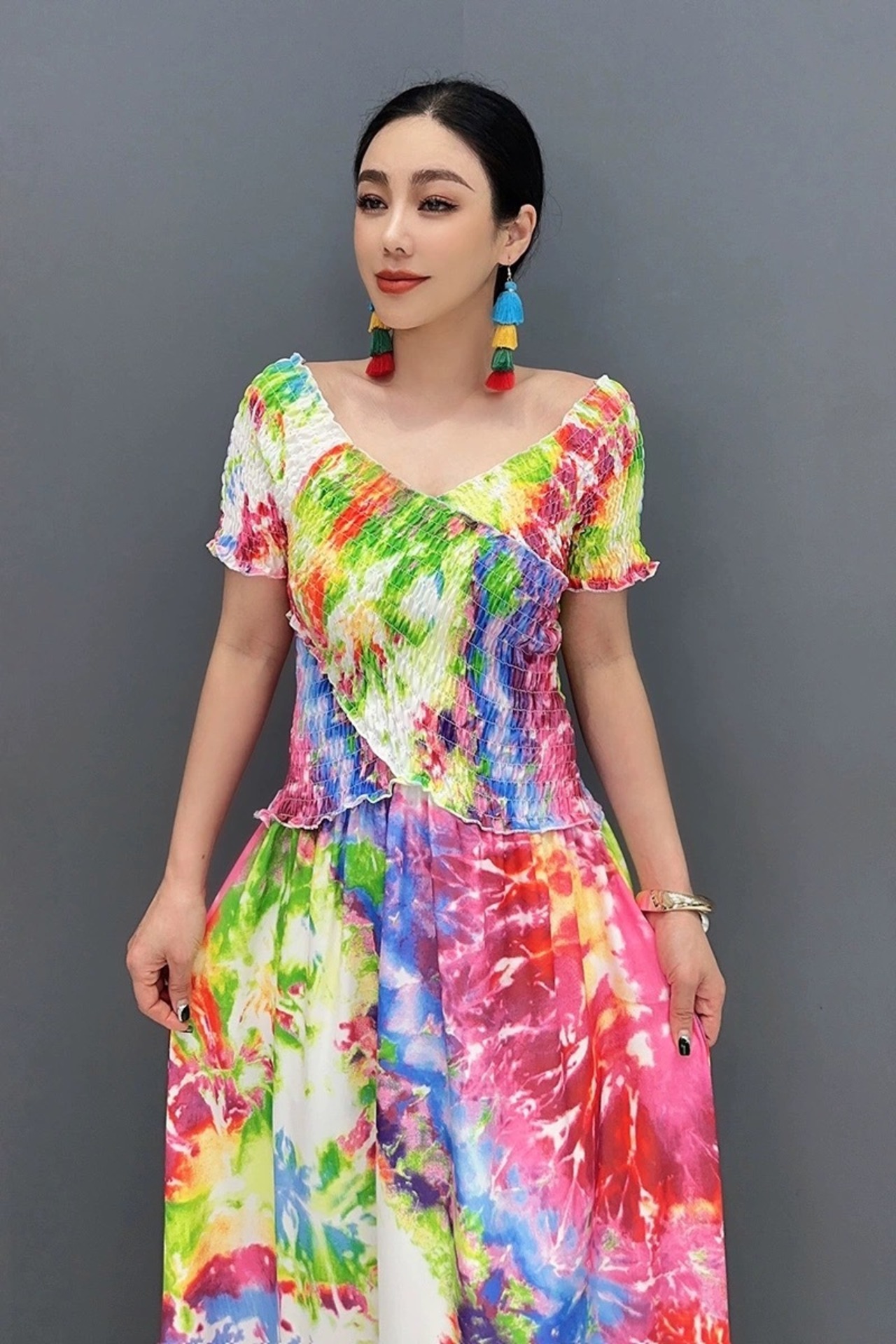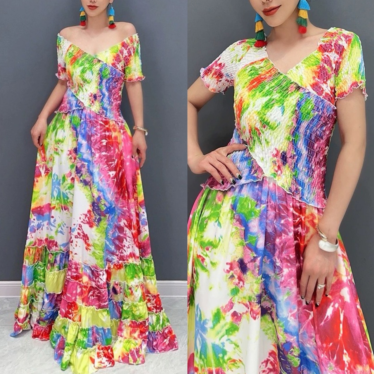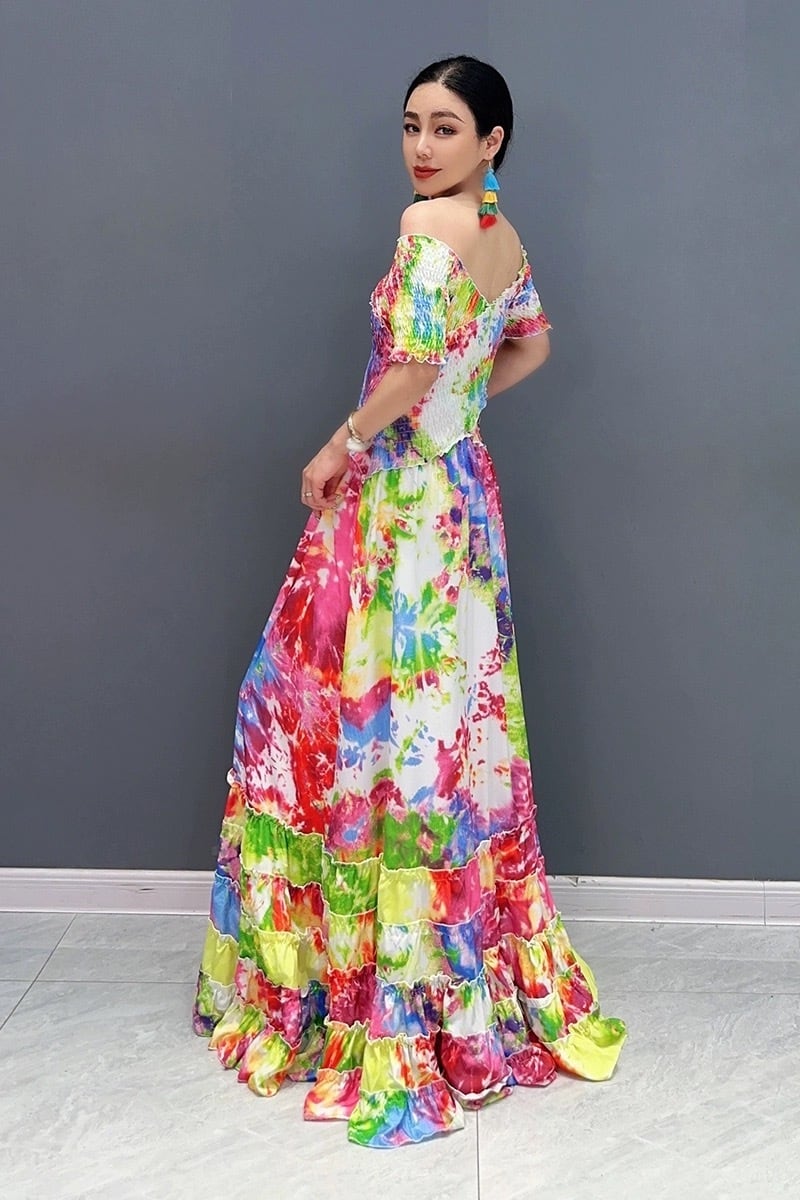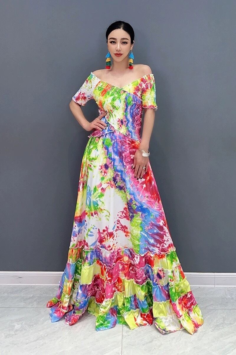 カラフル レインボー 黄色 グラデーション ピンク オフショルダー