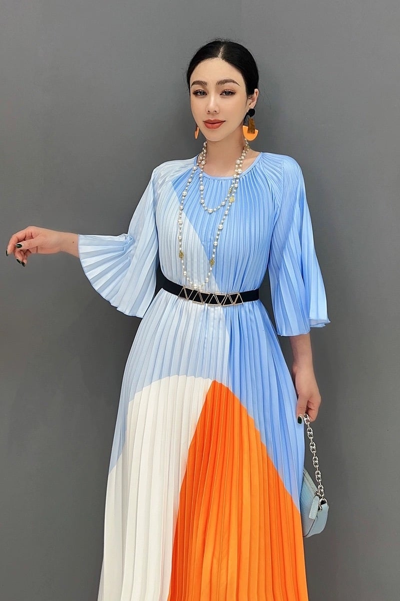 グラデーション ブルー 青 白 海 オレンジ 水色 ワンピース