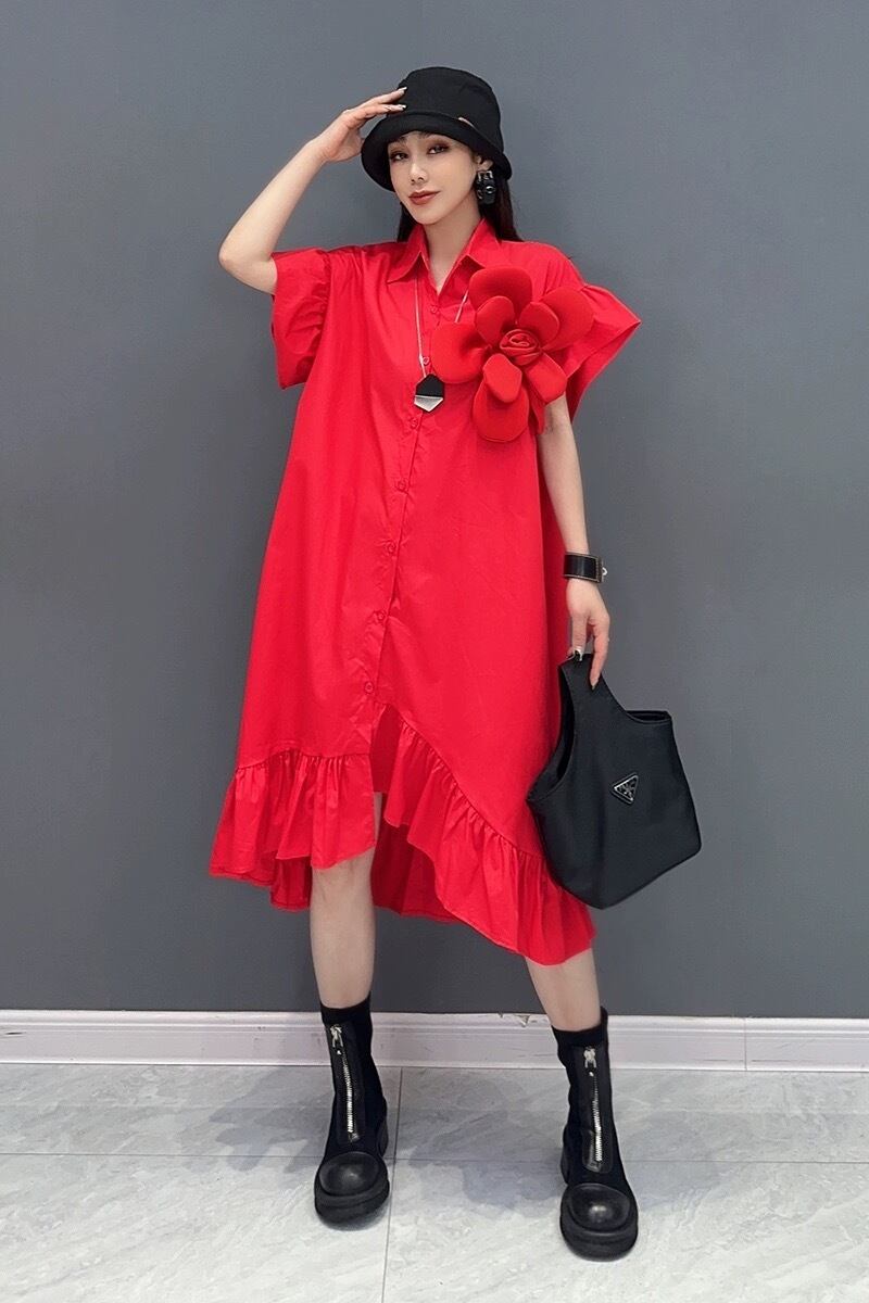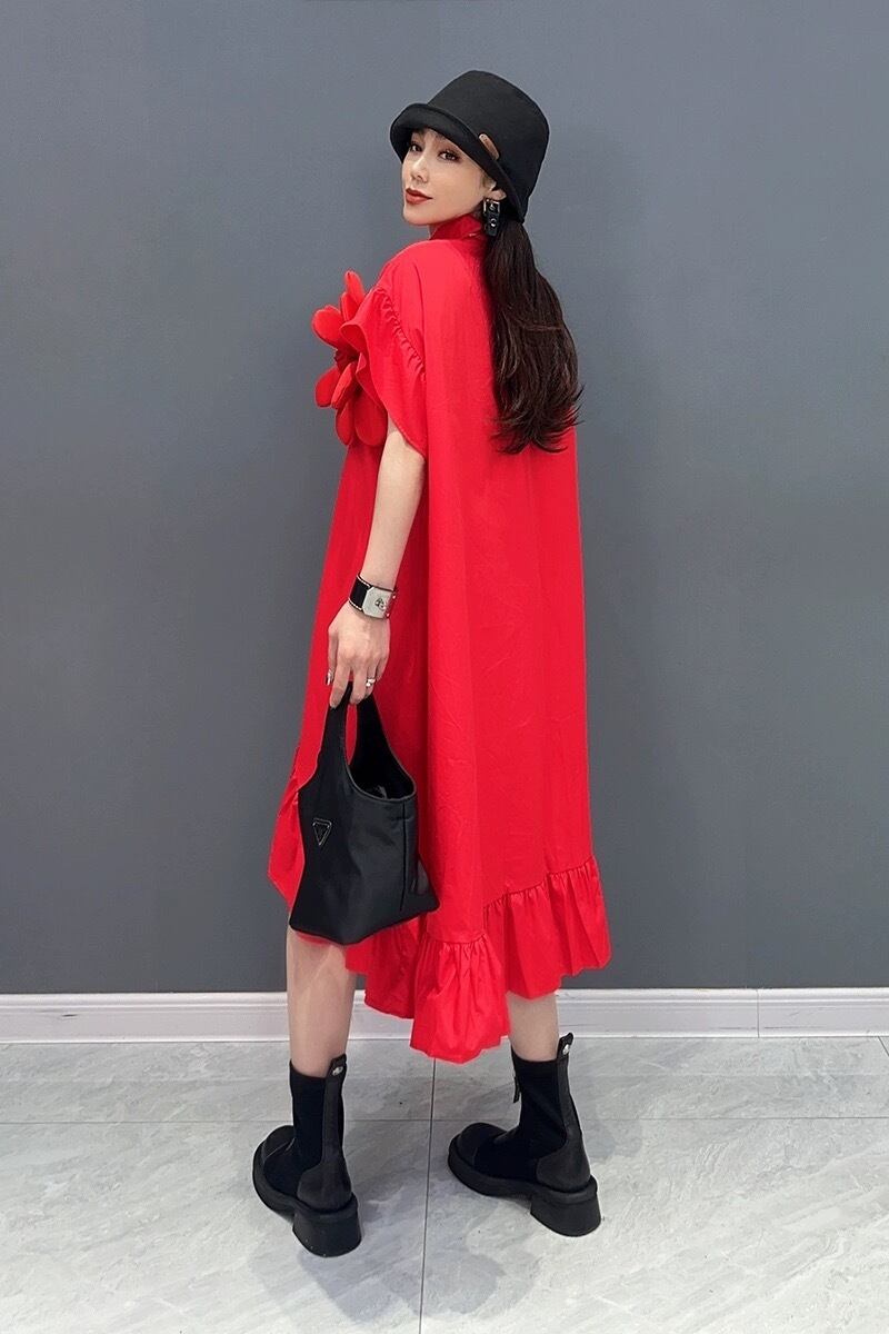 赤 カメリア ブラウス ワンピース 花柄 フラワー シャツ
