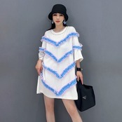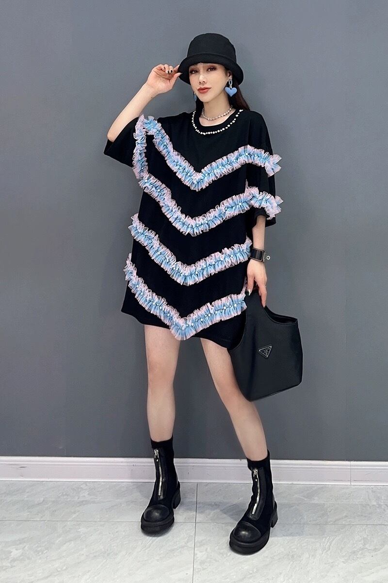 トップス カジュアル 白 水色 黒 ワンピース リボン